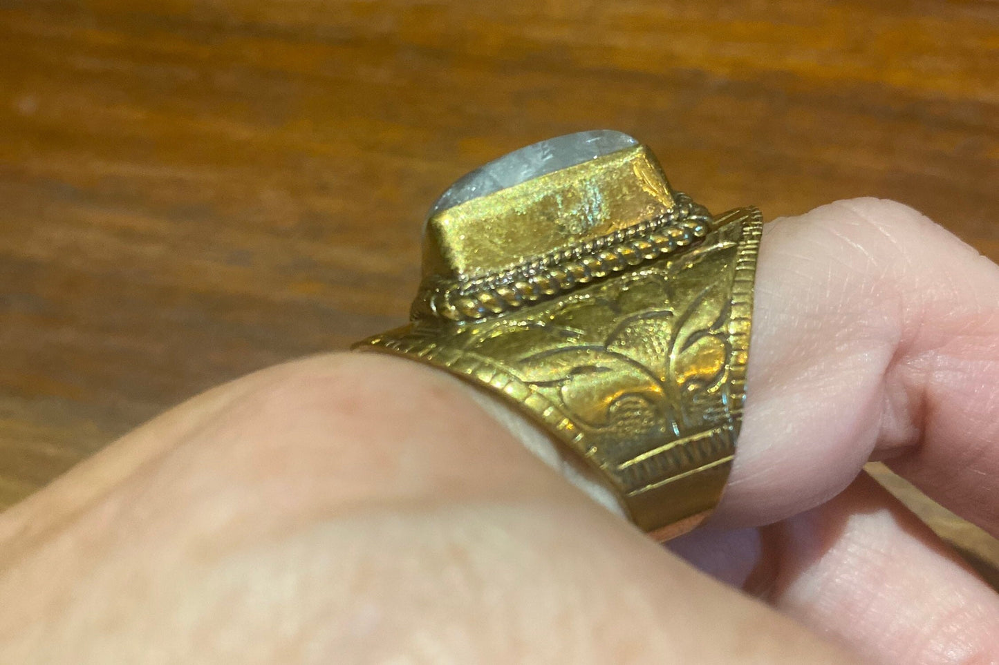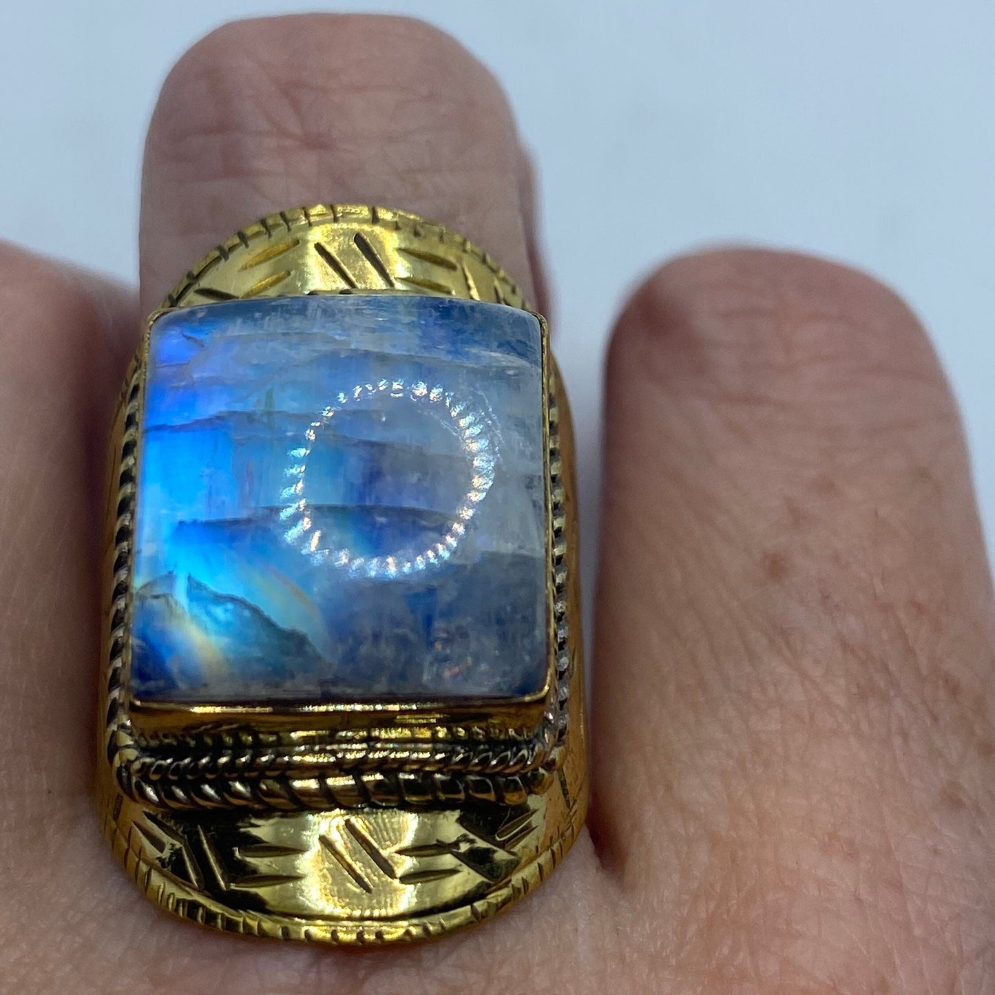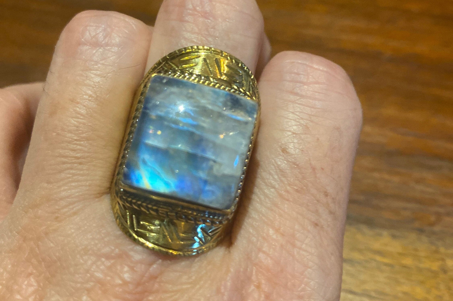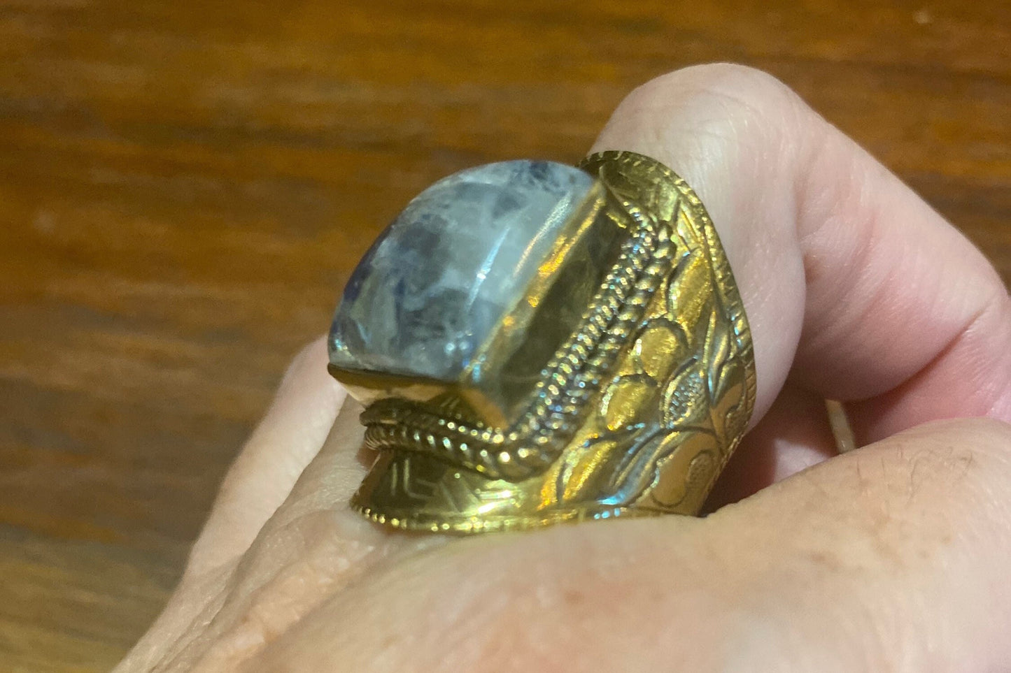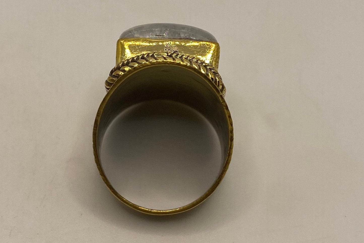 Vintage Large Rainbow Labradorite Stone Brass Ring