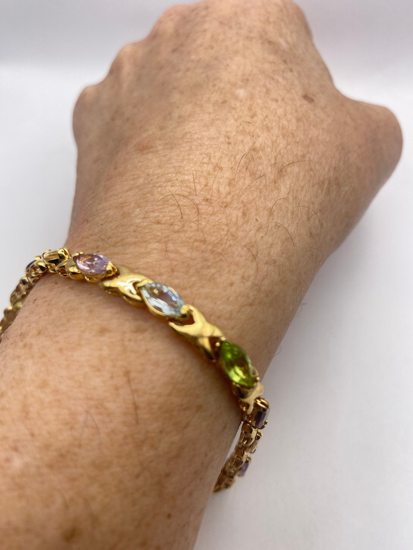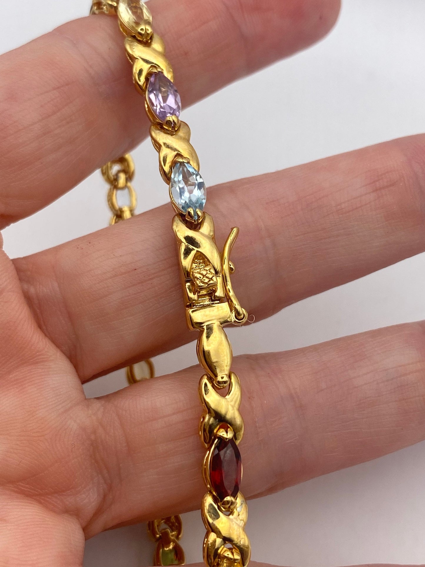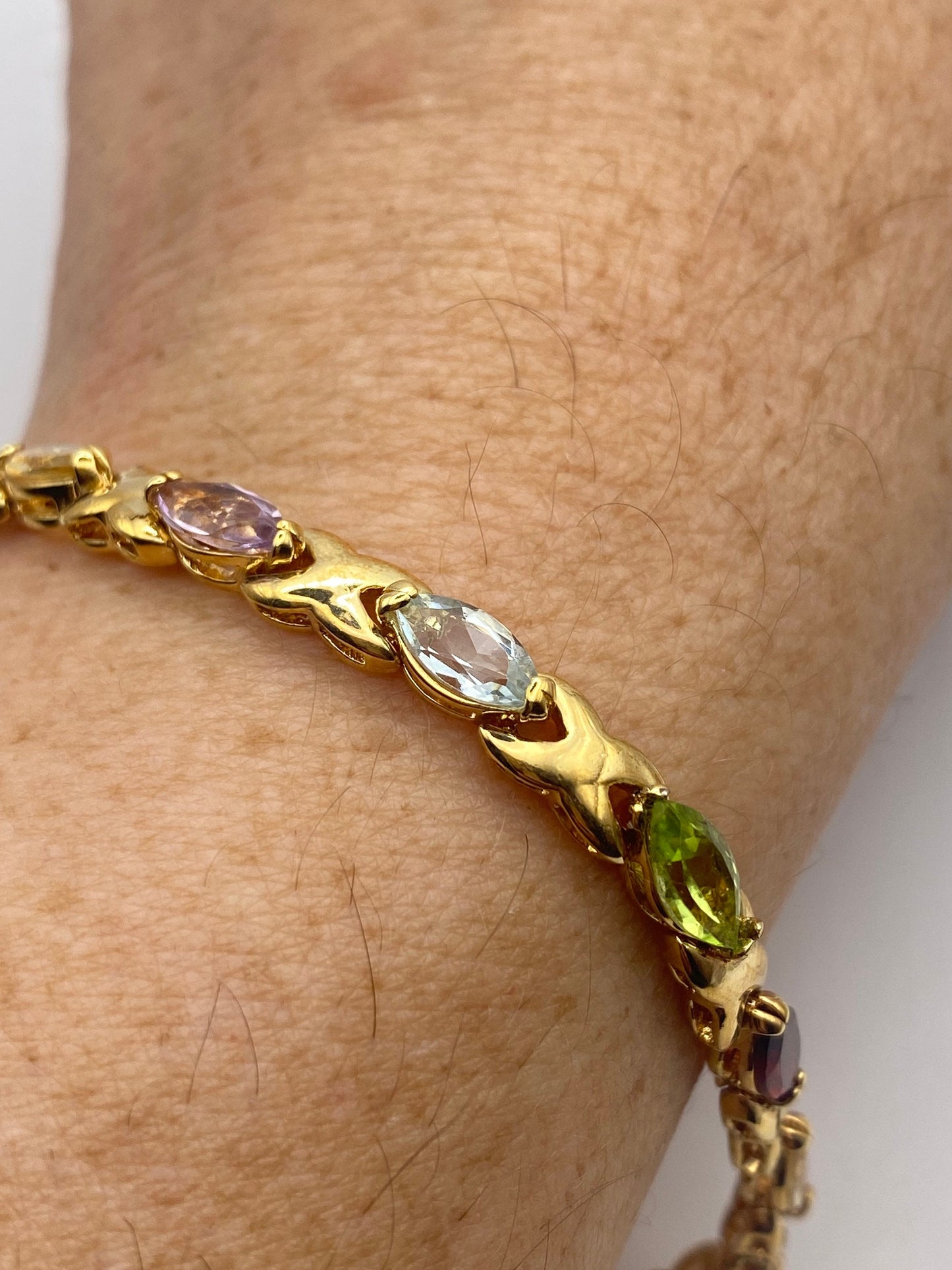 Vintage Mixed Gemstone Golden 925 Sterling Silver Tennis Bracelet
