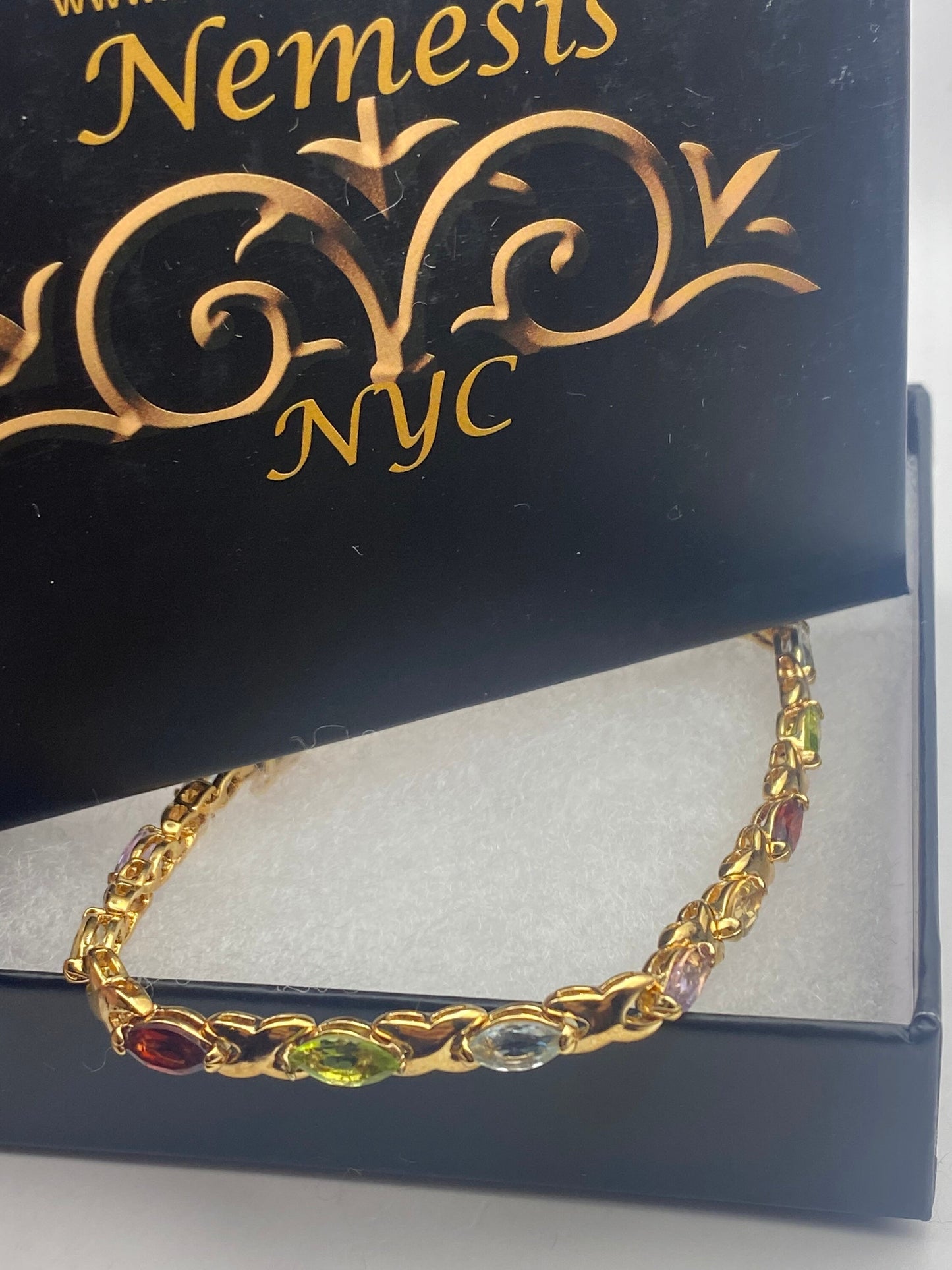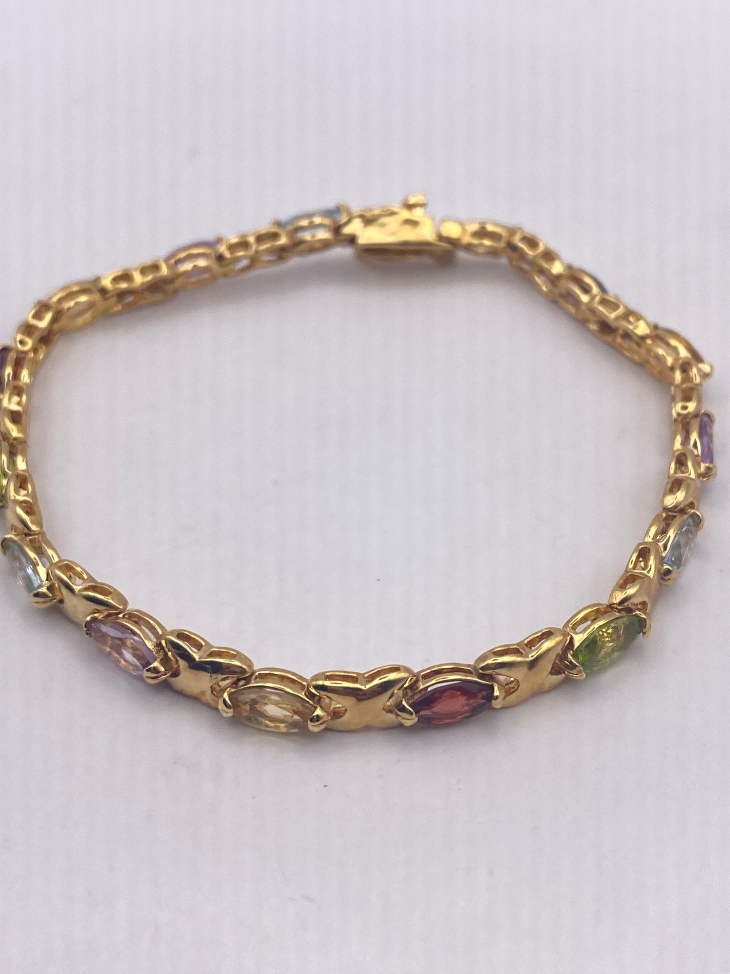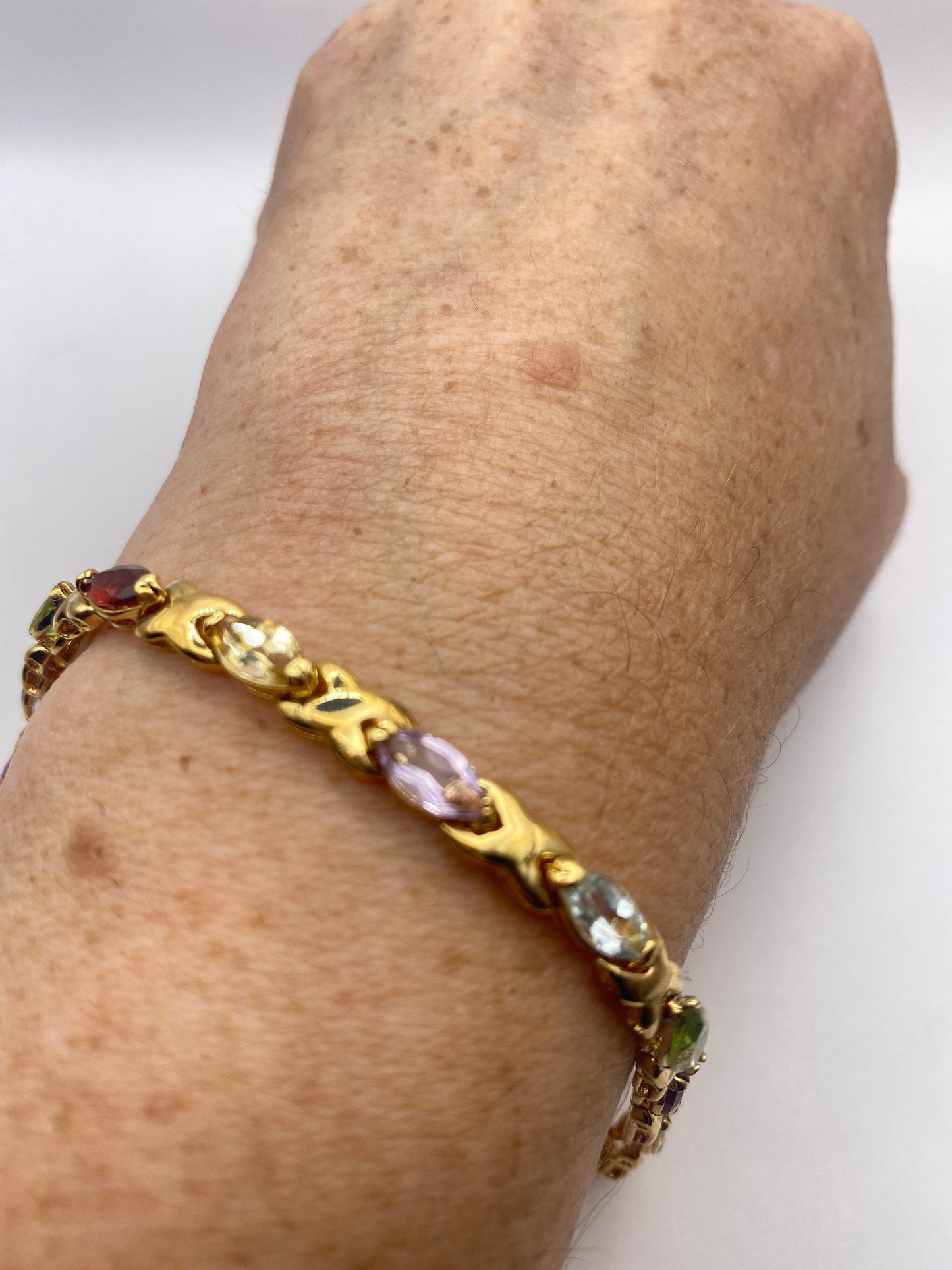 Vintage Mixed Gemstone Golden 925 Sterling Silver Tennis Bracelet