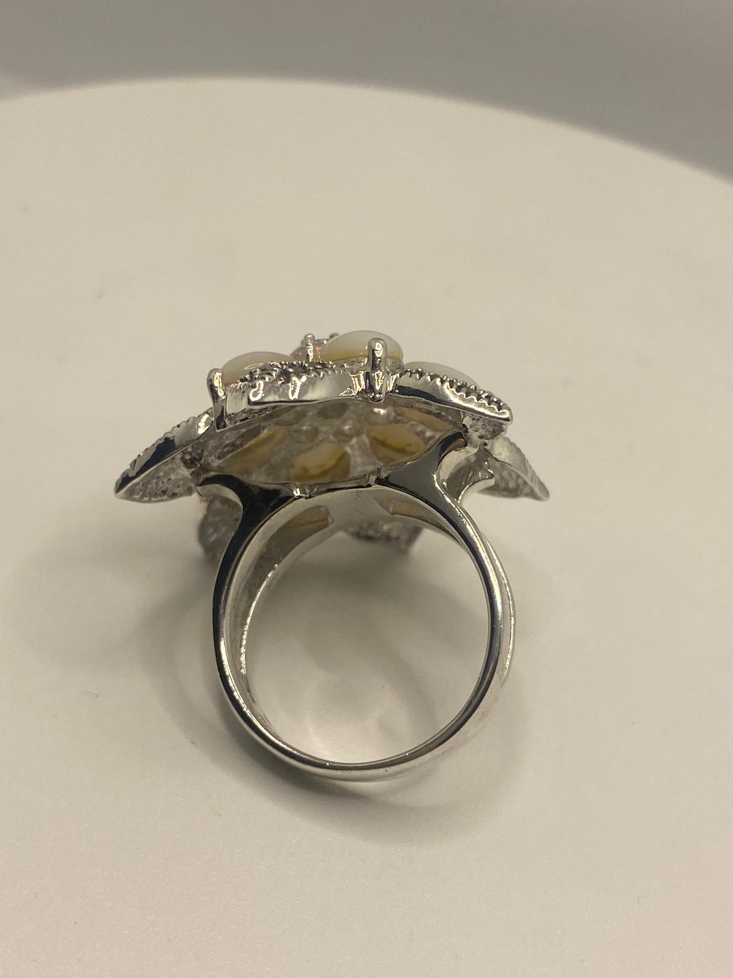 Vintage Mother of Pearl set in 925 sterling silver flower ring