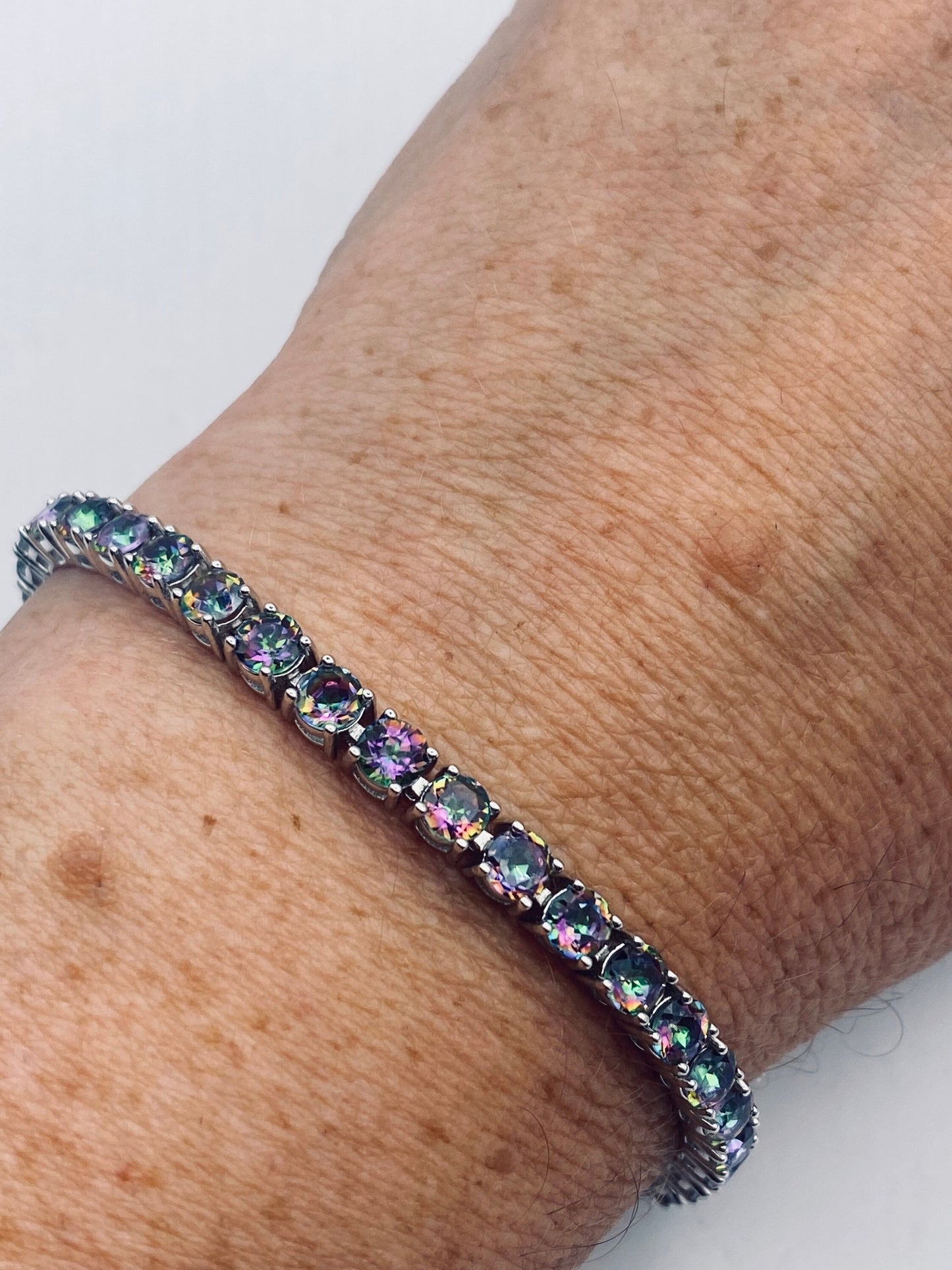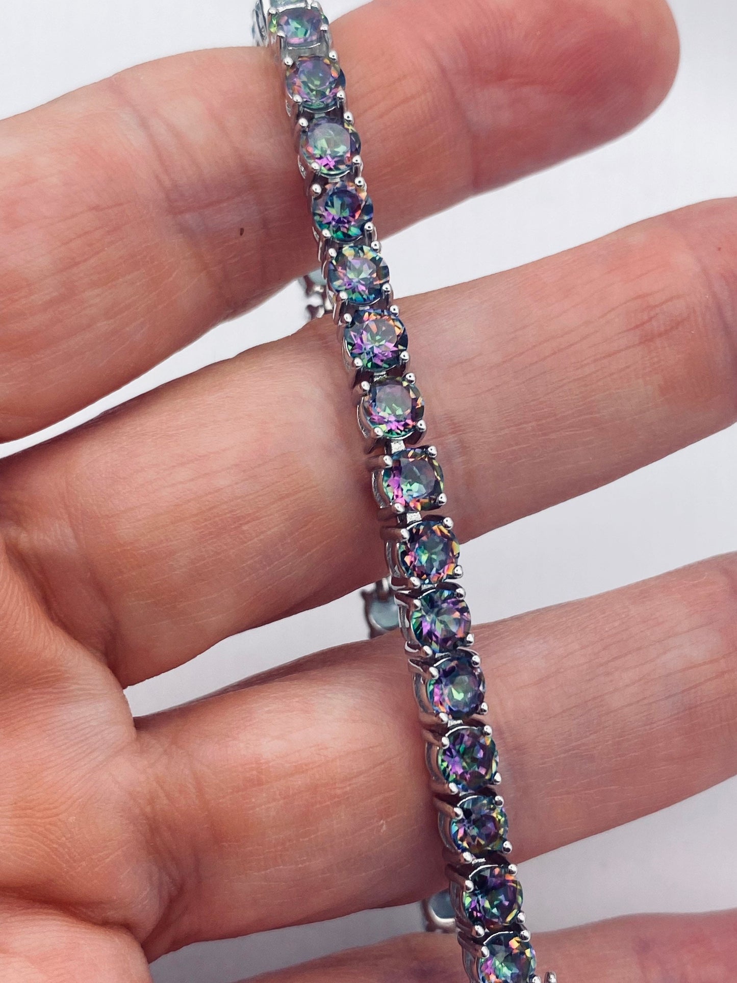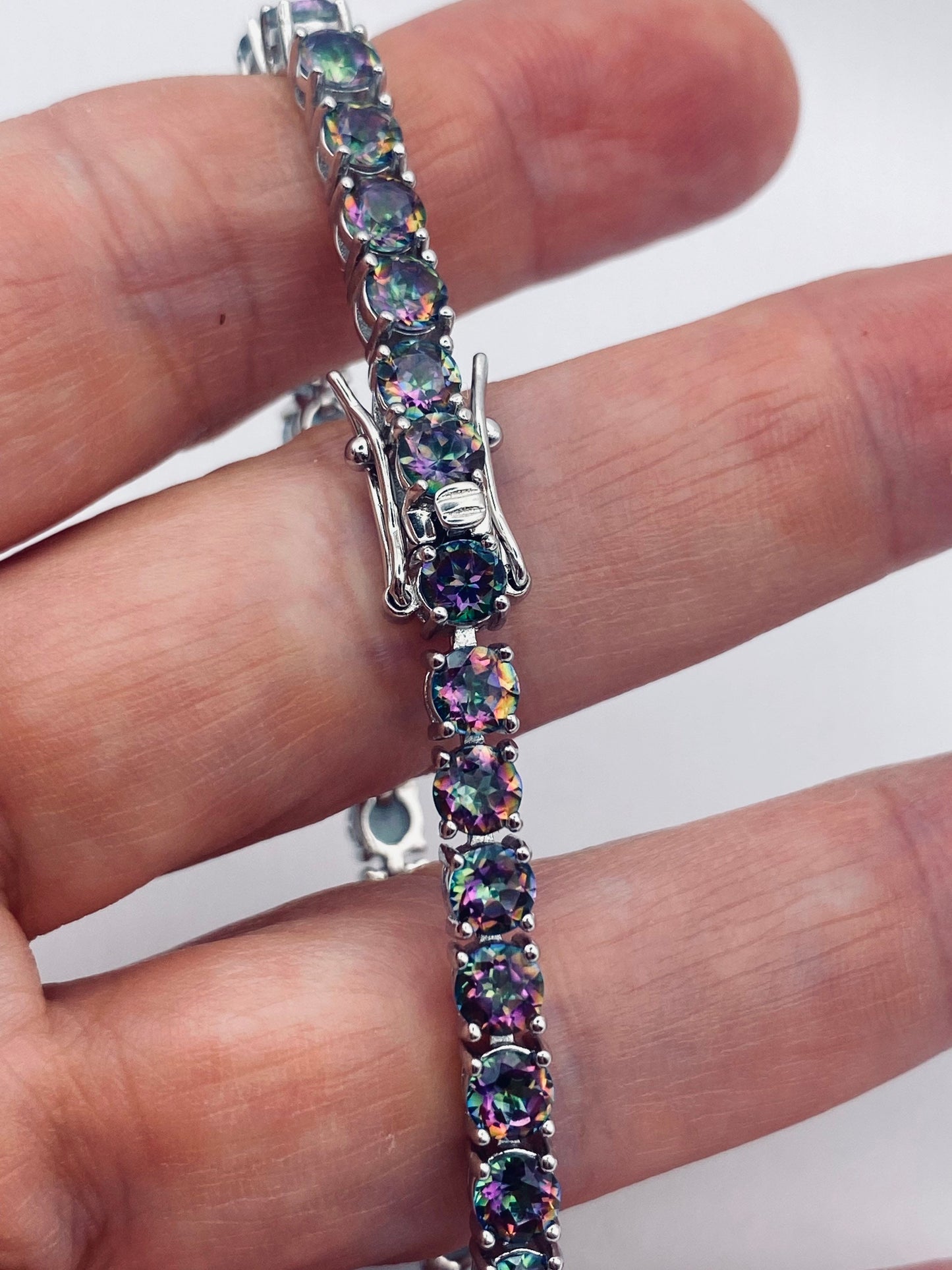 Vintage Mystic Blue Topaz 925 Sterling Silver Tennis Bracelet