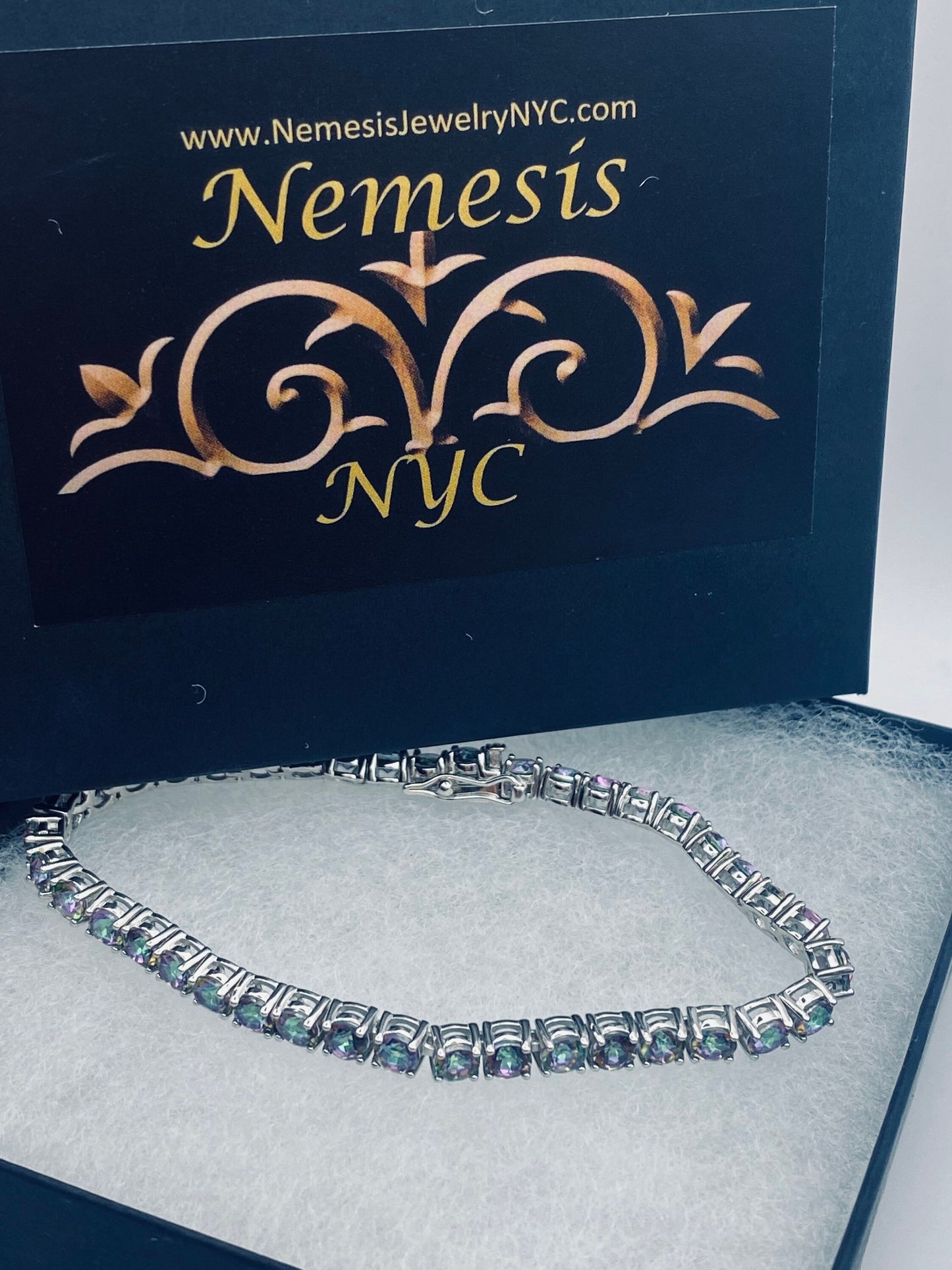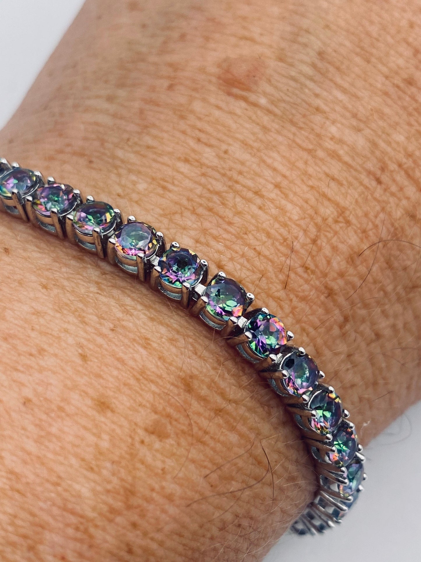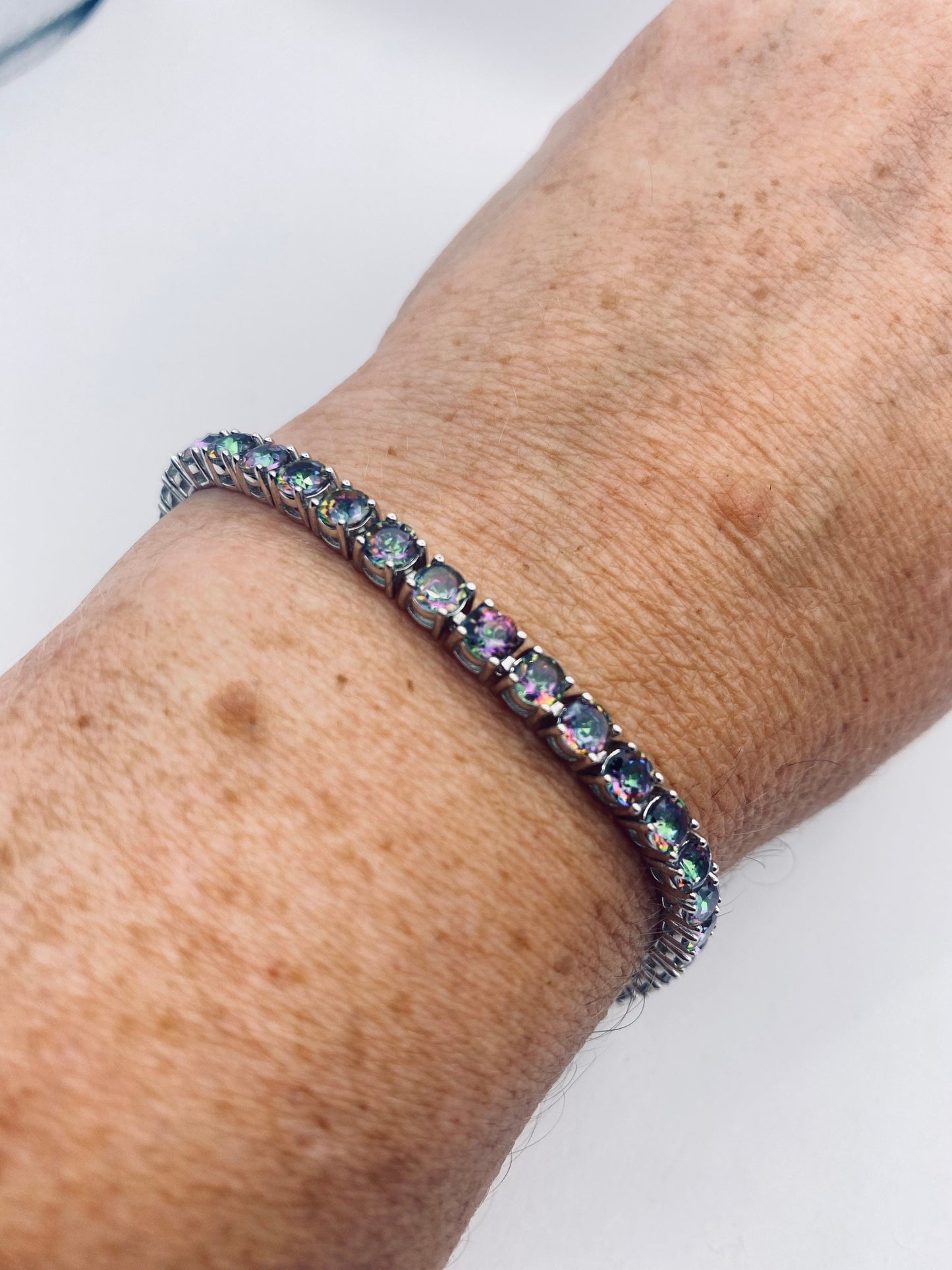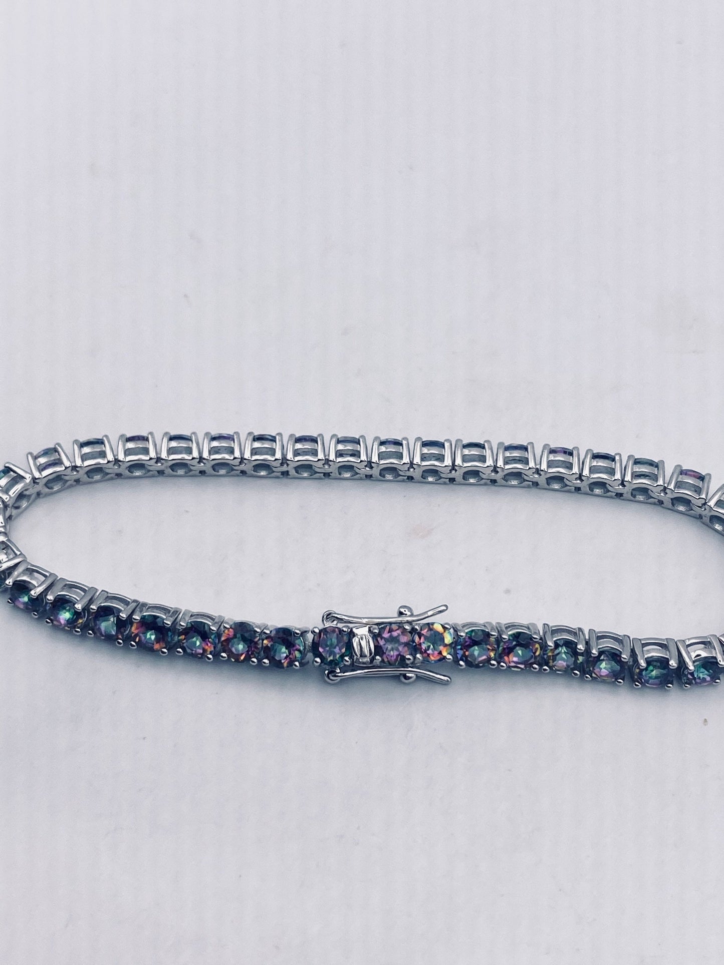 Vintage Mystic Blue Topaz 925 Sterling Silver Tennis Bracelet