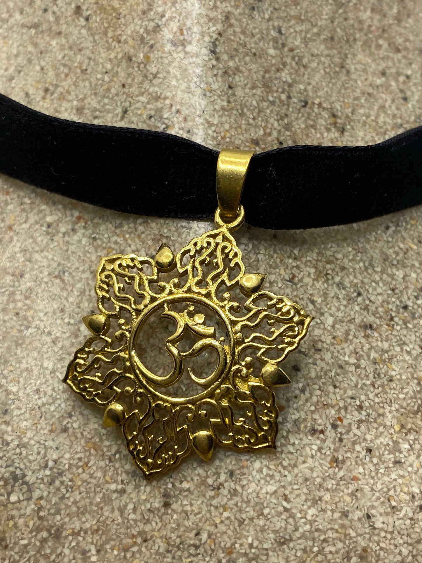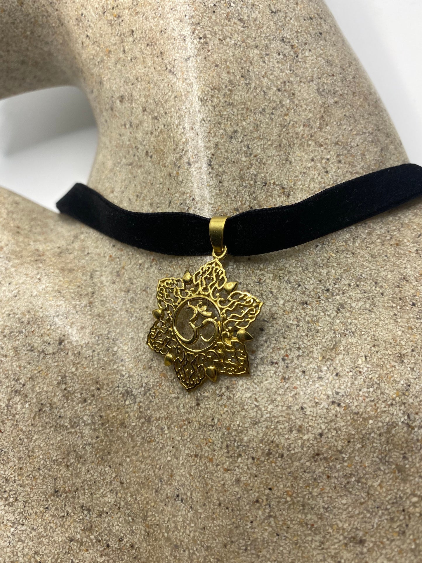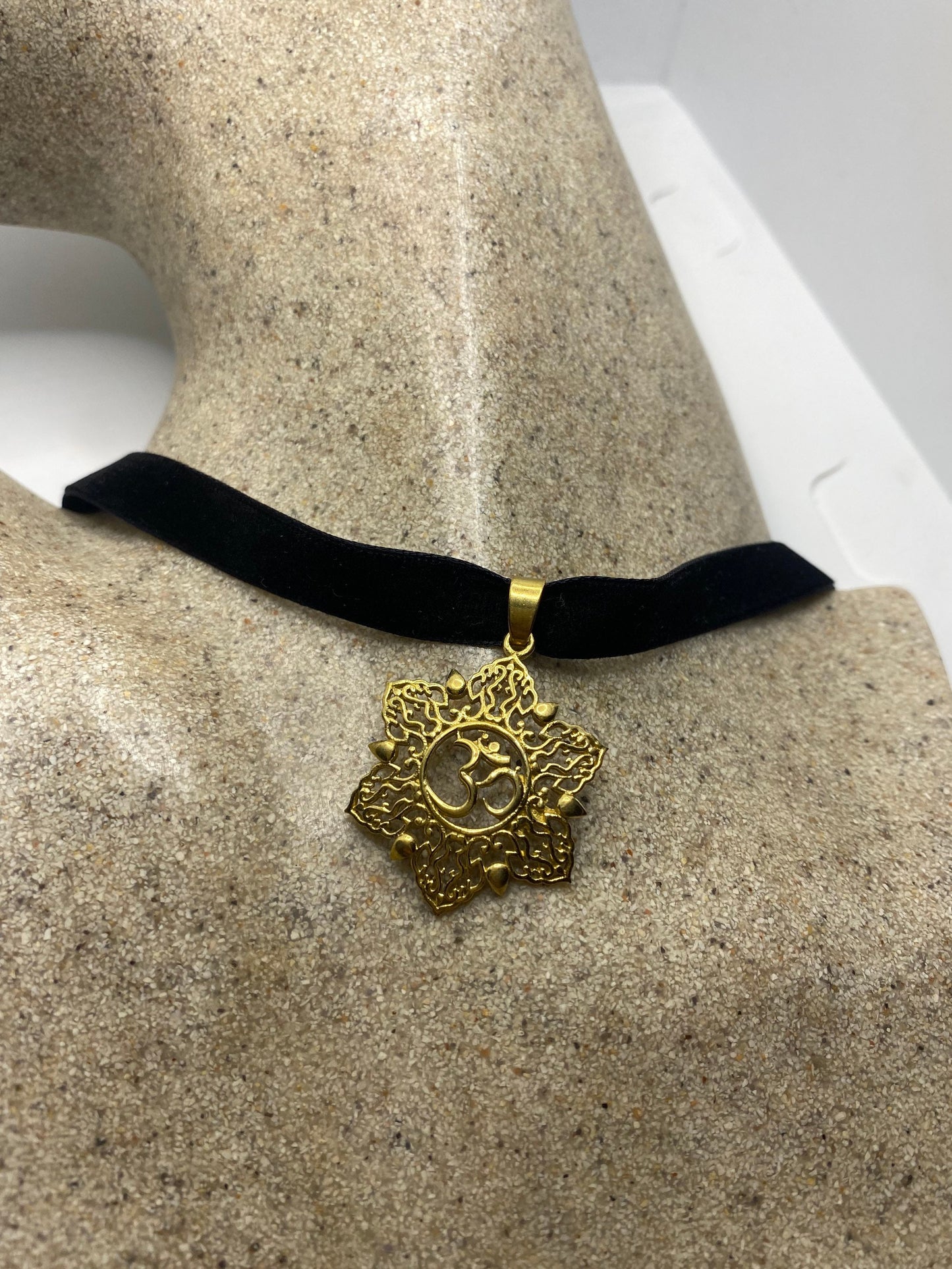 Vintage Ohm Shanti Bronze Velvet Choker Necklace.