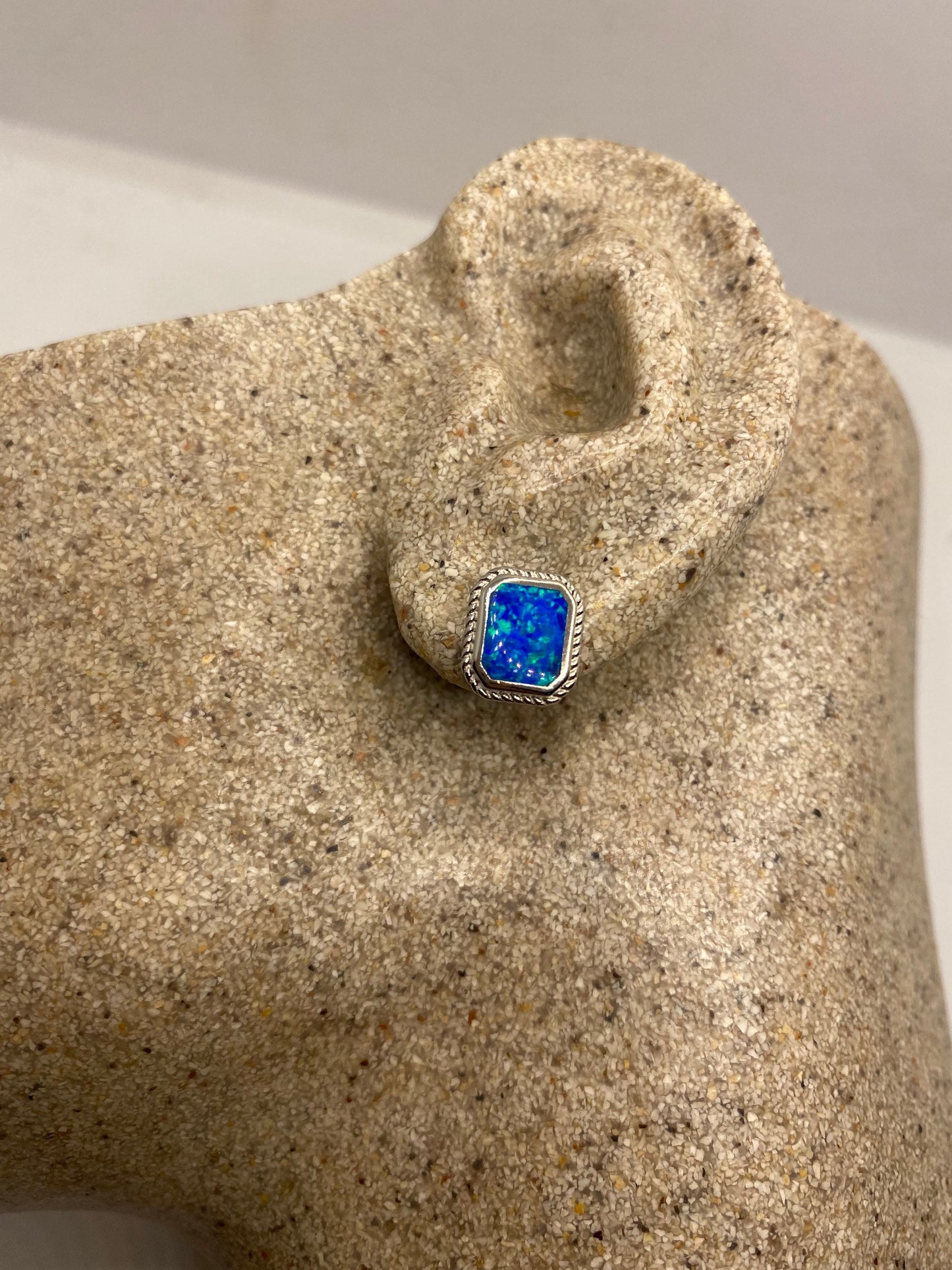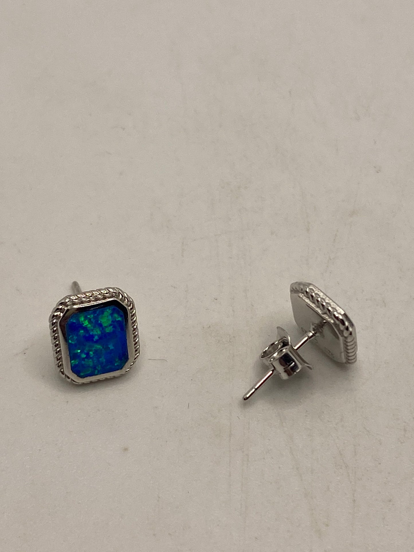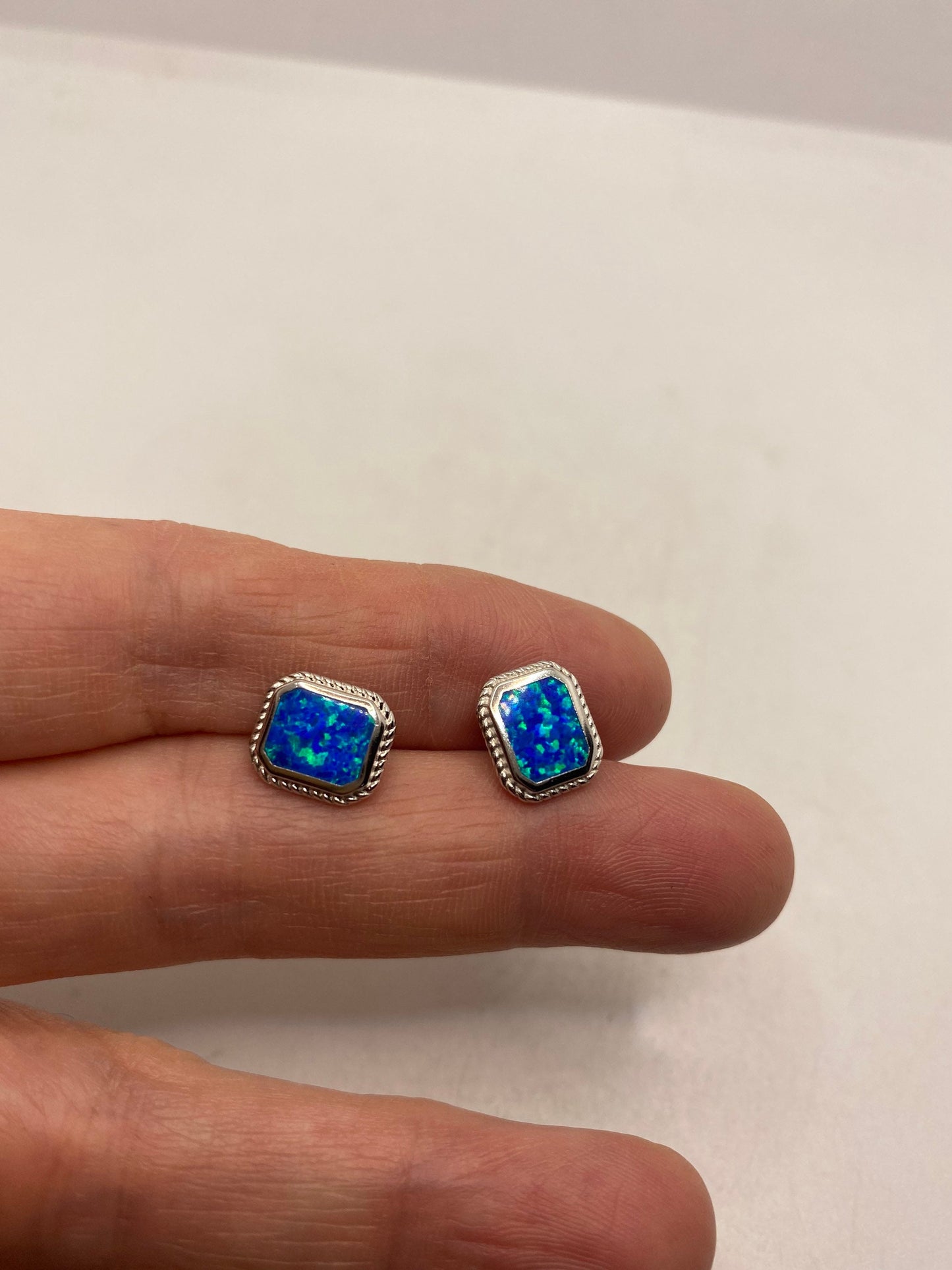 Vintage Opal Earrings 925 Sterling Silver Stud Button