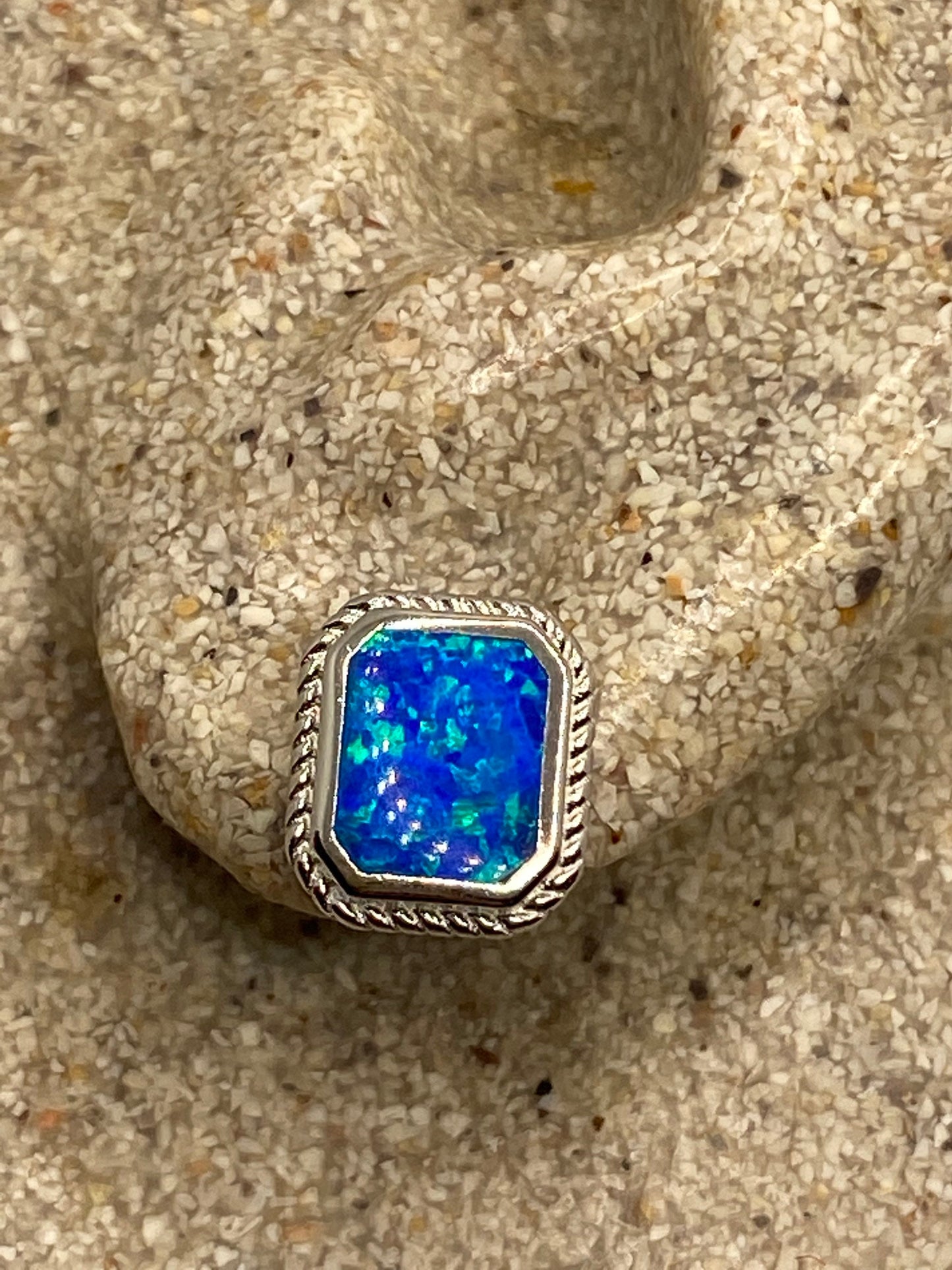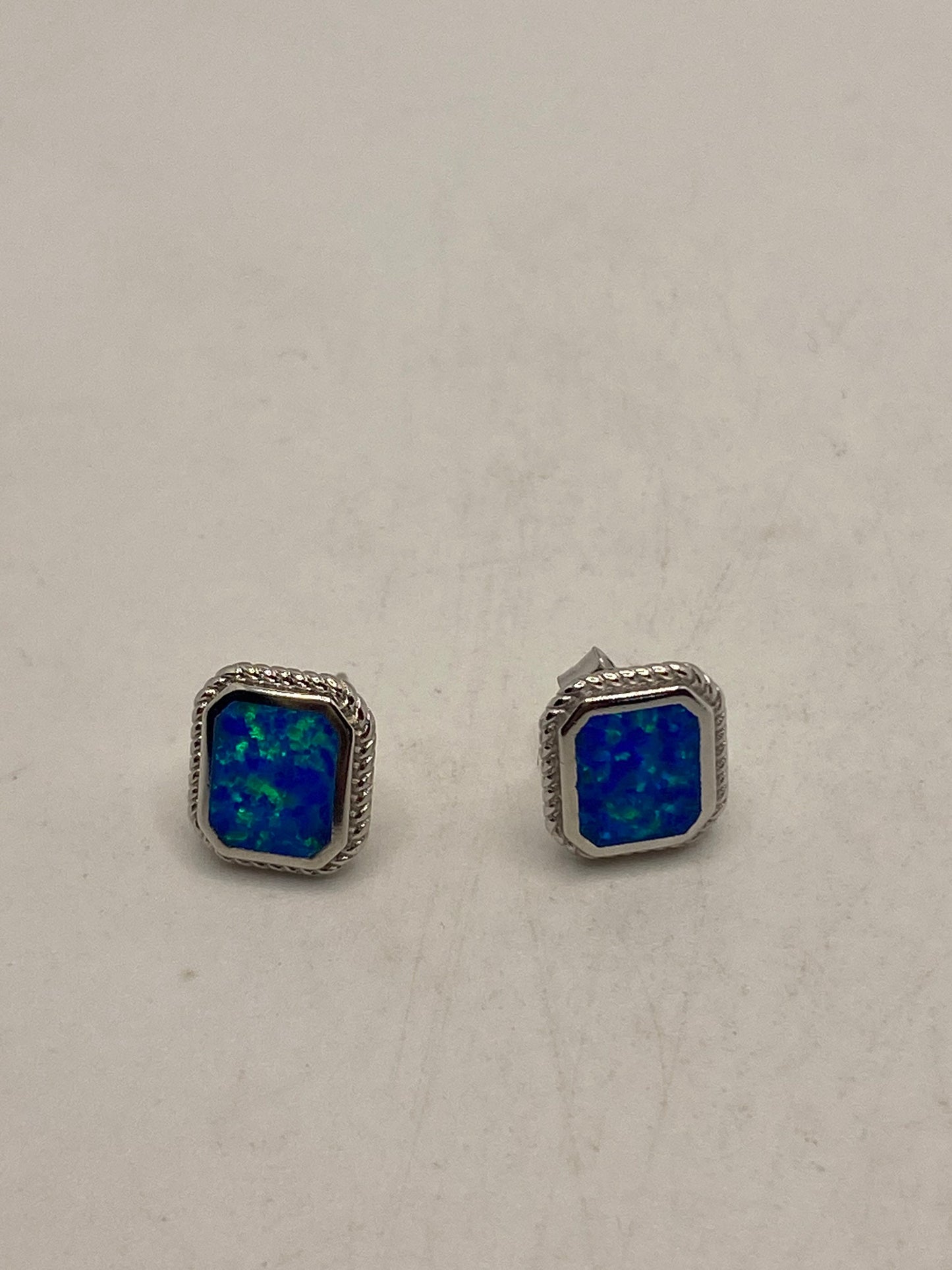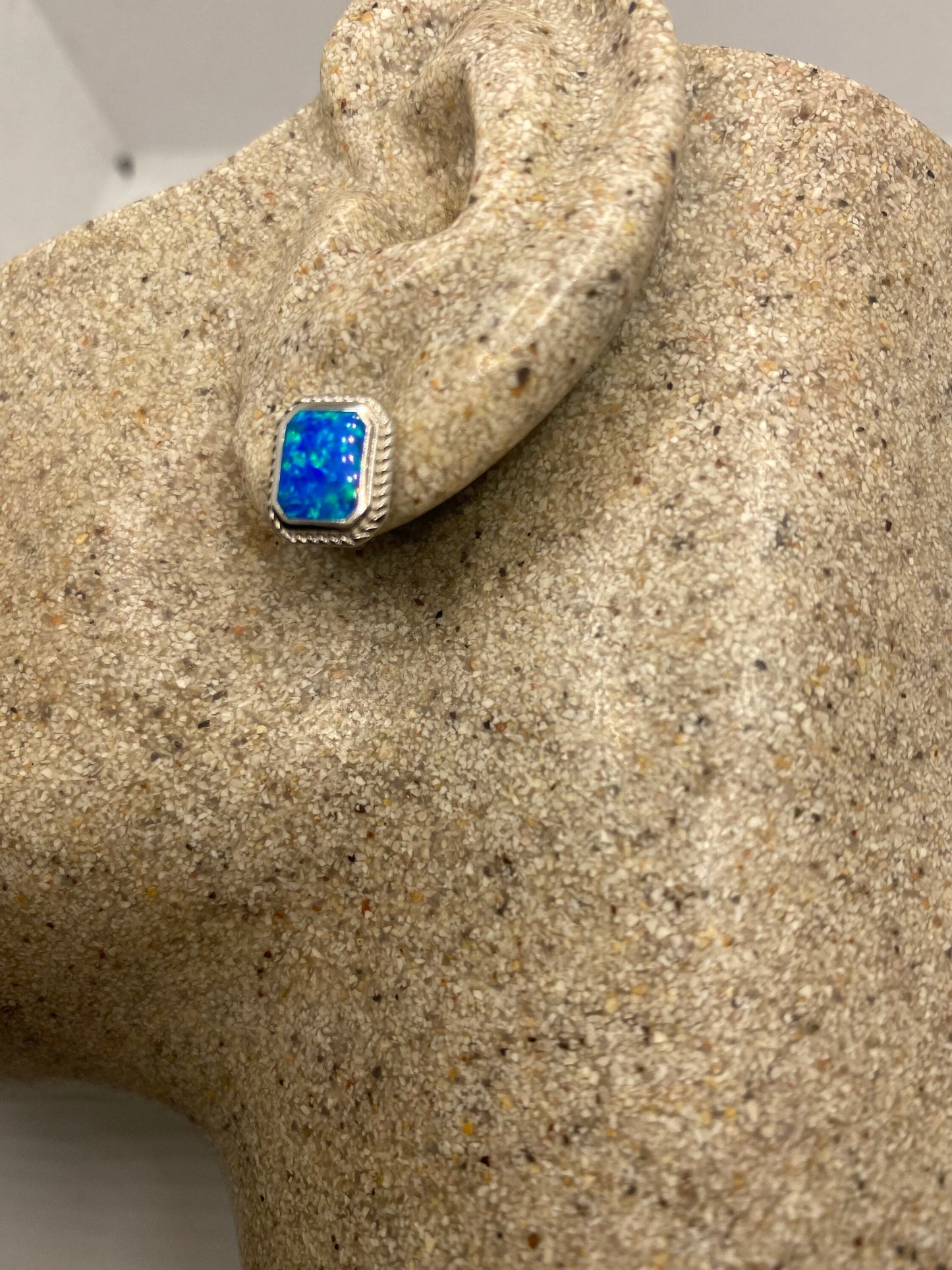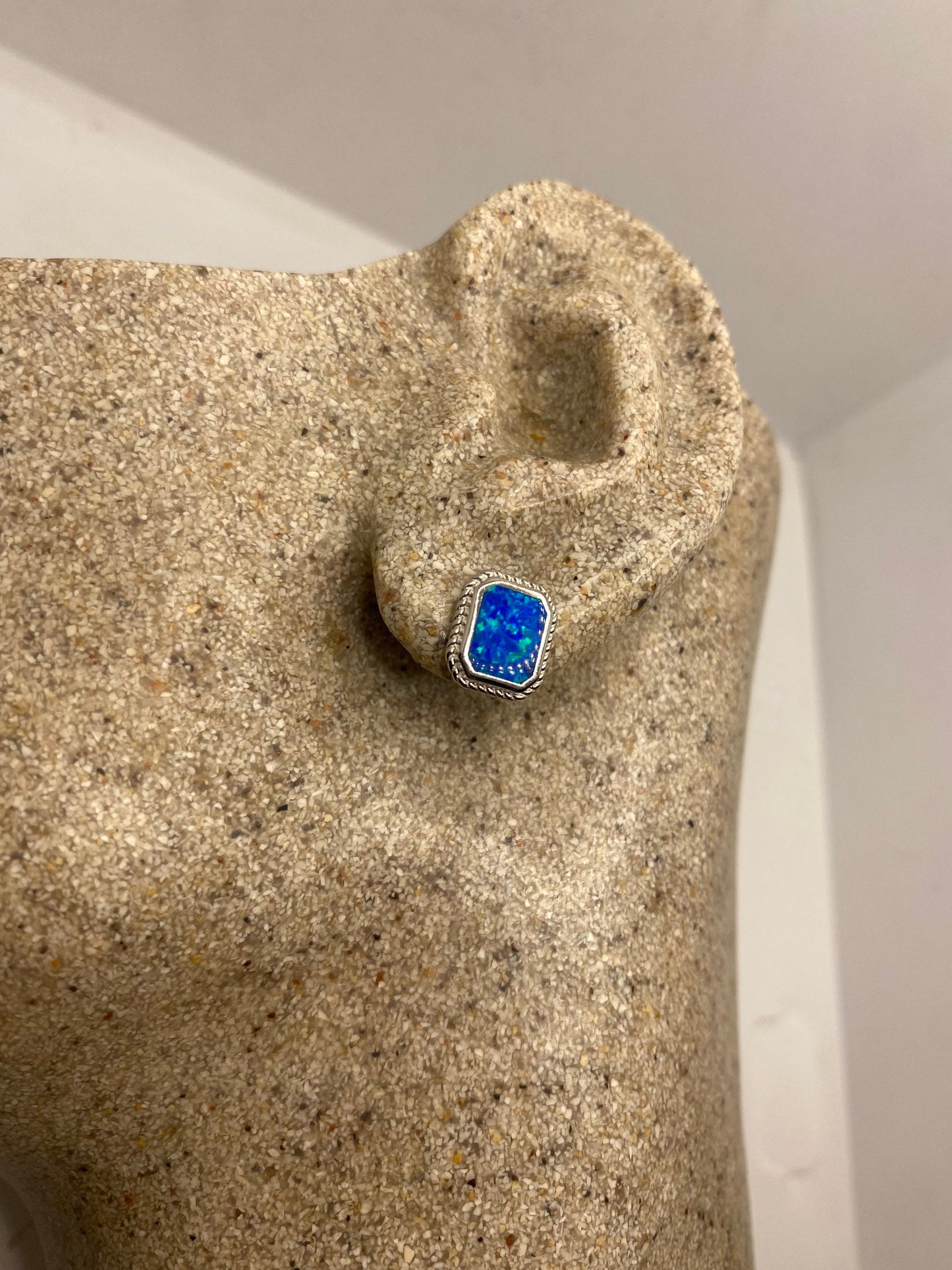 Vintage Opal Earrings 925 Sterling Silver Stud Button