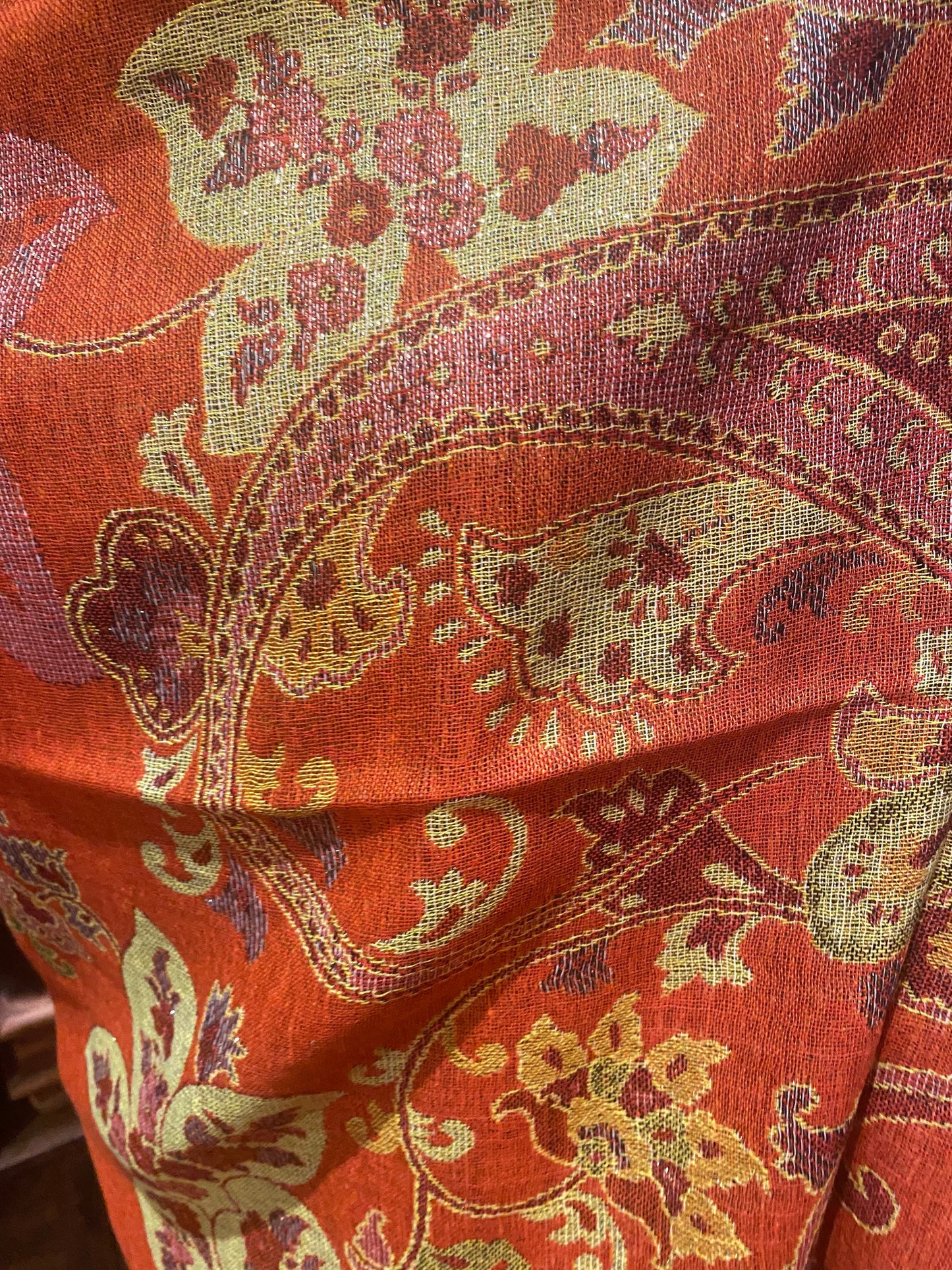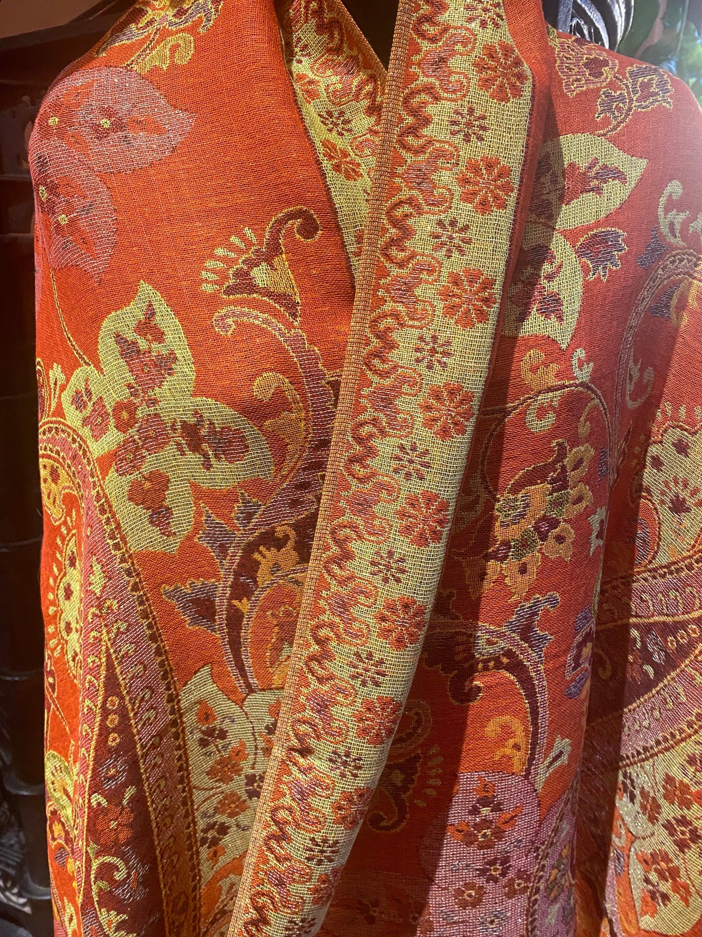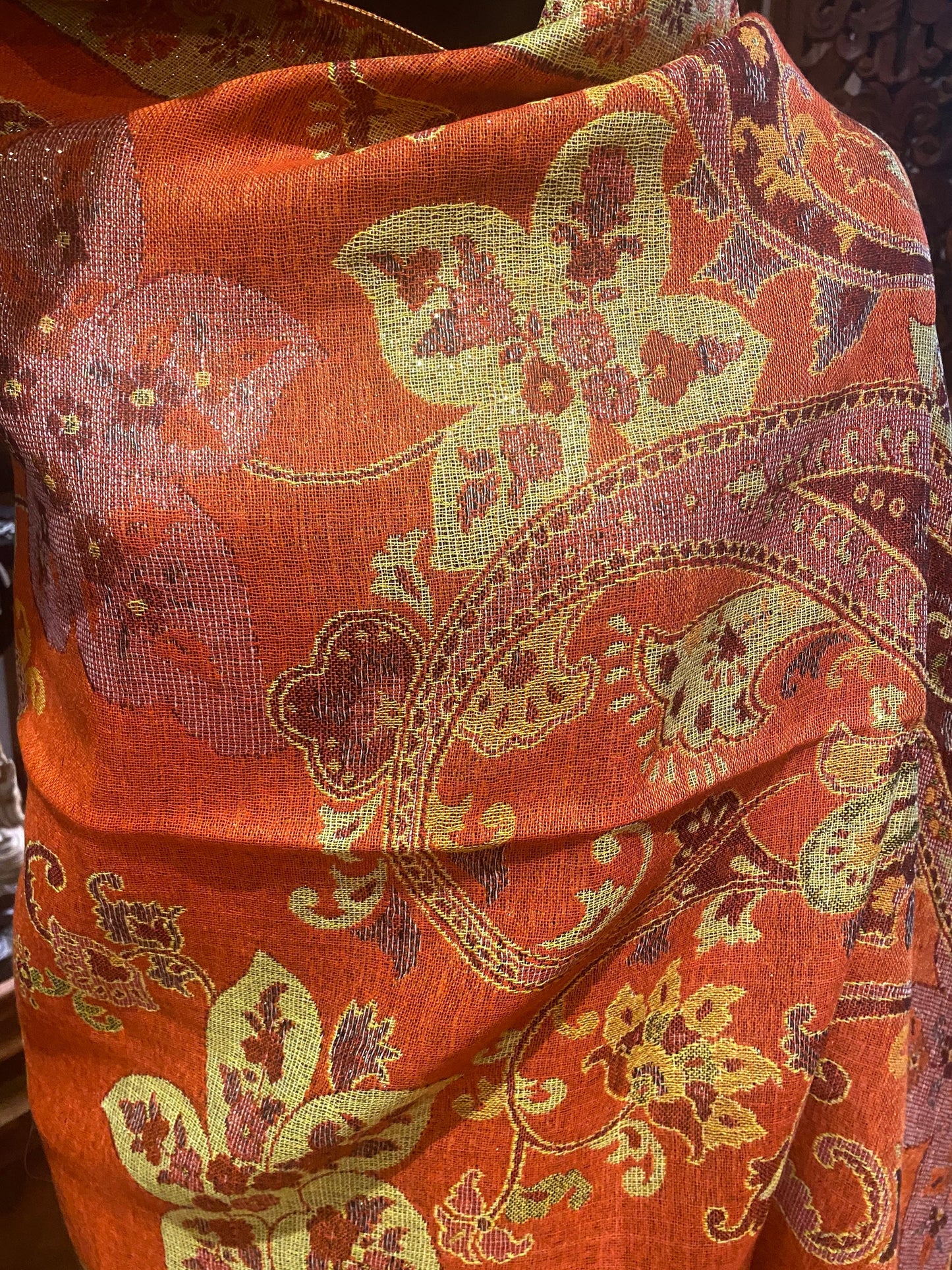Vintage Orange Gold Paisley Brocade Pashmina Scarf Wrap