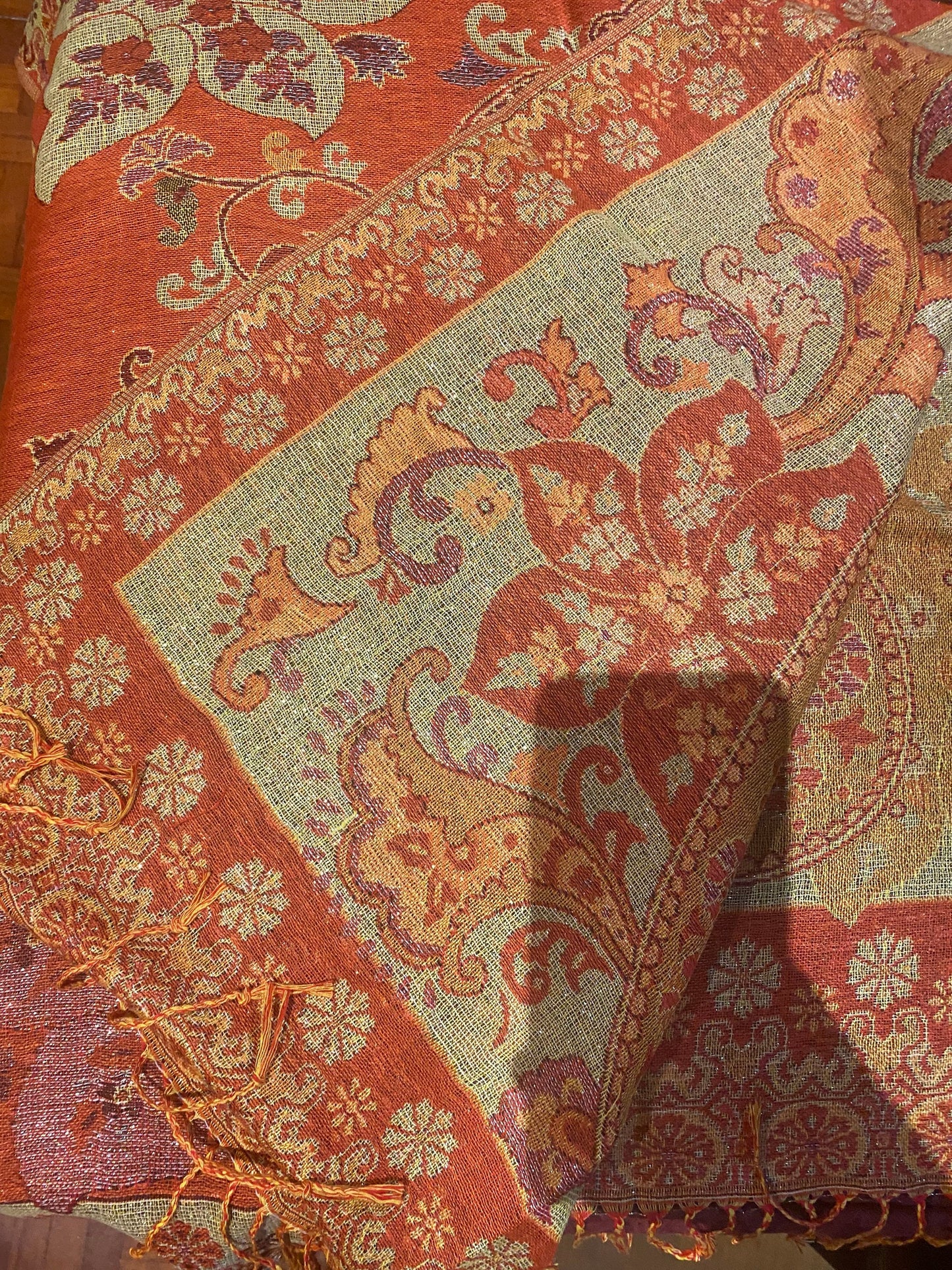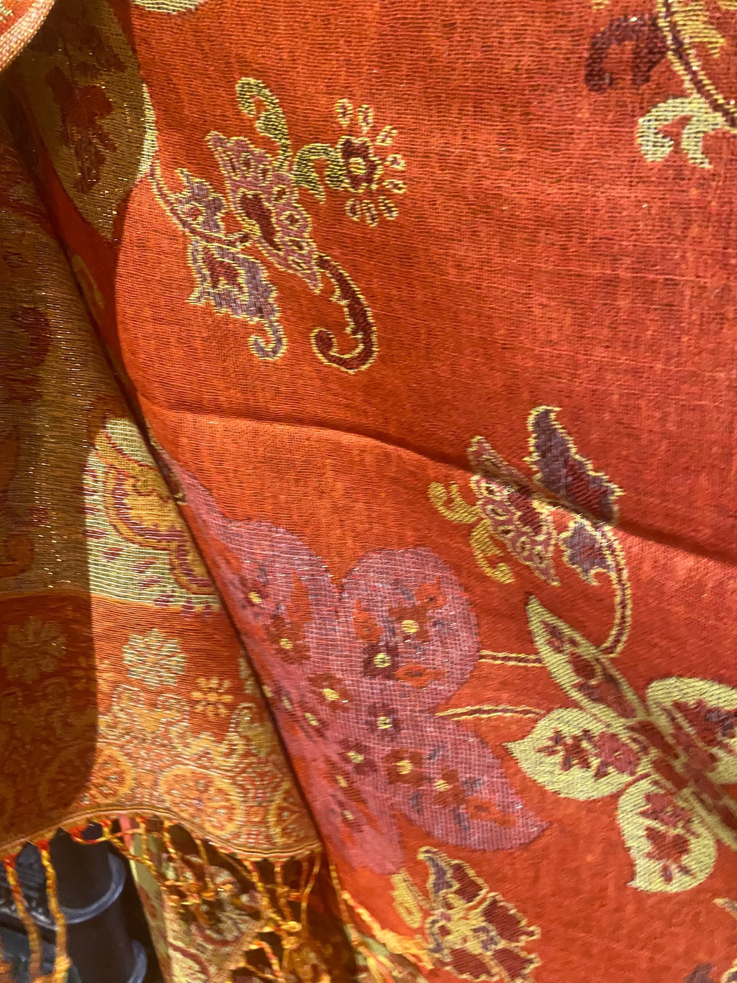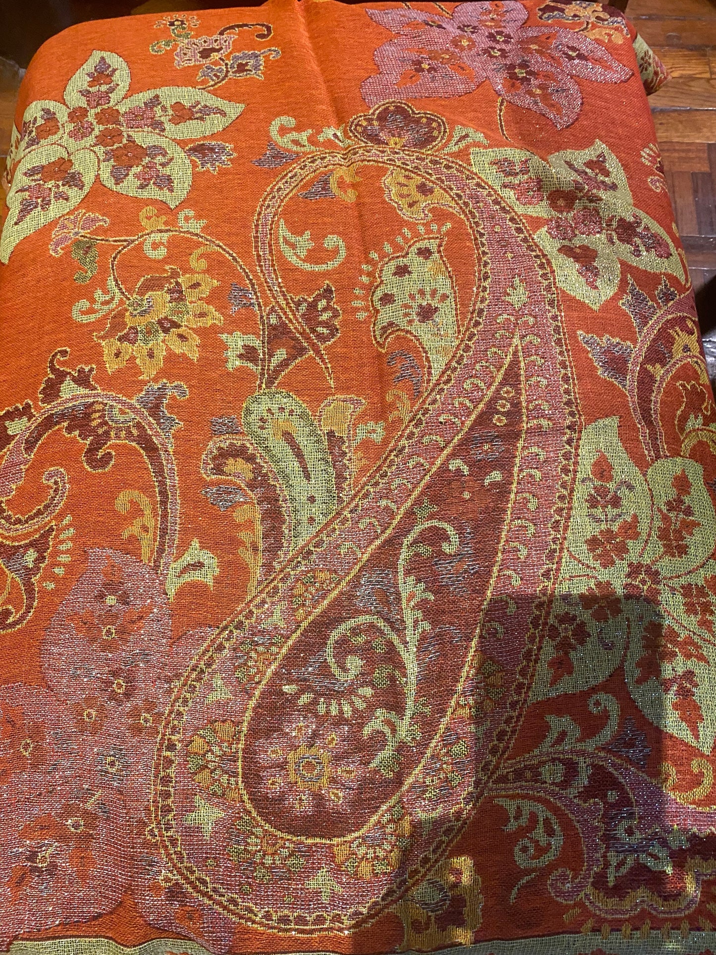 Vintage Orange Gold Paisley Brocade Pashmina Scarf Wrap