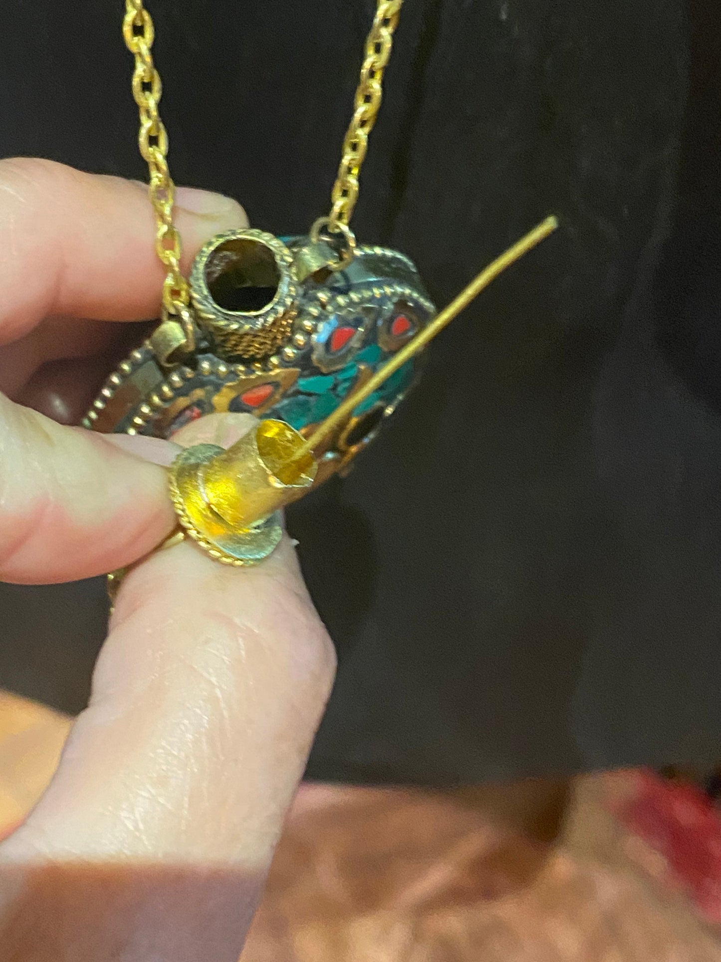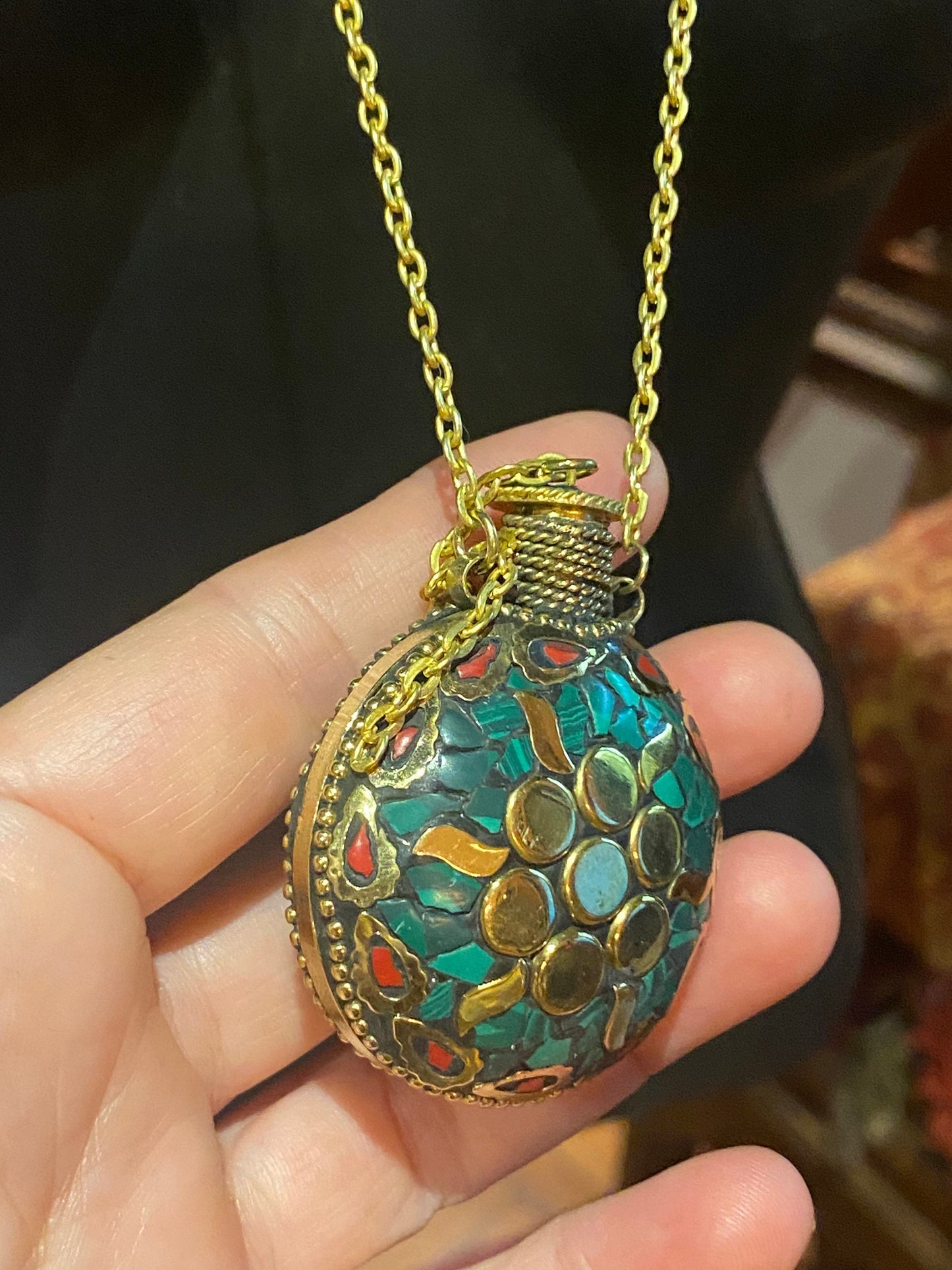 Vintage Perfume Oil Bottle mosaic Inlay Gemstone Pendant Necklace