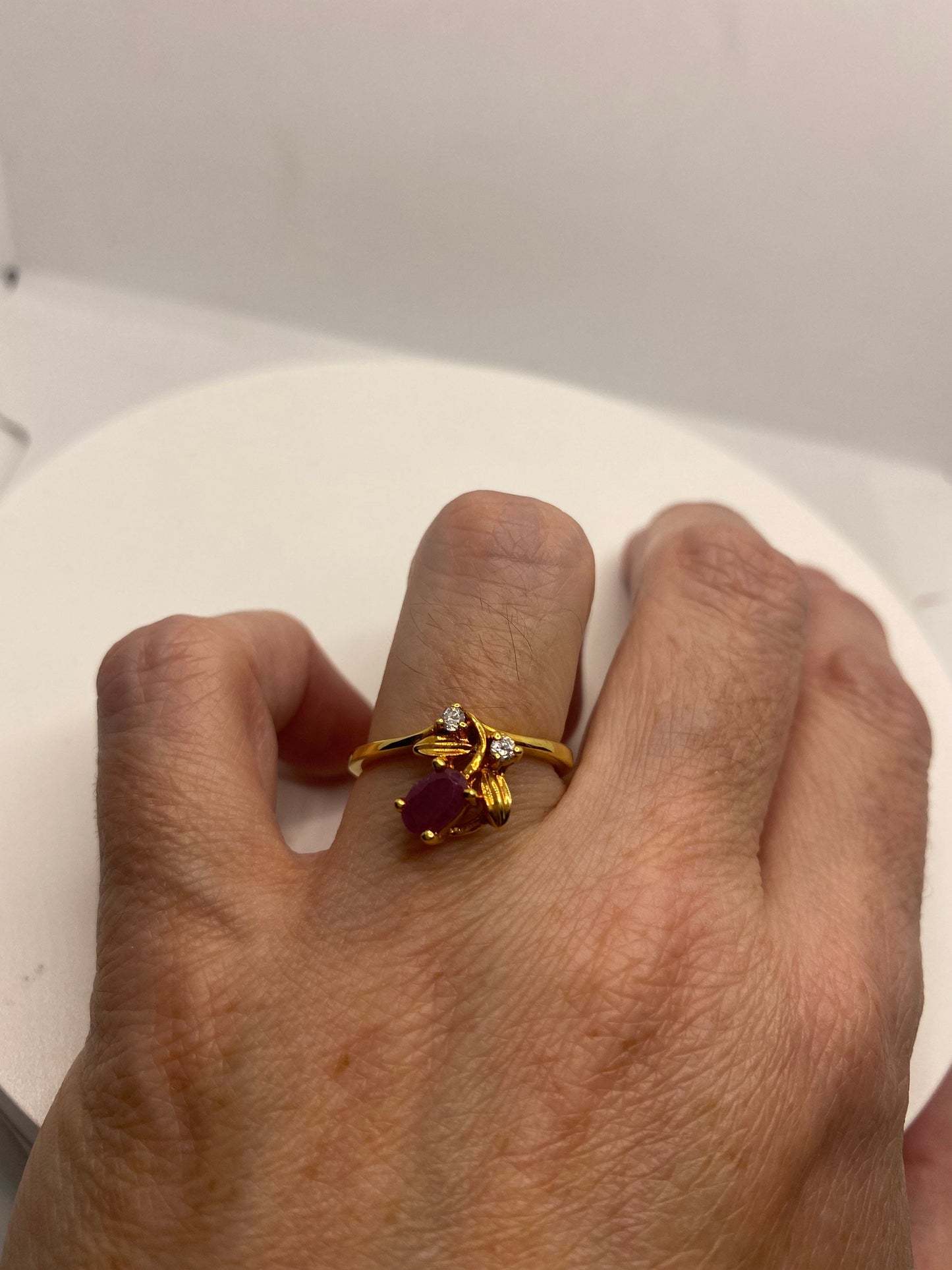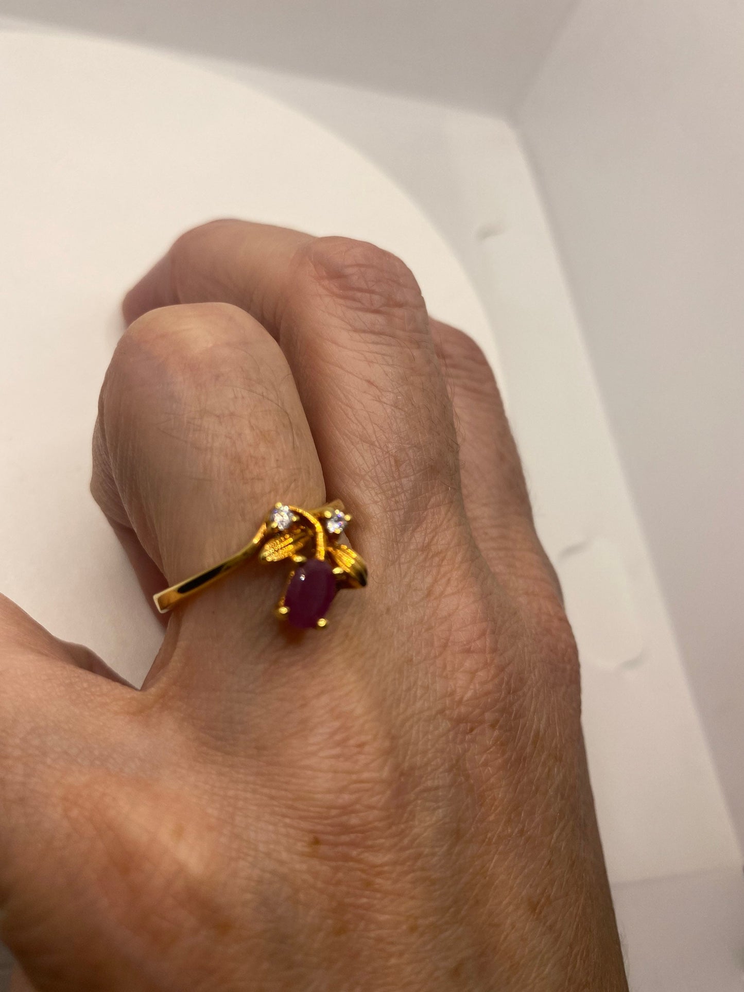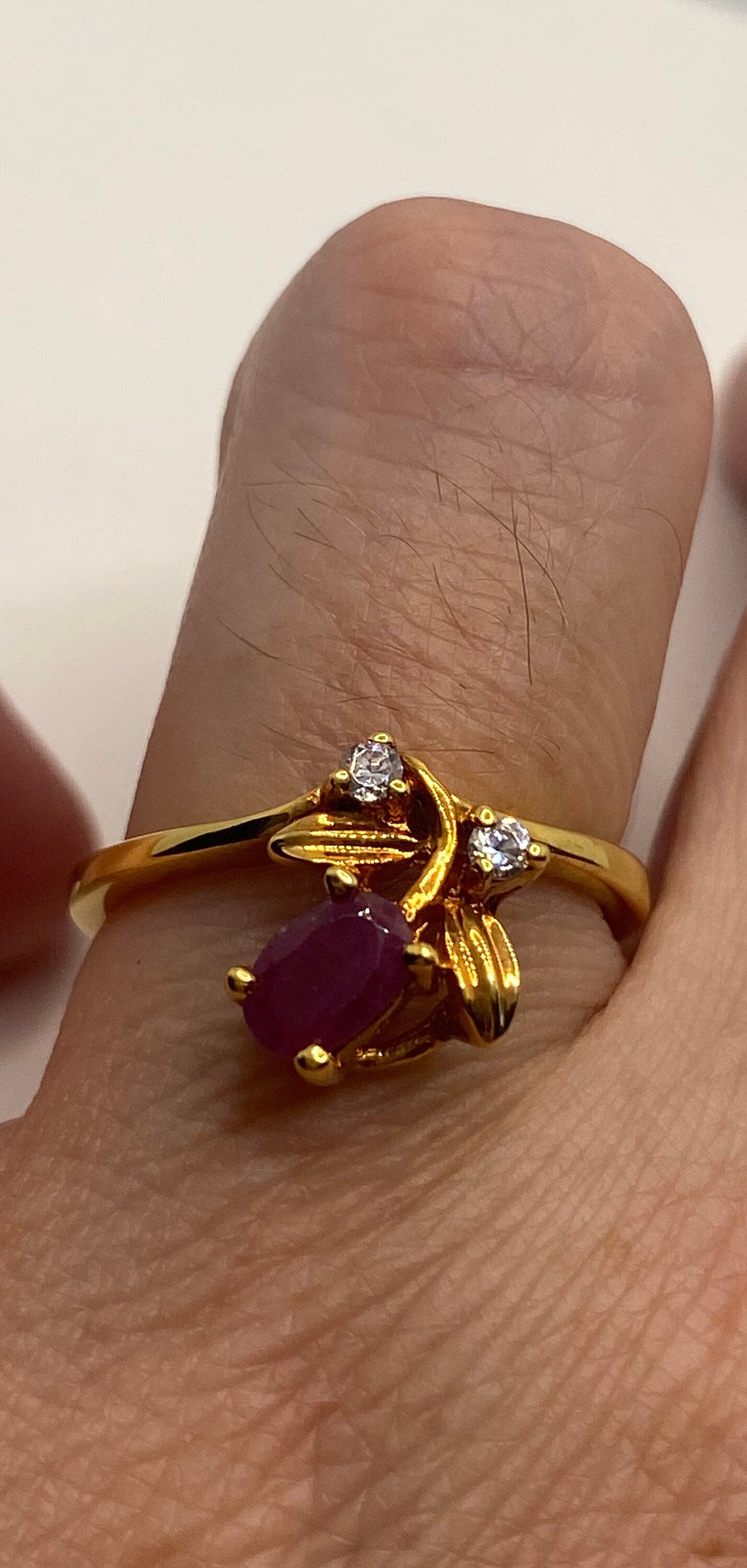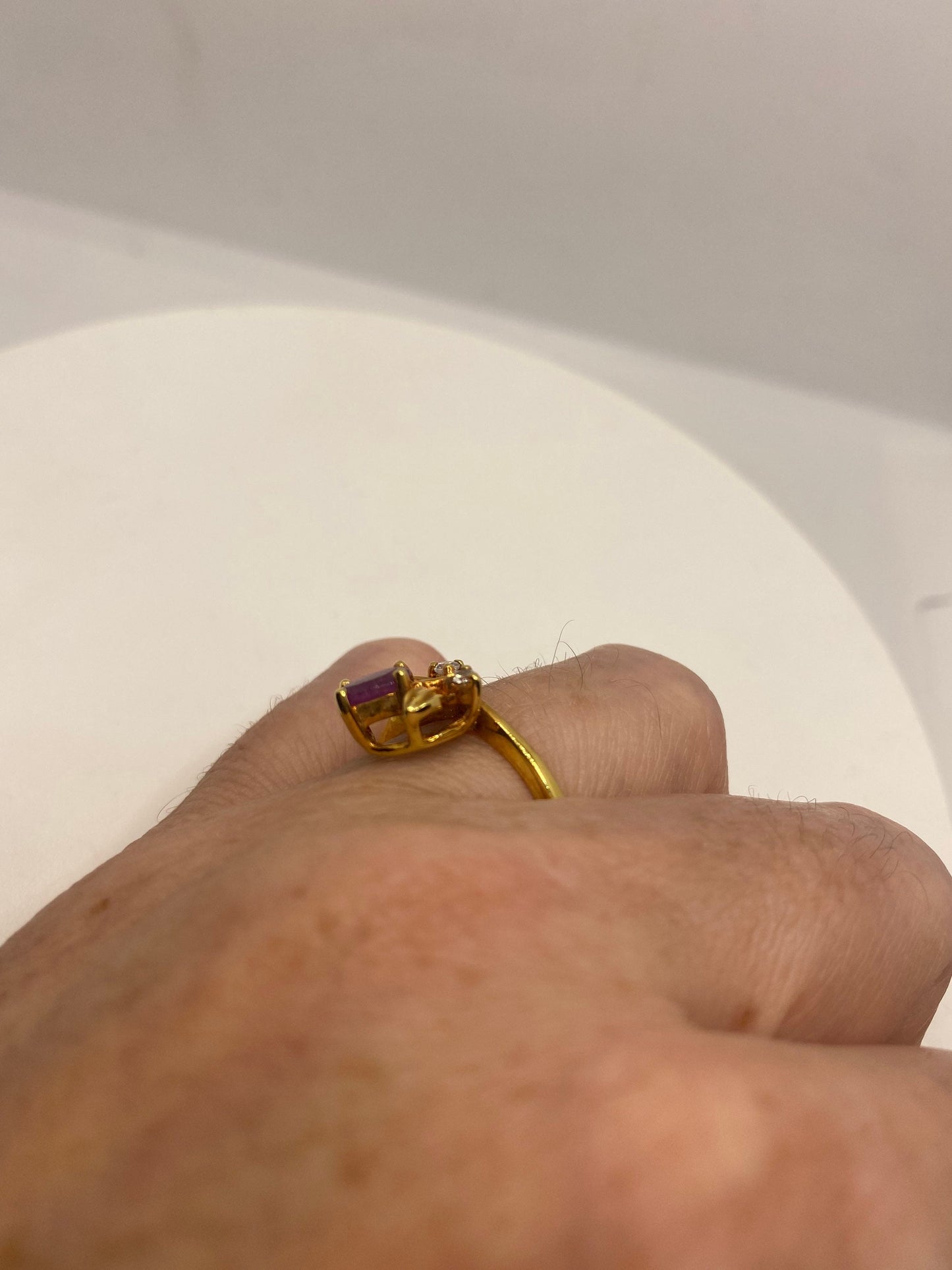Vintage Pink Ruby Golden 925 Sterling Silver Band Ring
