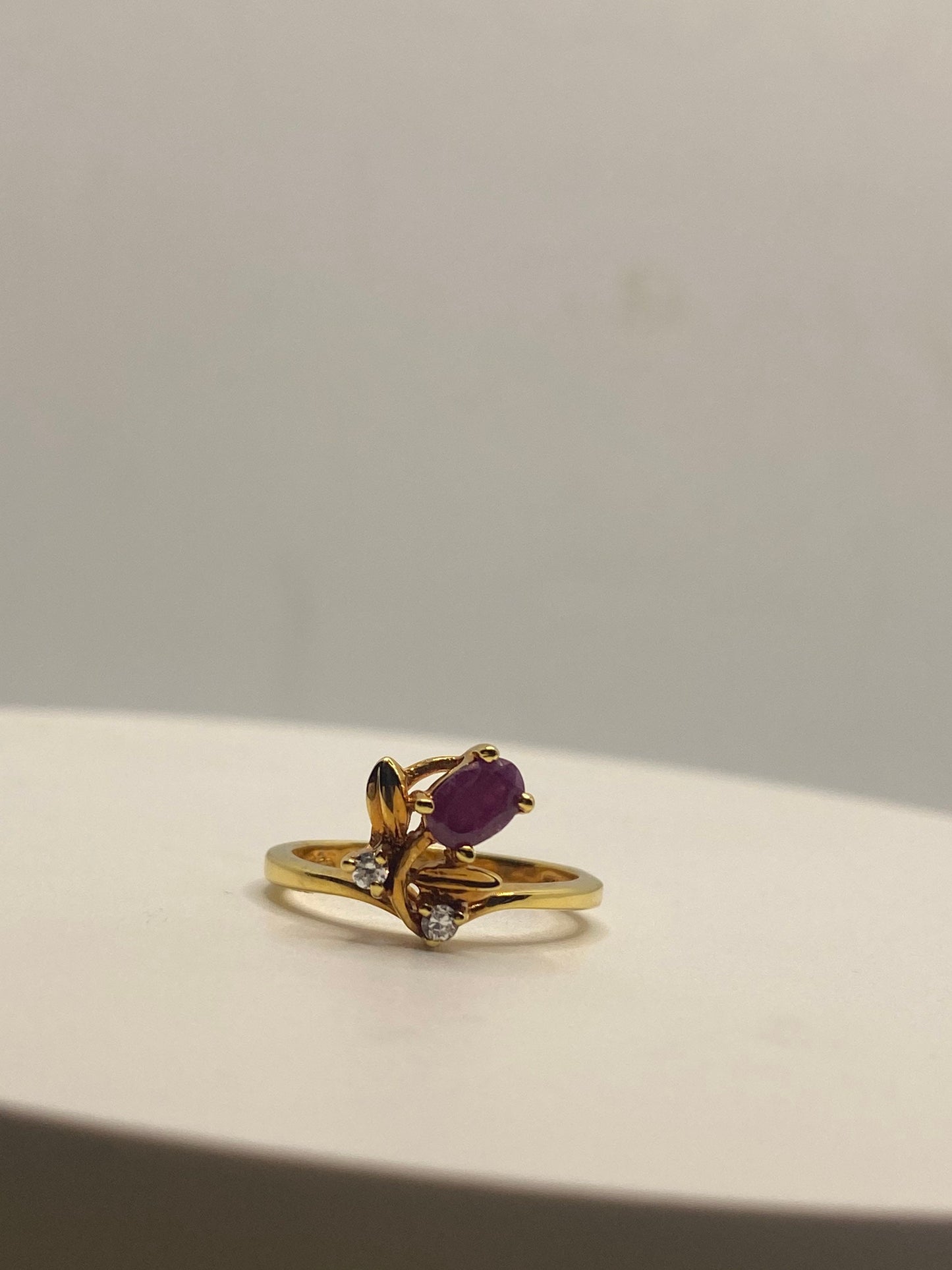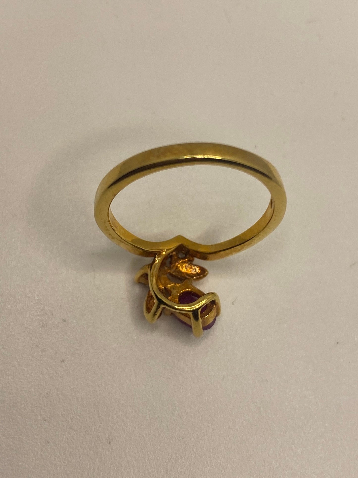 Unusual Deep Ruby and Golden Sterling Filigree Setting Handmade