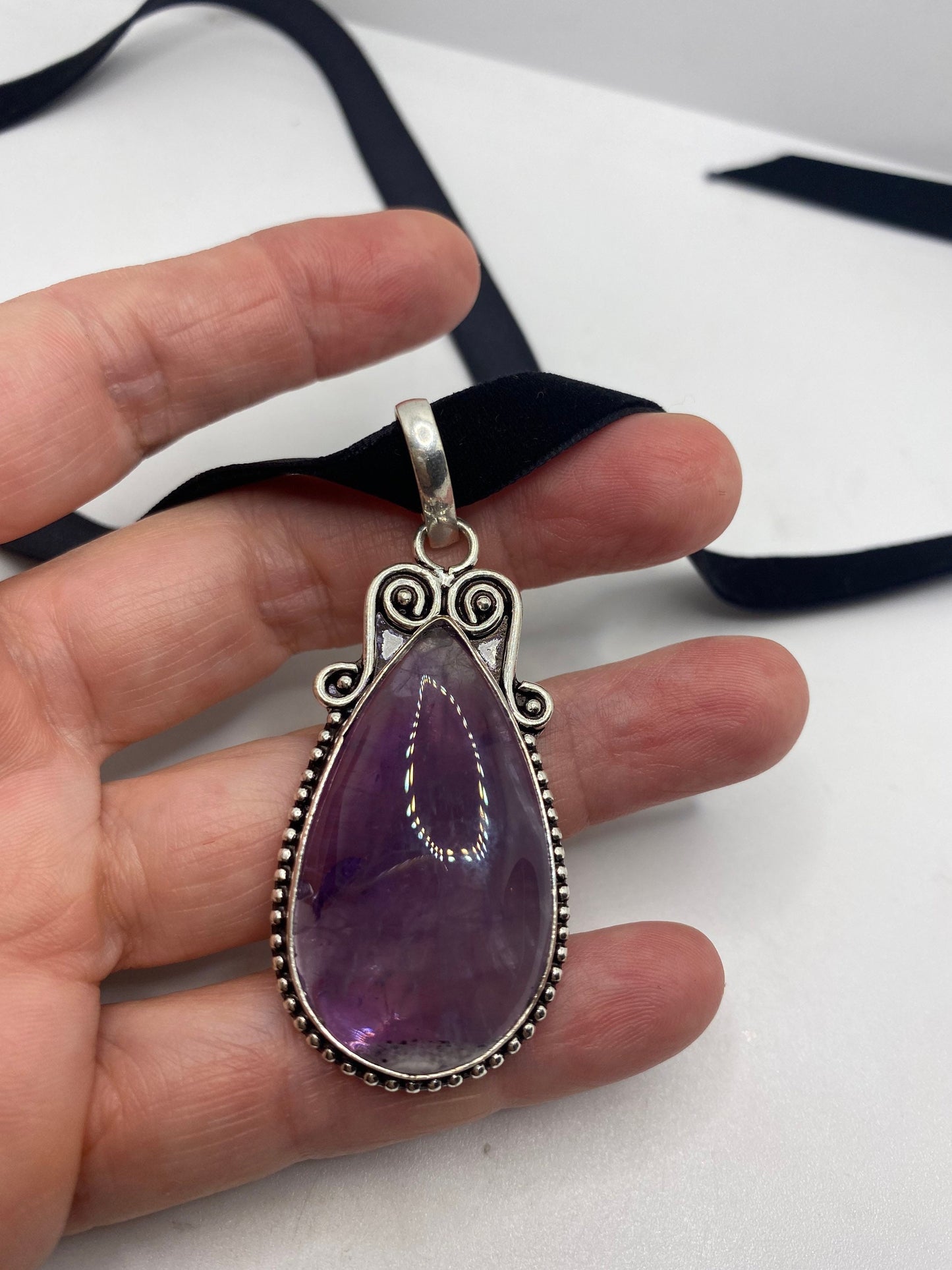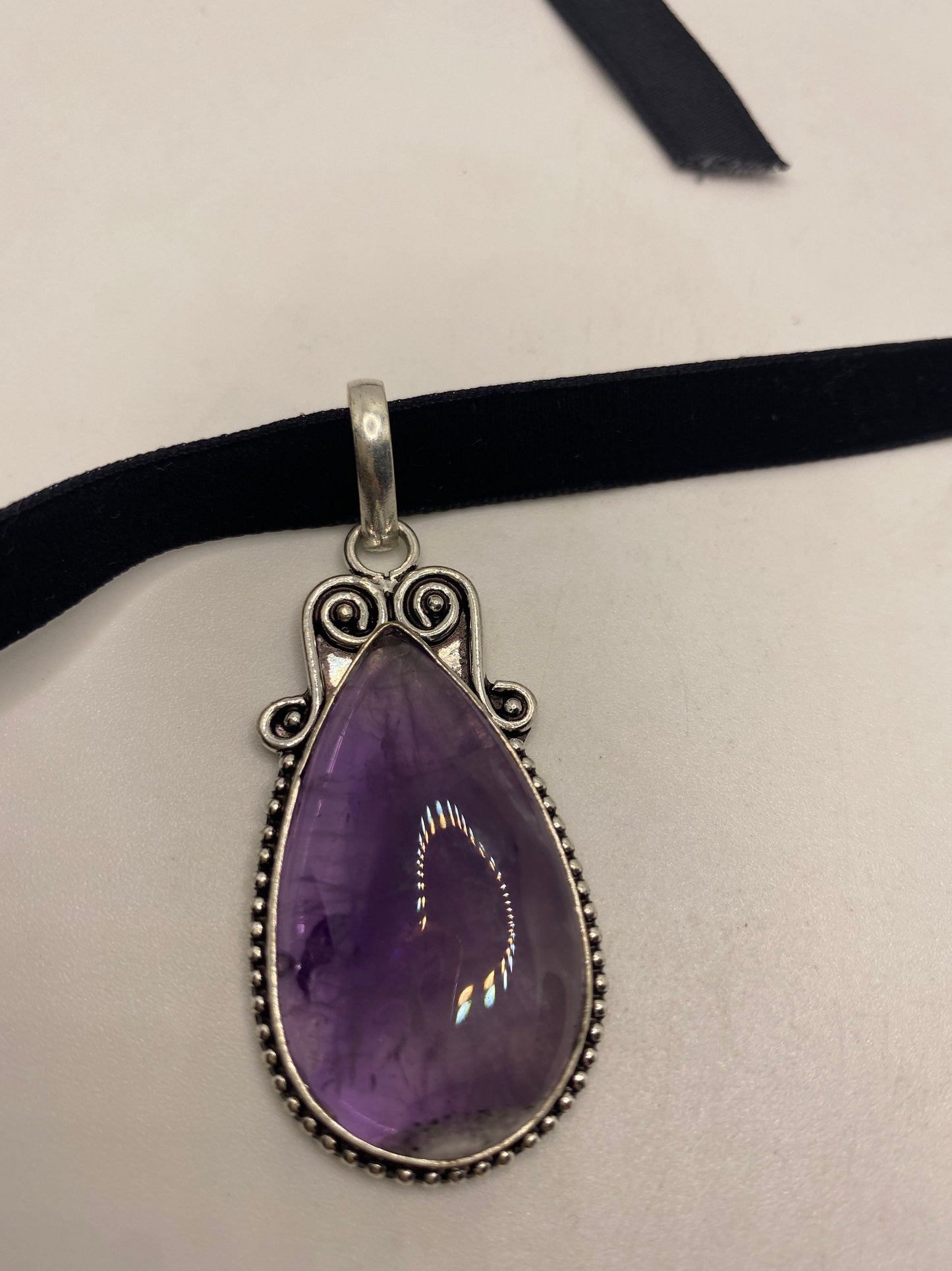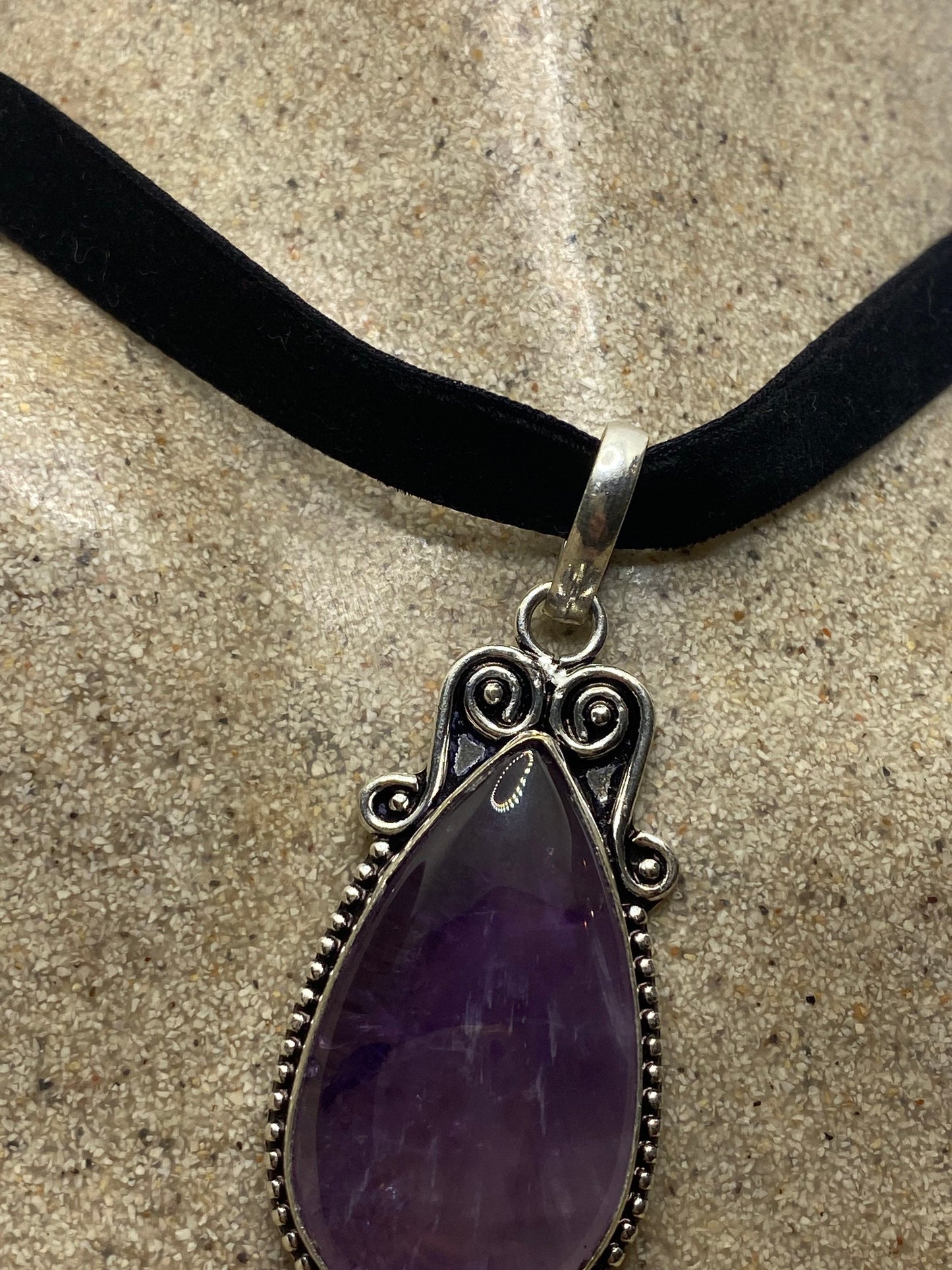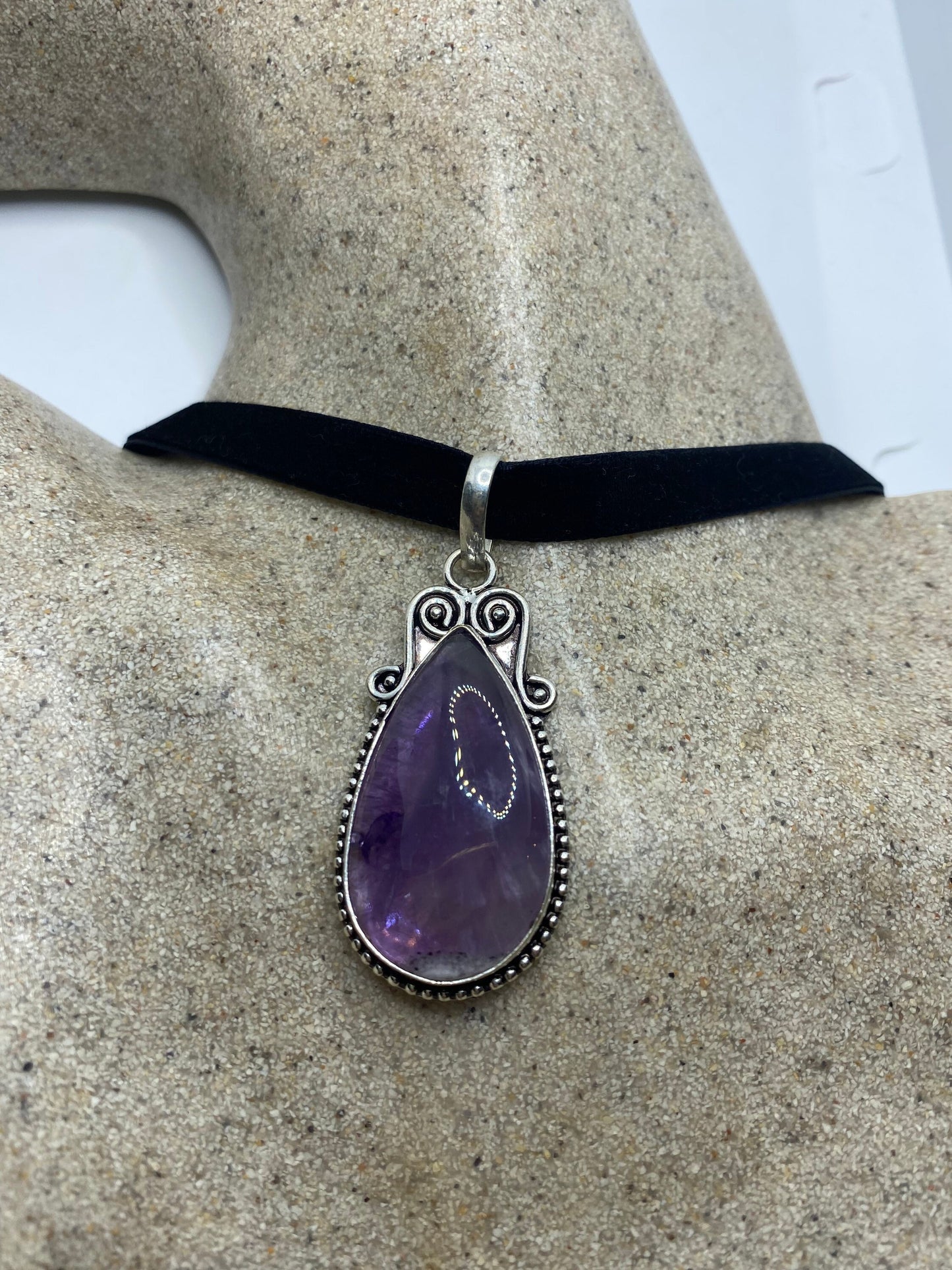 Vintage Purple Amethyst Choker Bohemian Cabochon Droplet Necklace