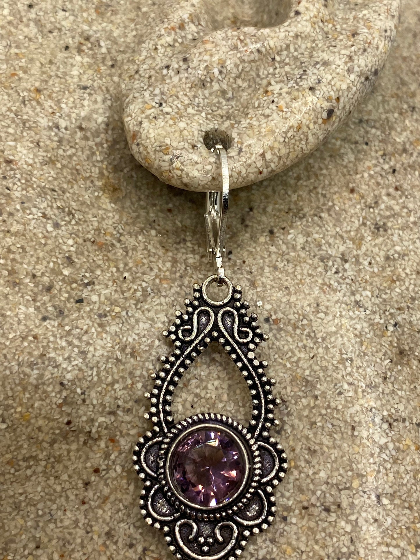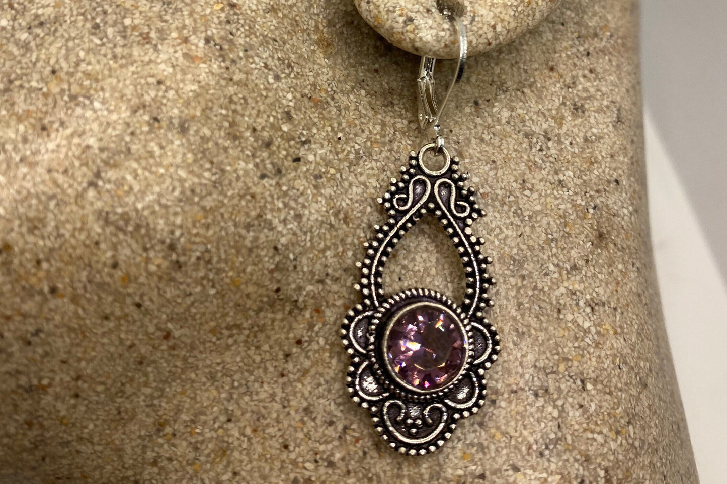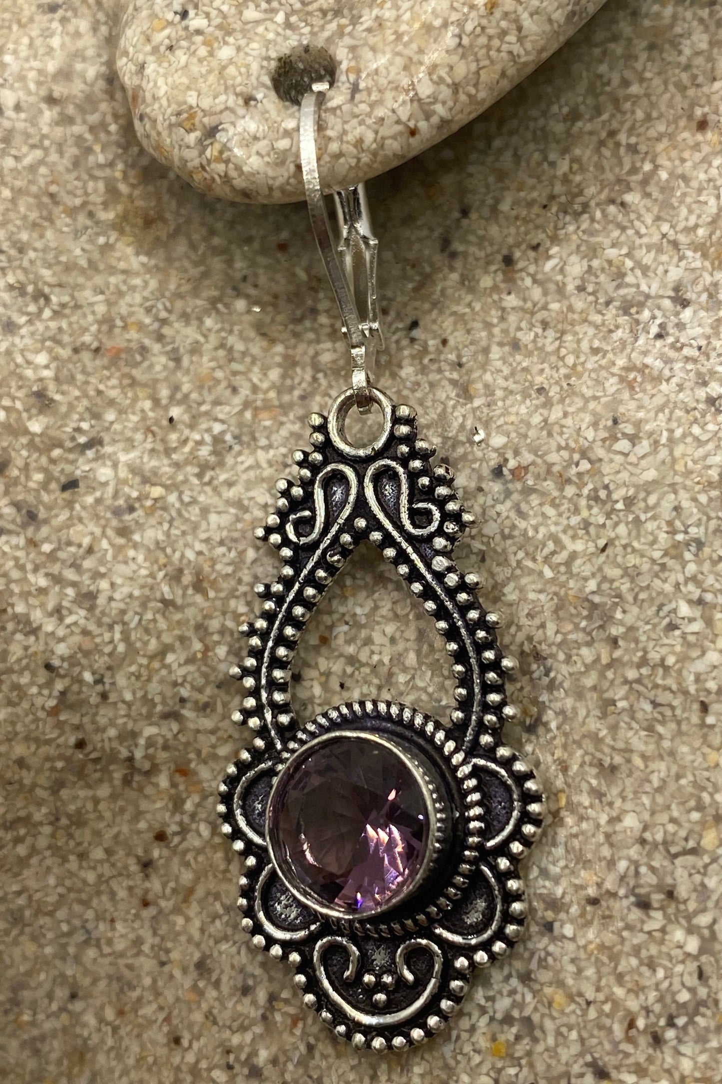 Vintage purple Amethyst earrings 925 Sterling silver leverback