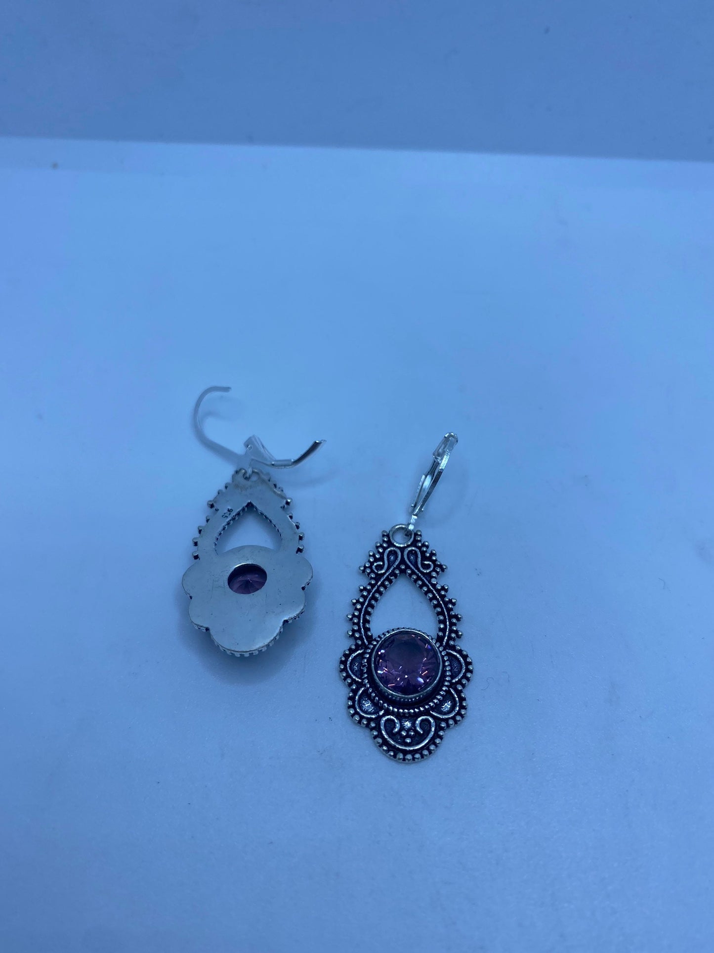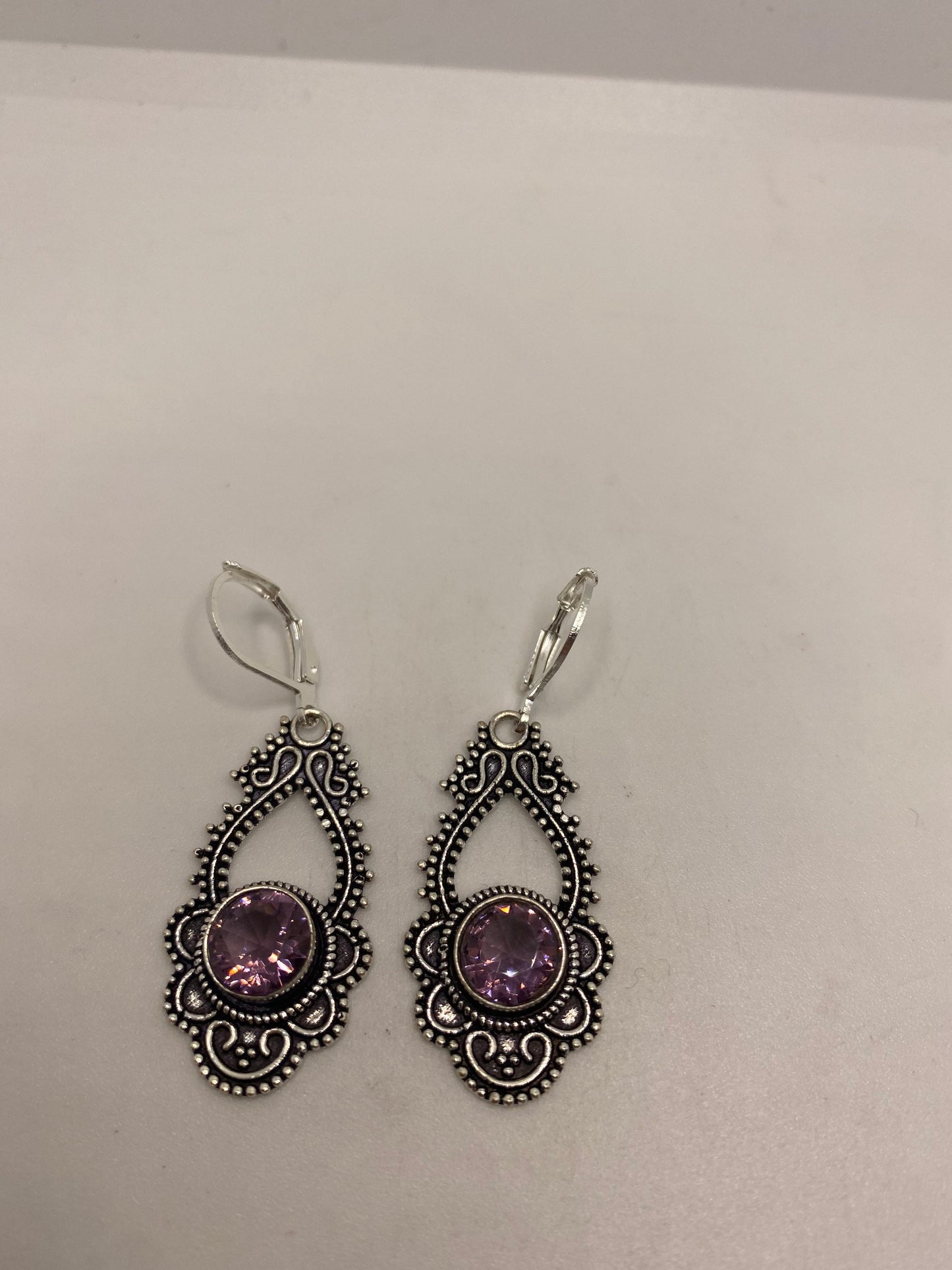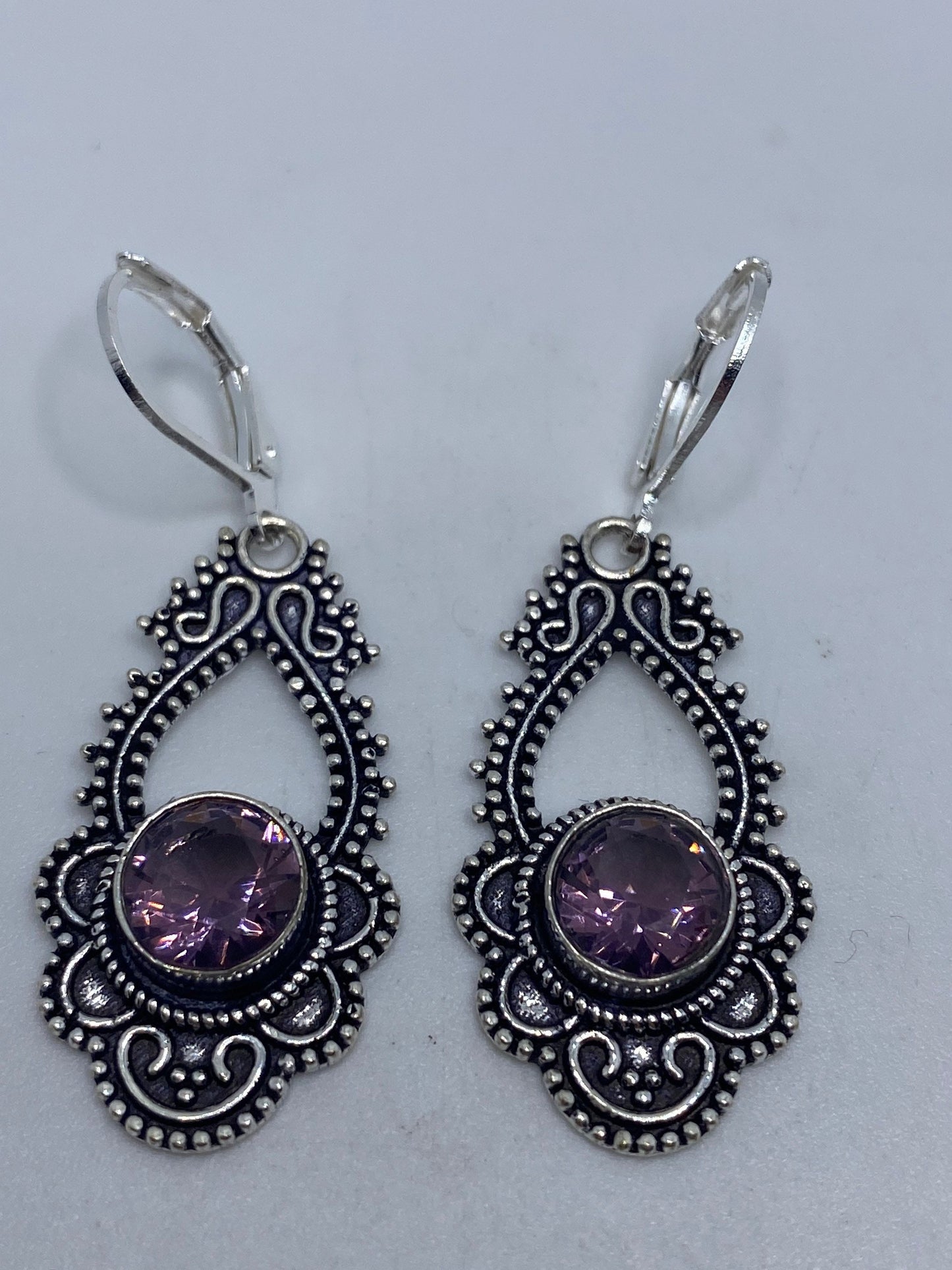 Vintage Purple Amethyst Earrings 925 Sterling Silver Leverback