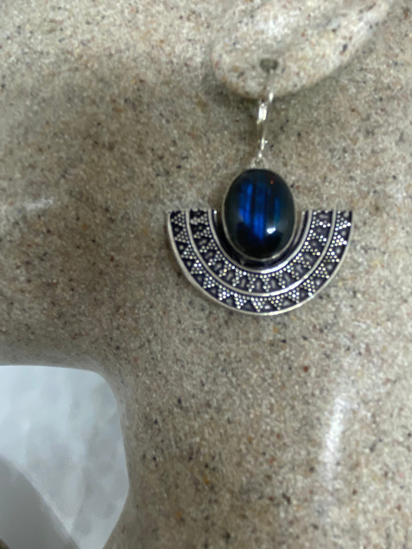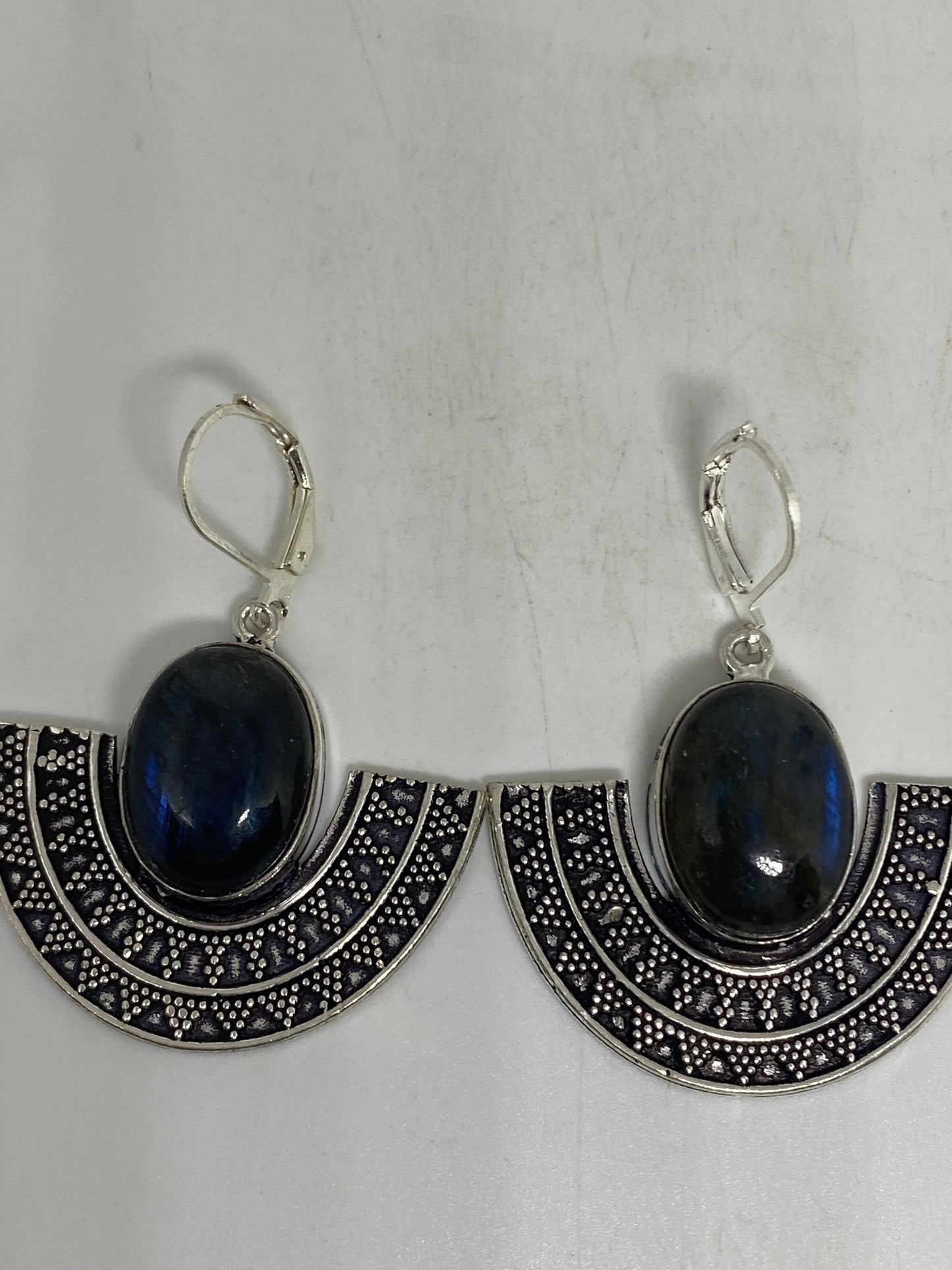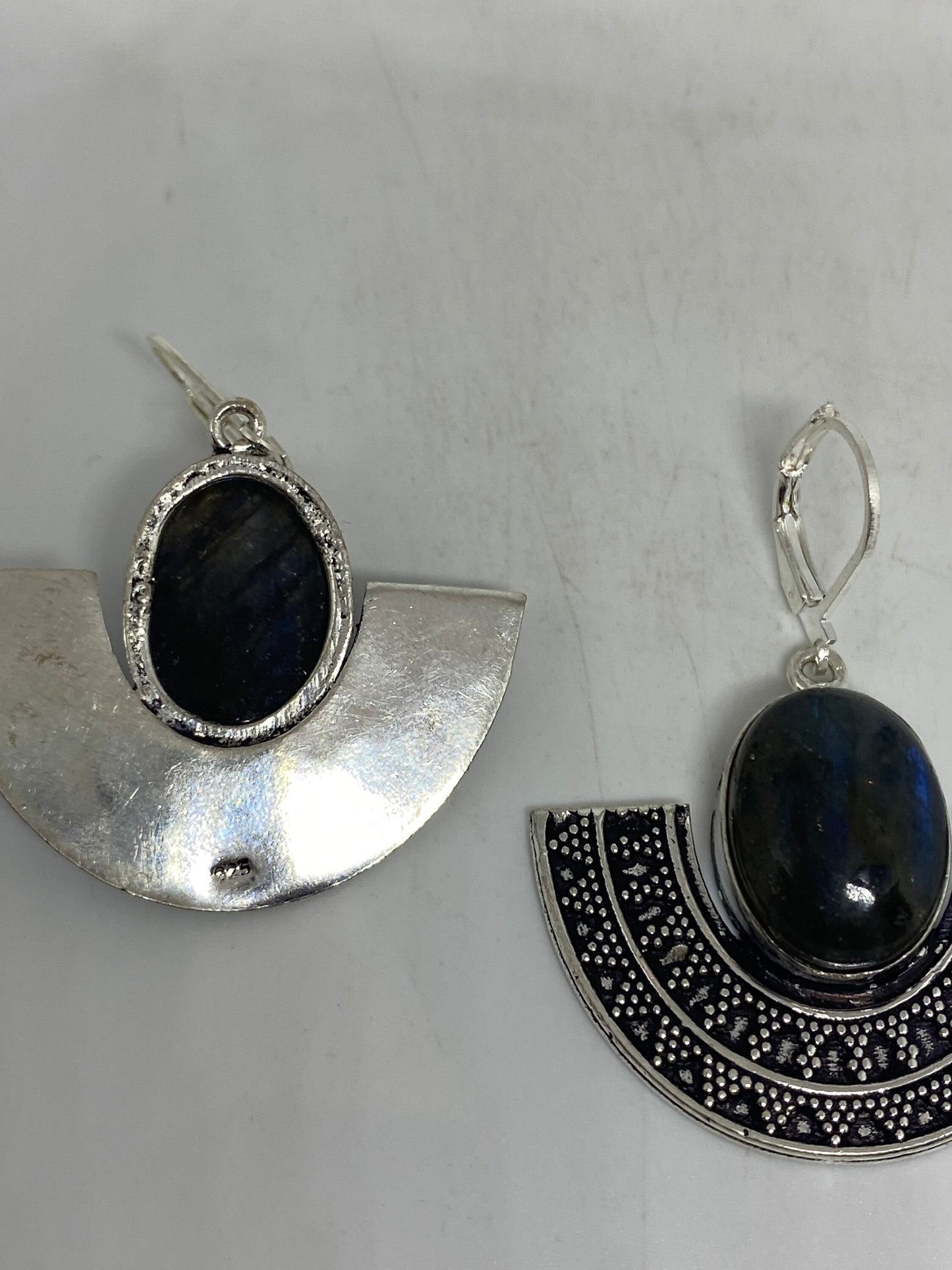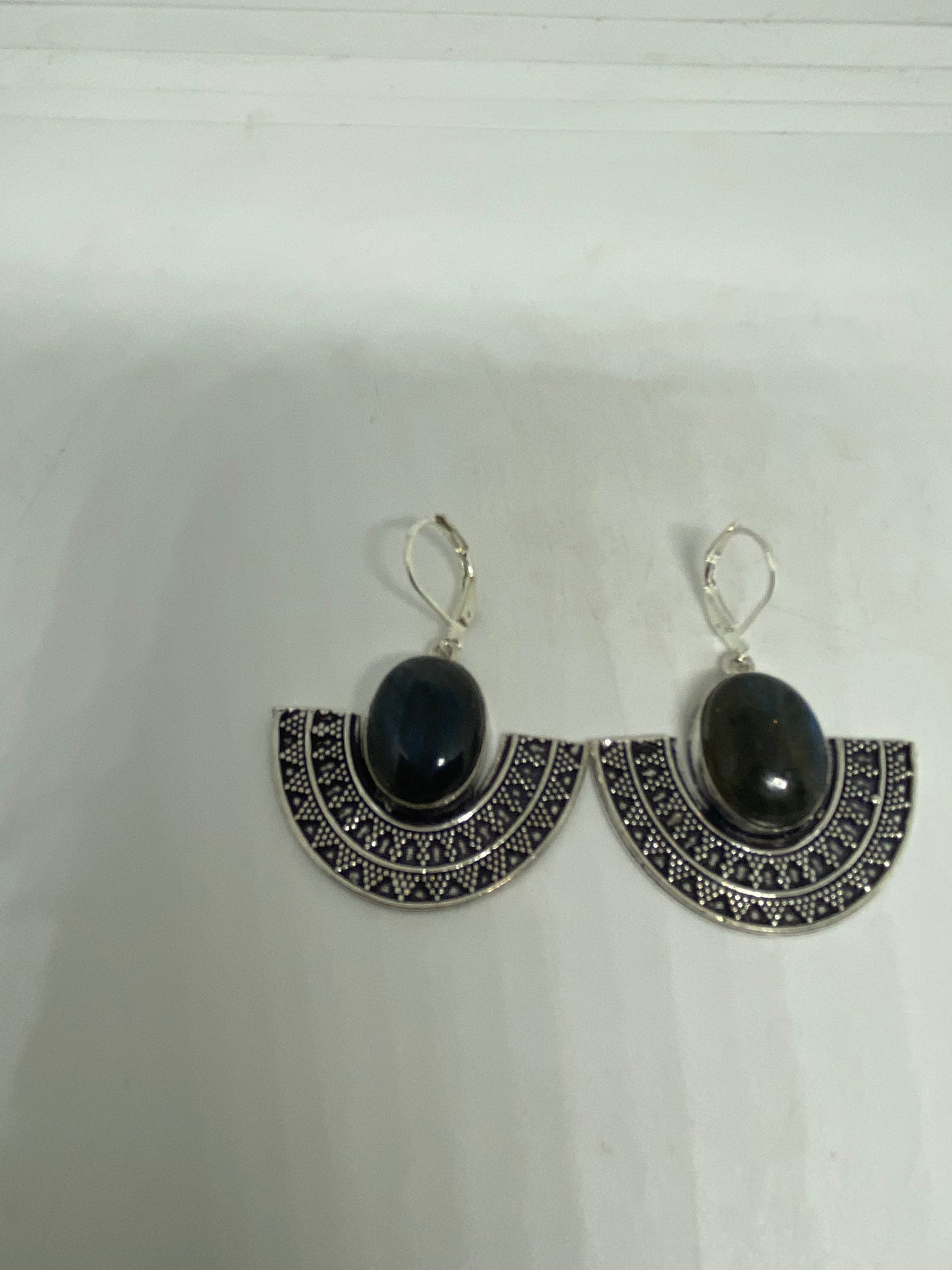 Vintage Rainbow Labradorite Earrings silver dangle 925 Sterling silver Leverbacks