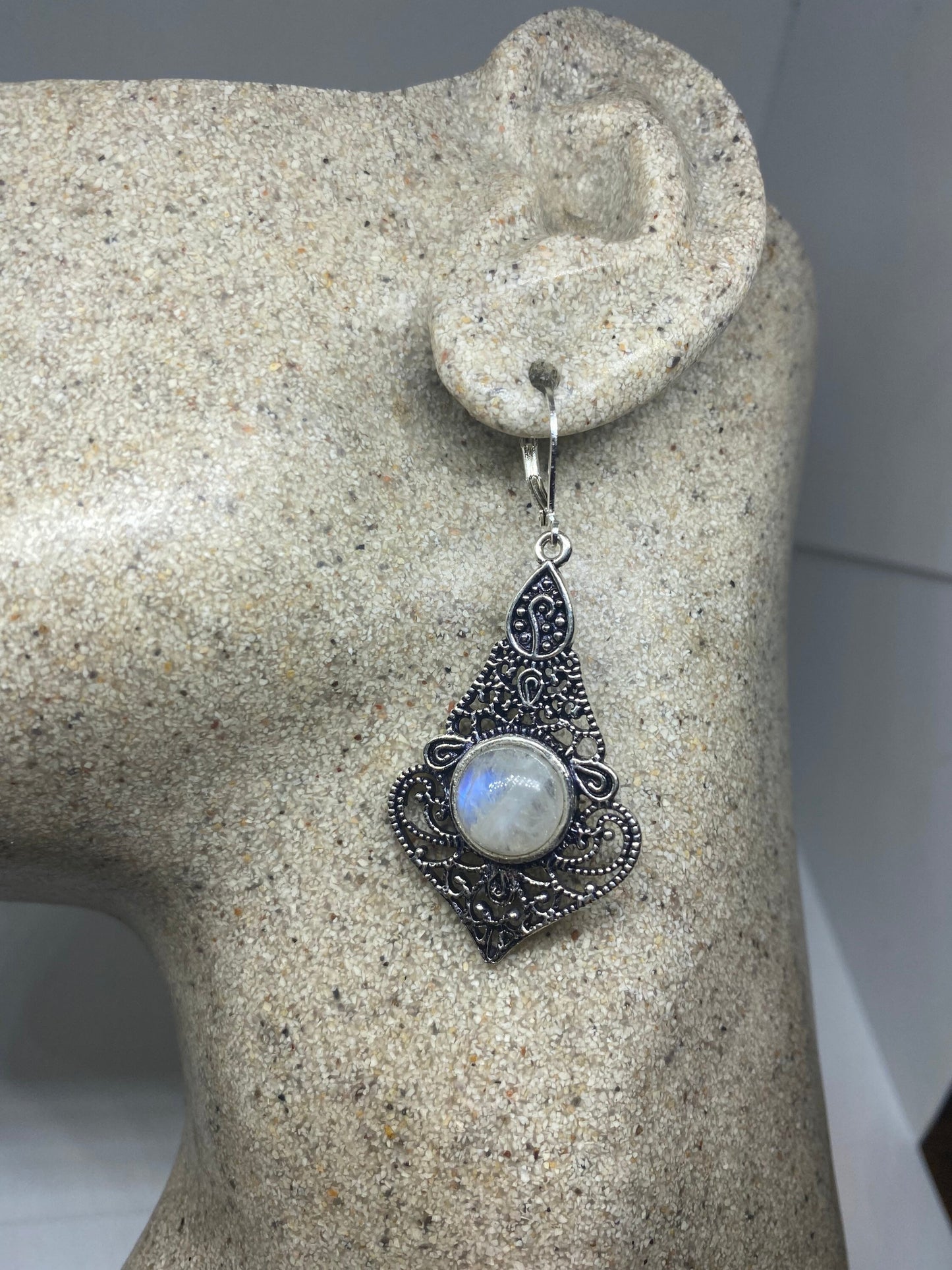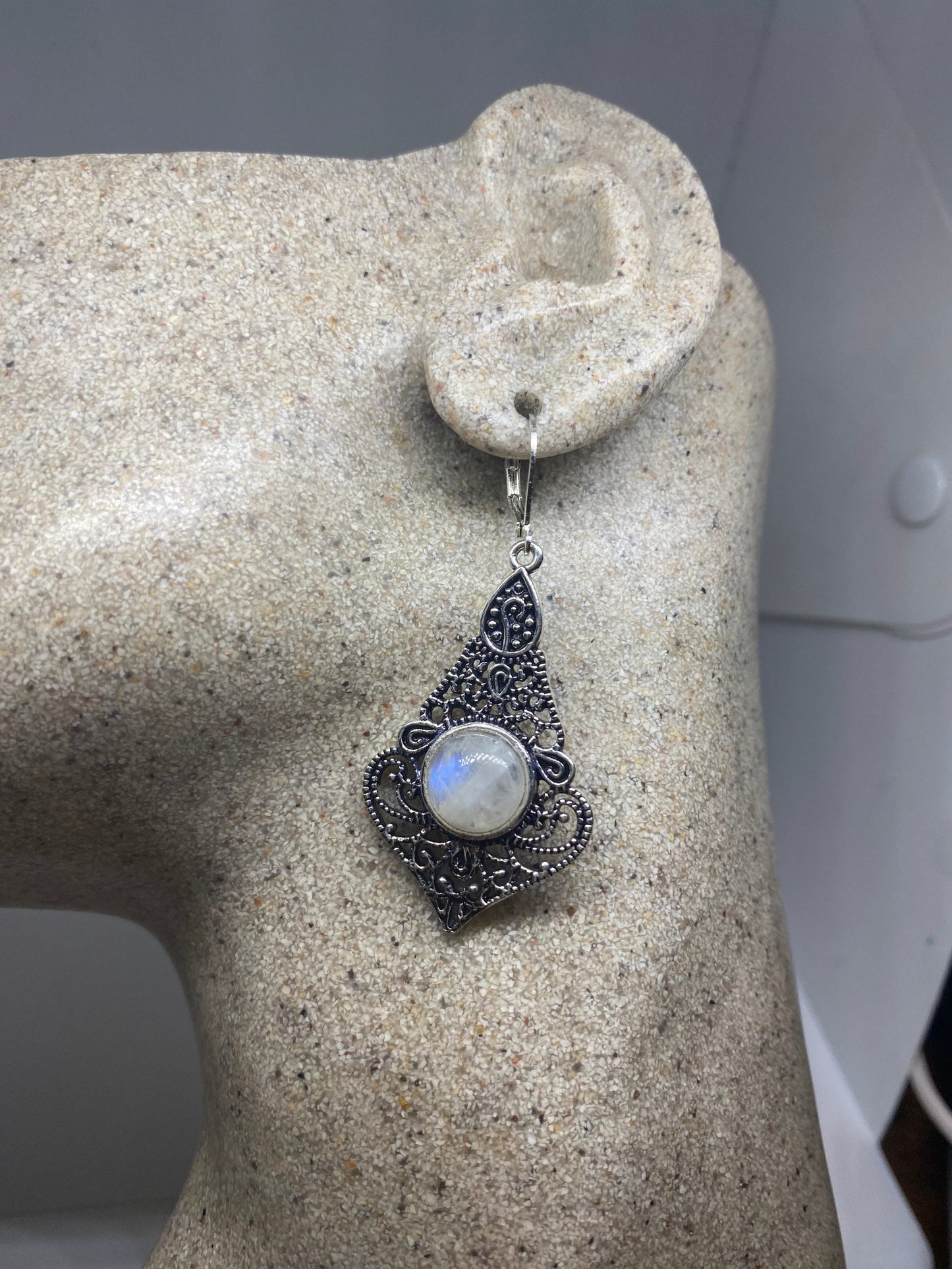 Vintage Rainbow Moonstone Sterling Silver Lever Back Dangle Earrings