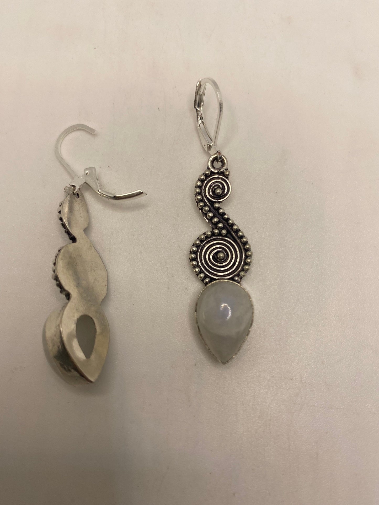 Vintage Rainbow Moonstone Sterling Silver Lever Back leaf Dangle Earrings