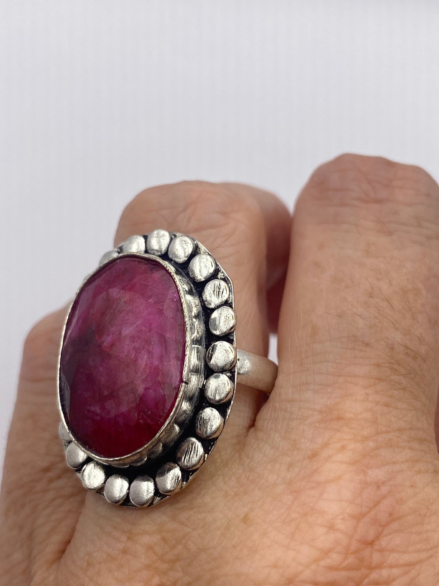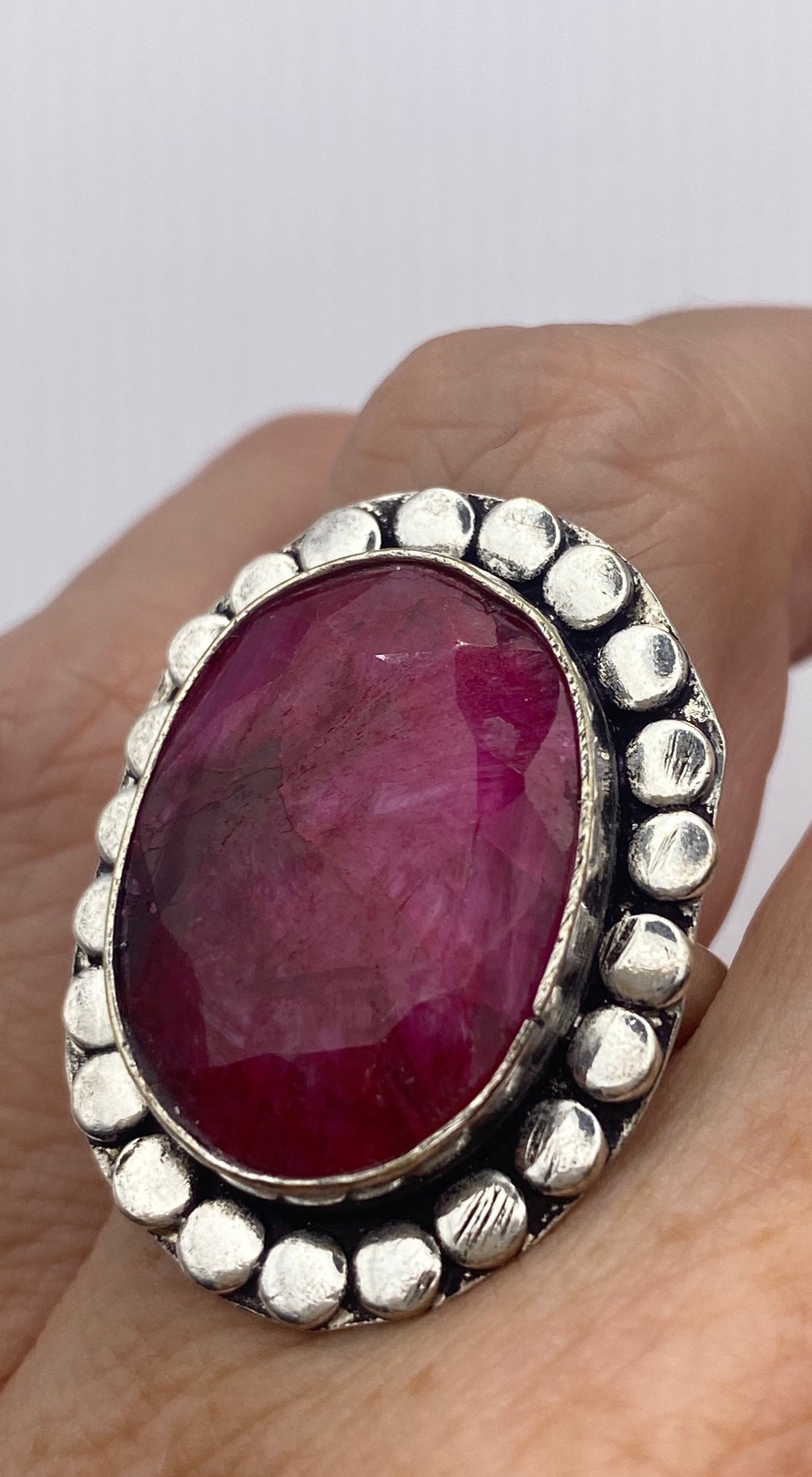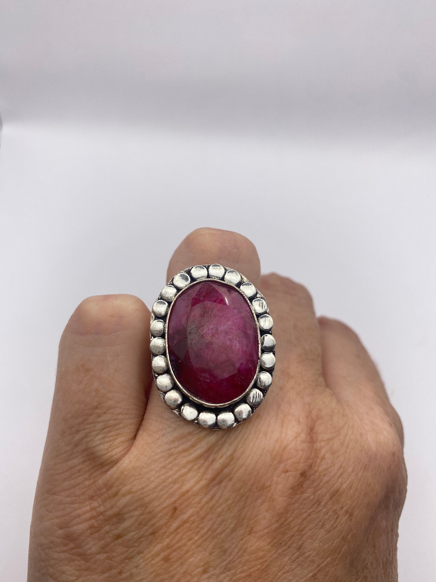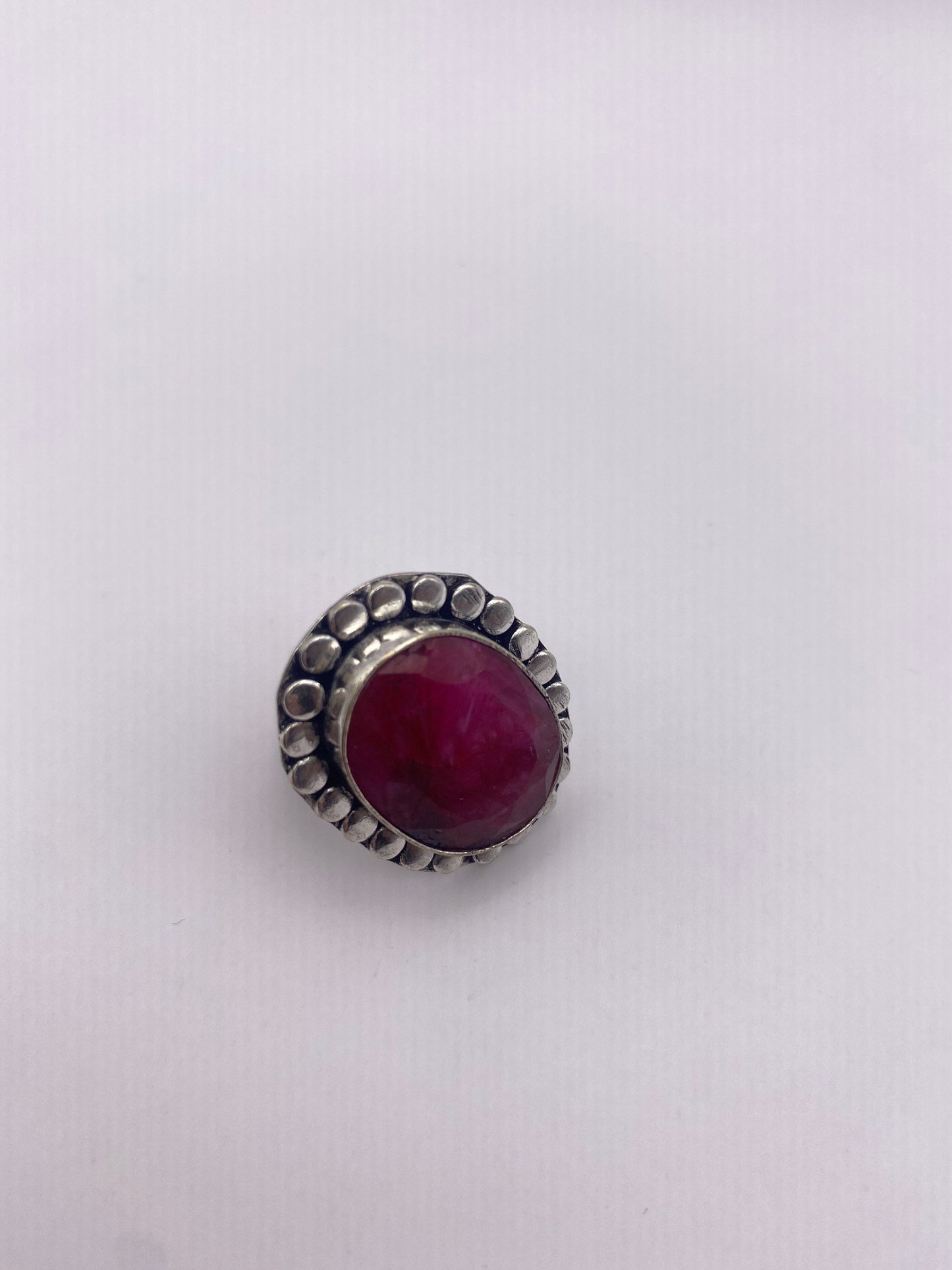 Vintage Raw Pink Ruby Deco Silver Cocktail Ring