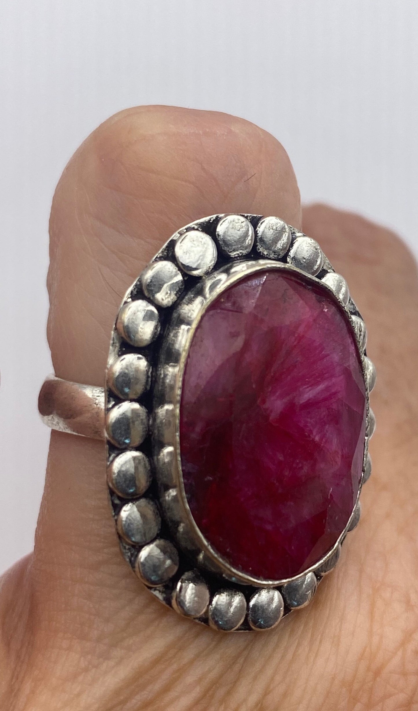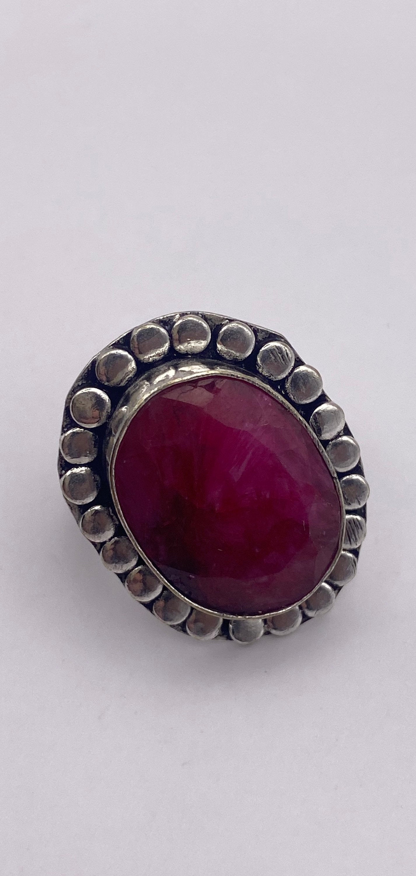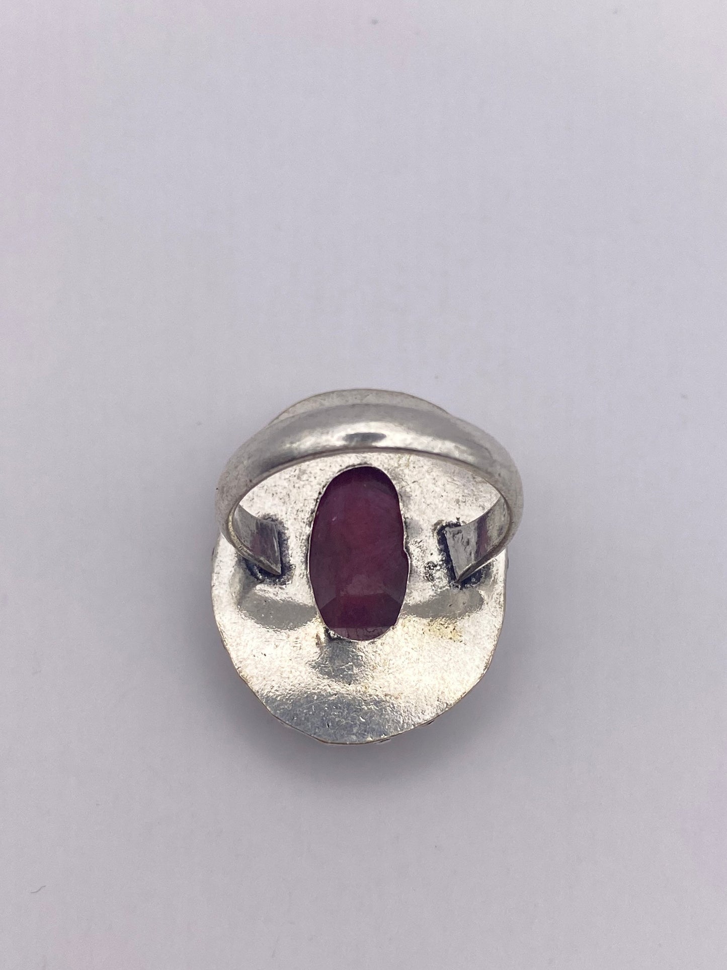 Unusual deep toned raw Ruby low content silver setting handmade