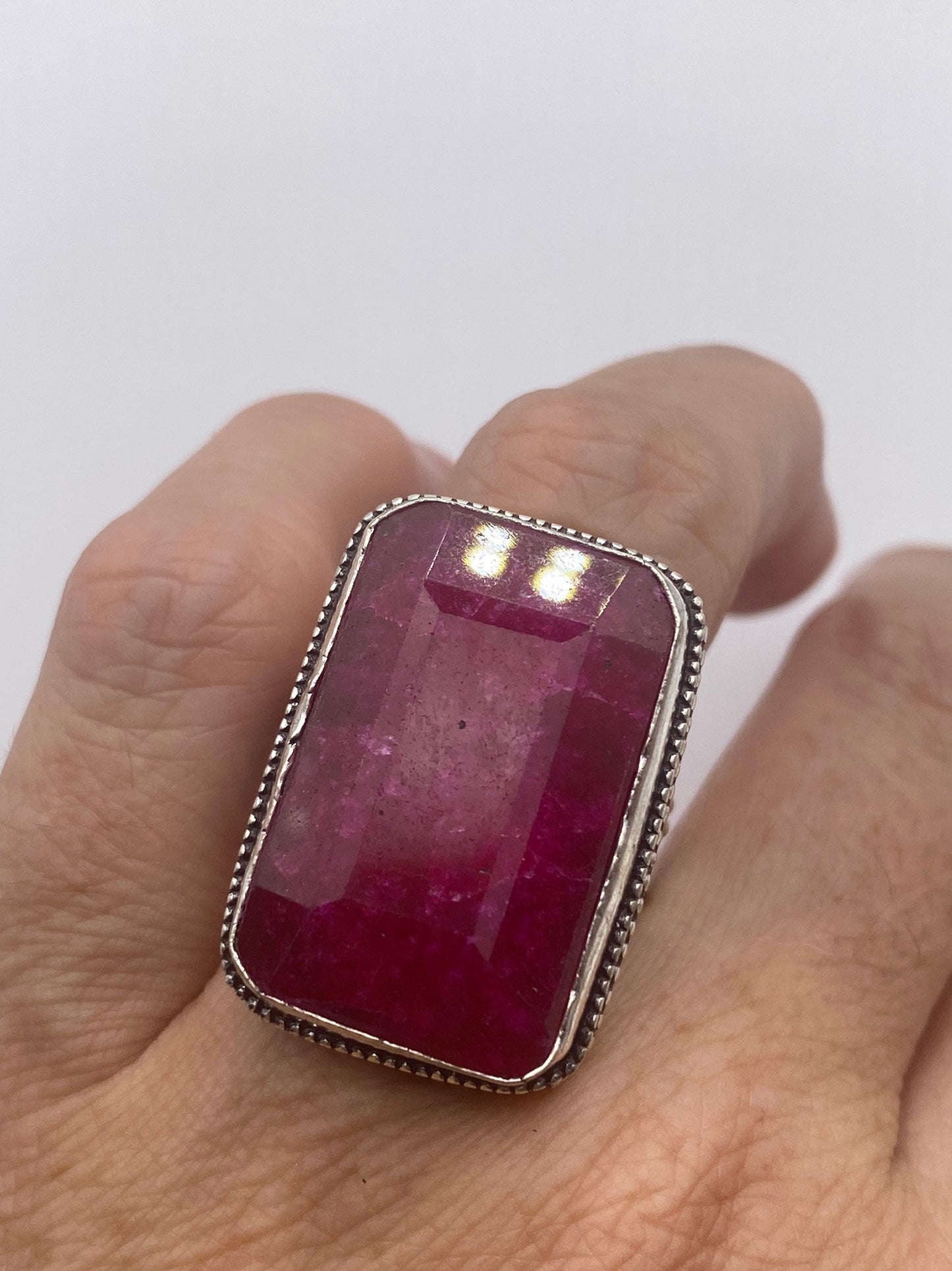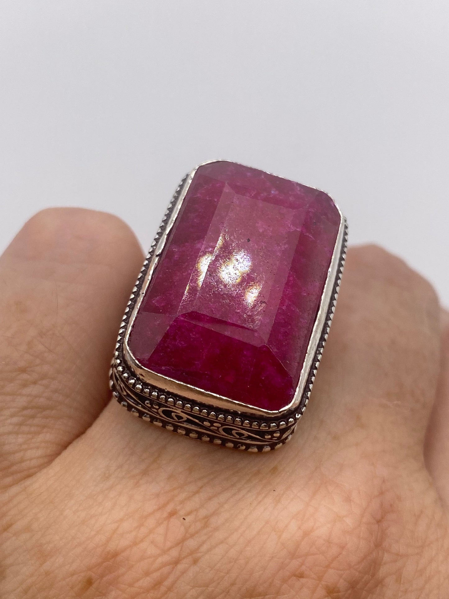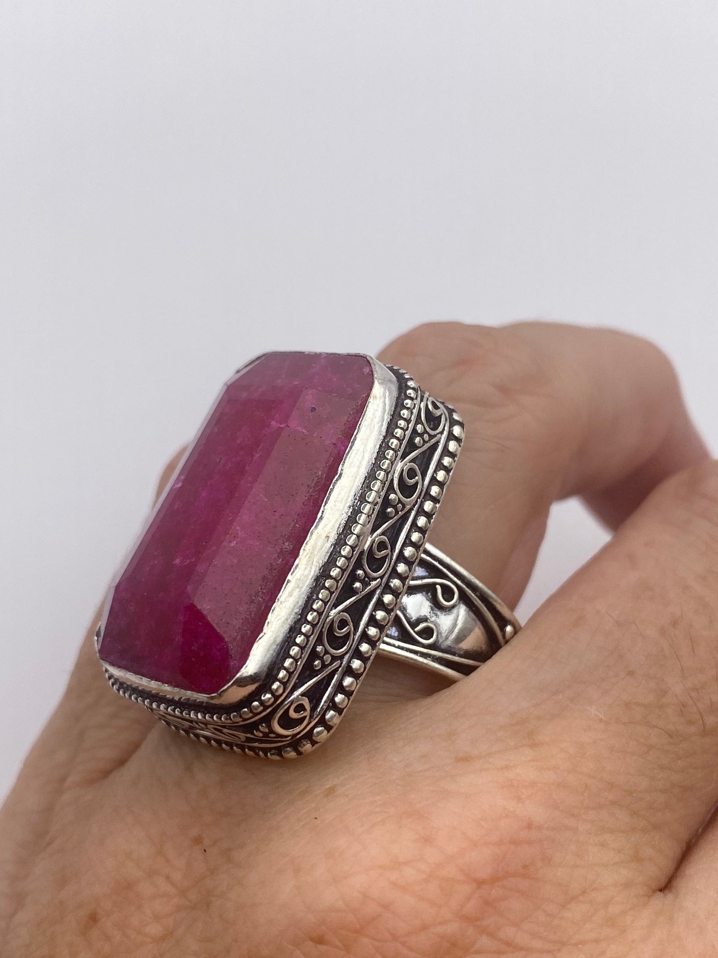 Vintage Raw Pink Ruby Deco Silver Cocktail Ring