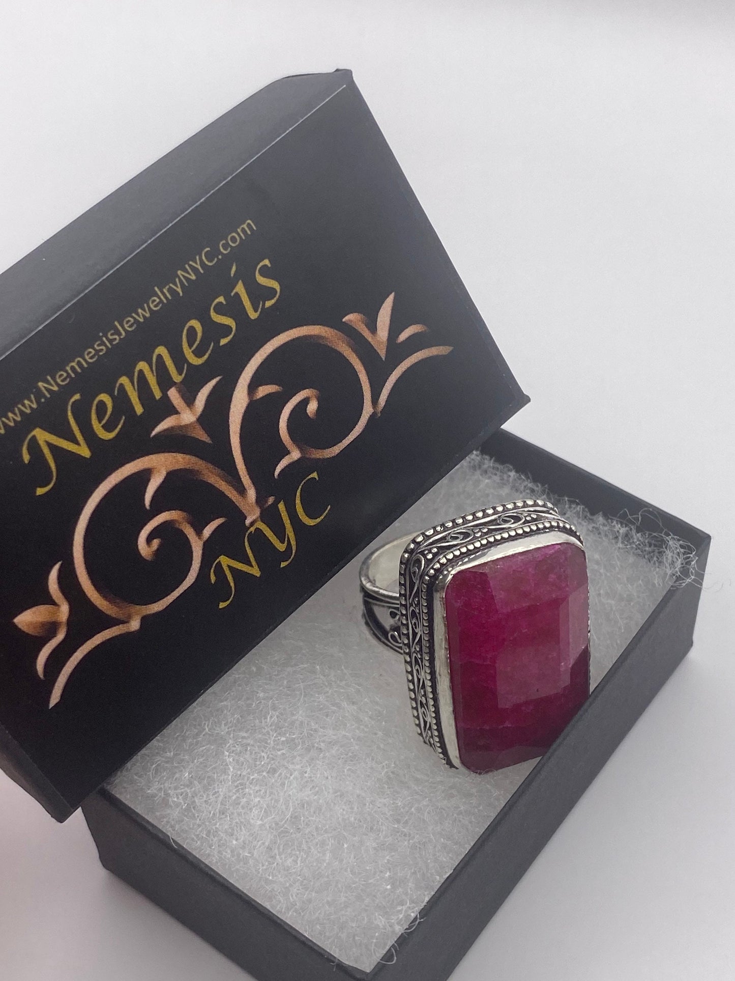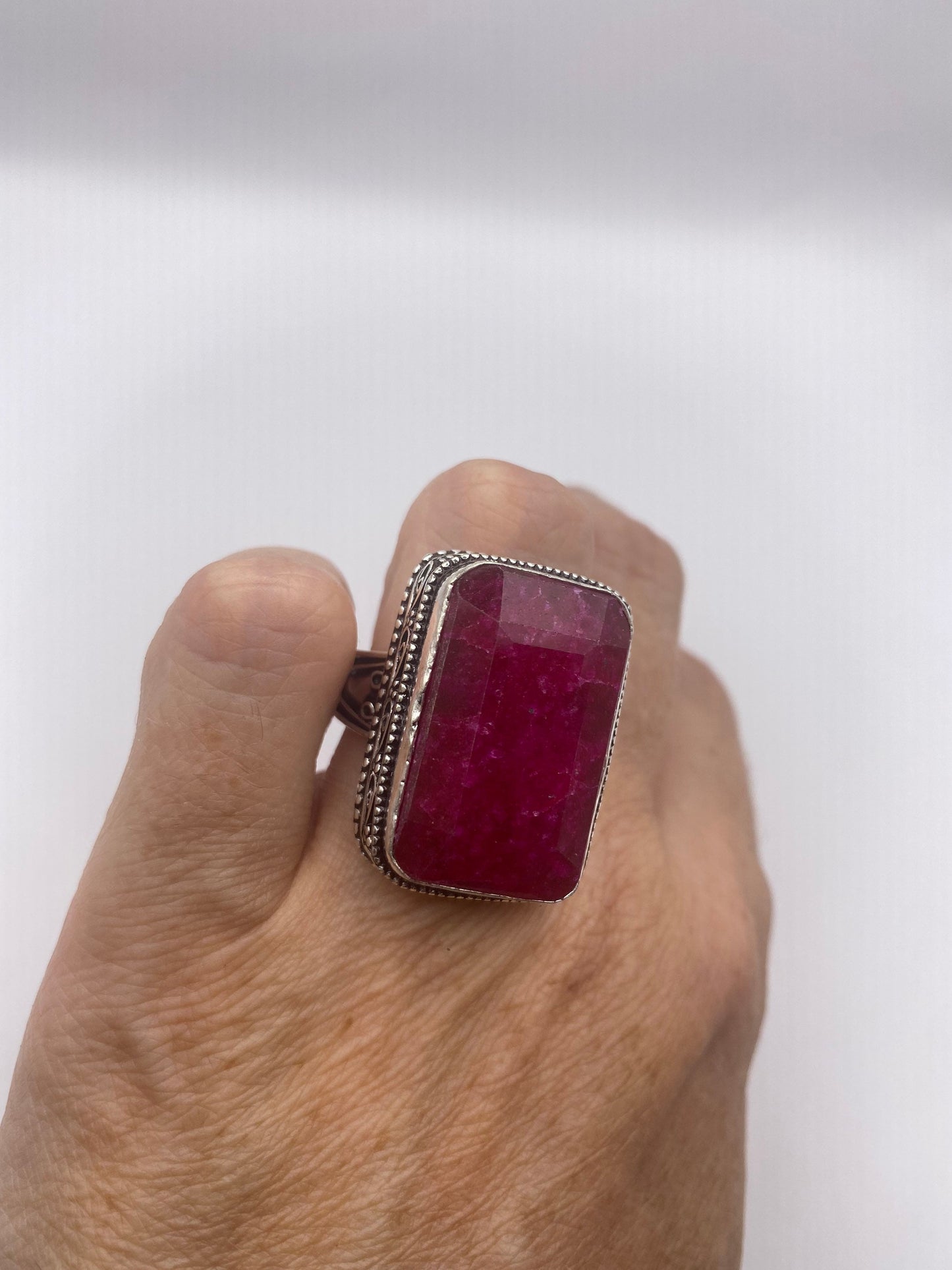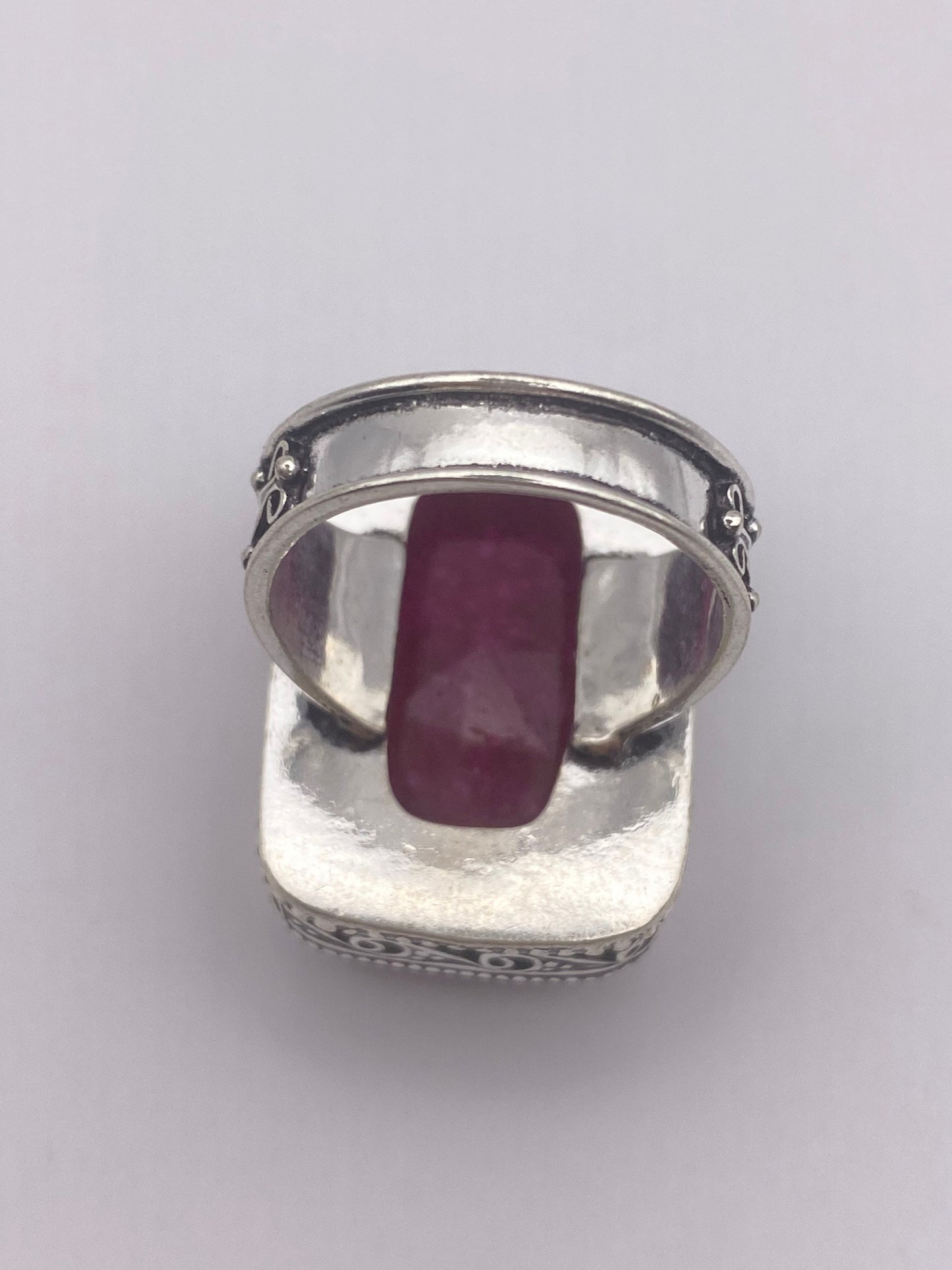 Vintage Raw Pink Ruby Deco Silver Cocktail Ring