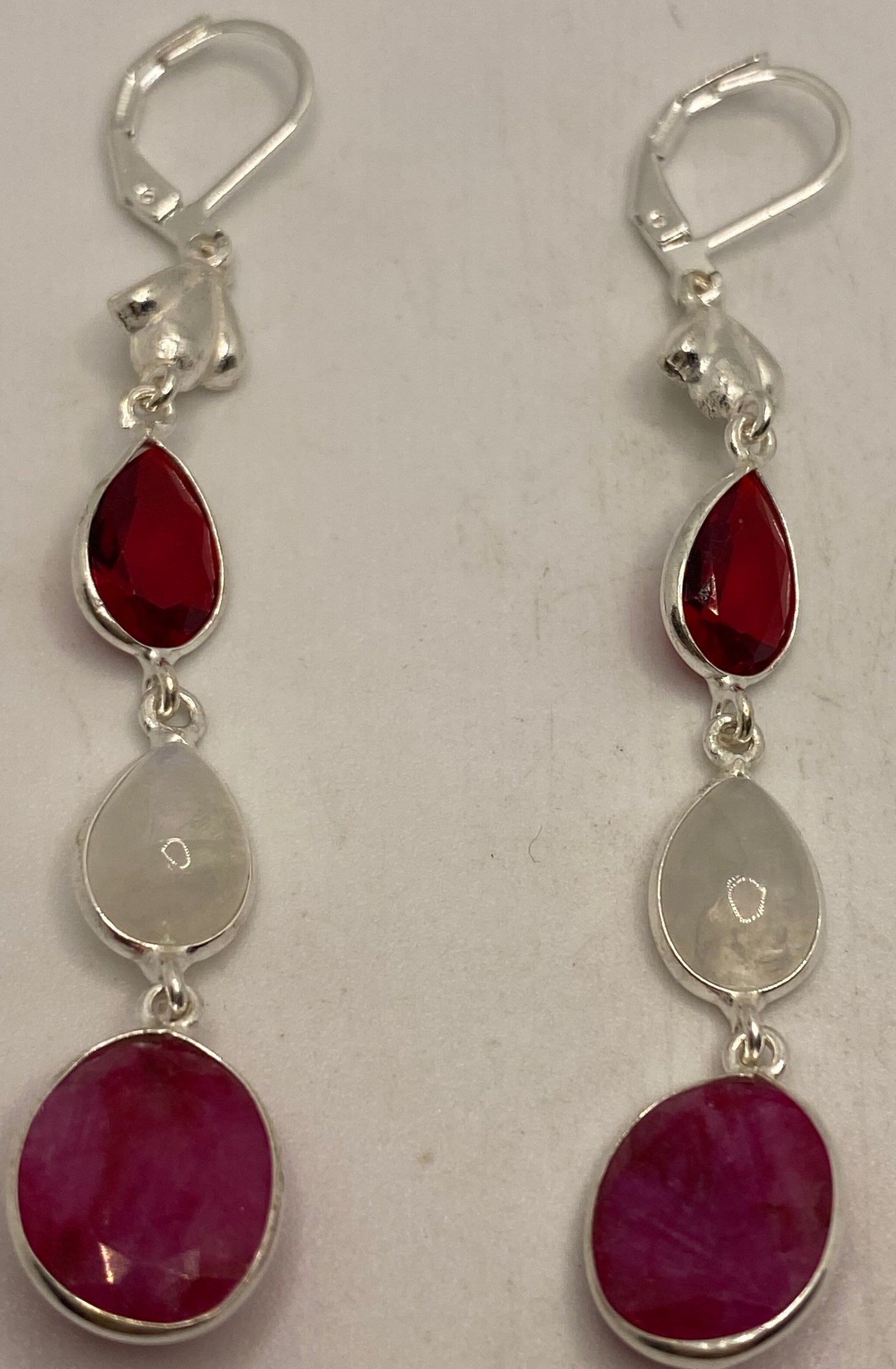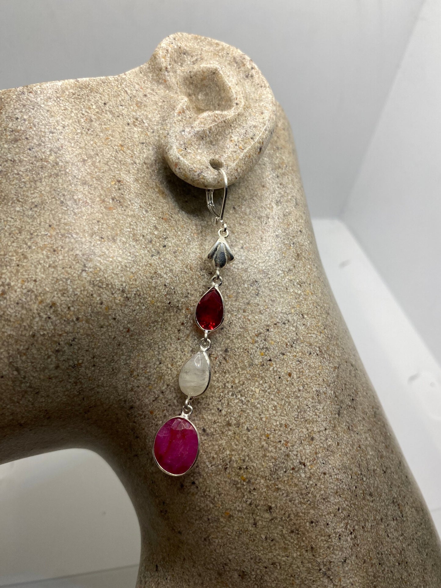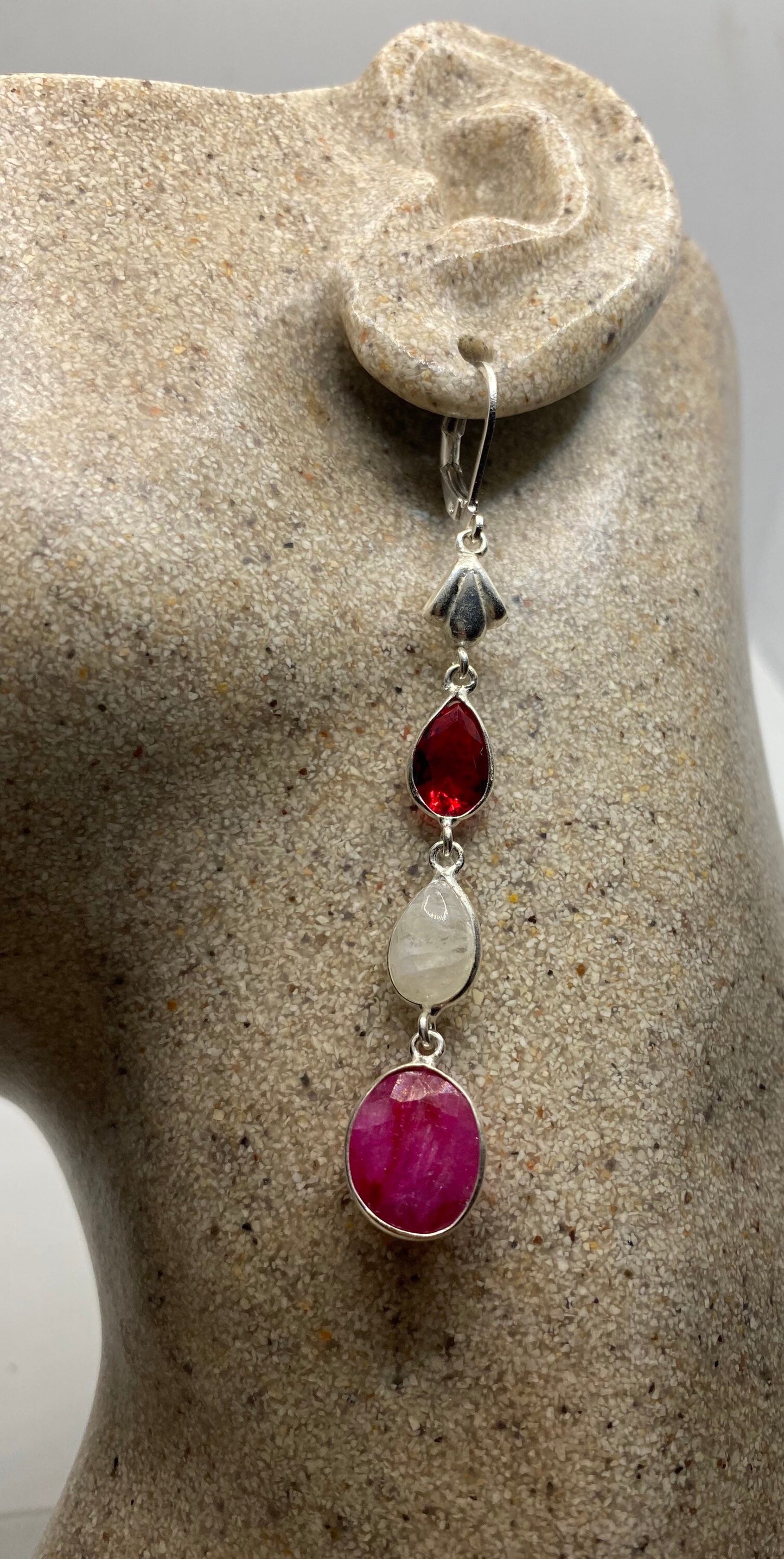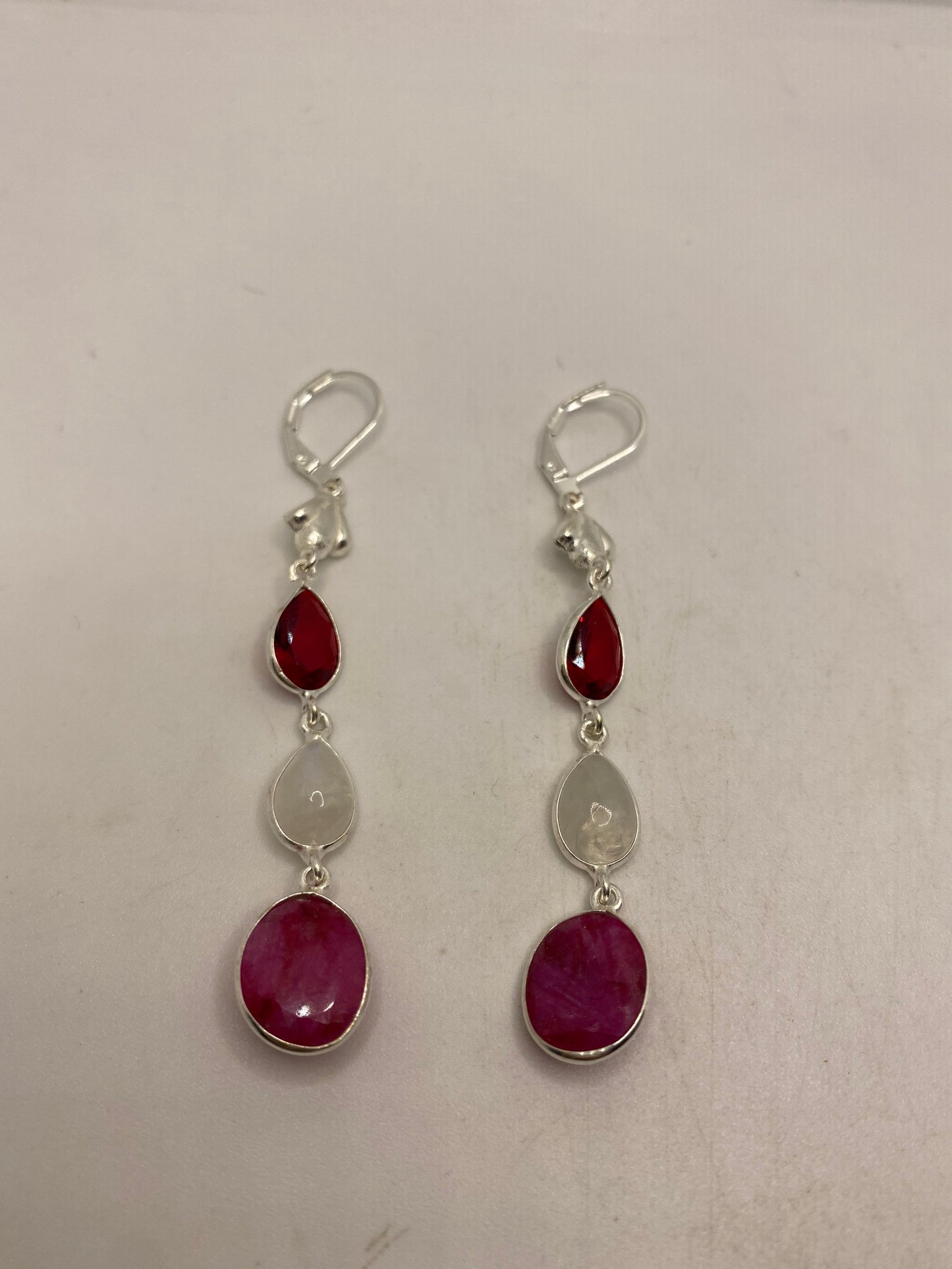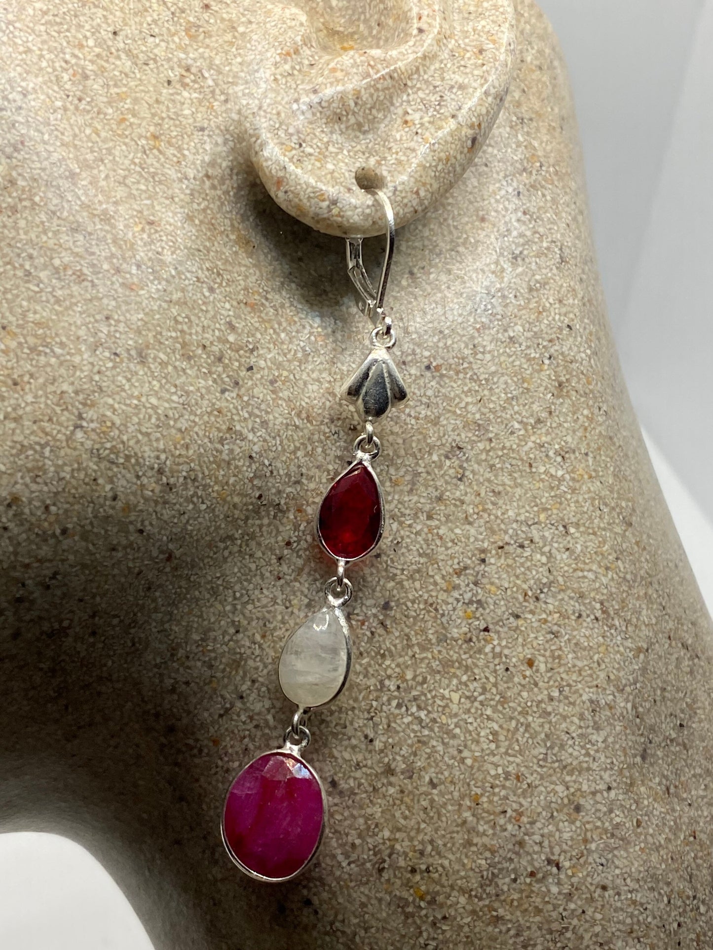 Vintage Raw Ruby LeverBack 925 Sterling Silver Earrings