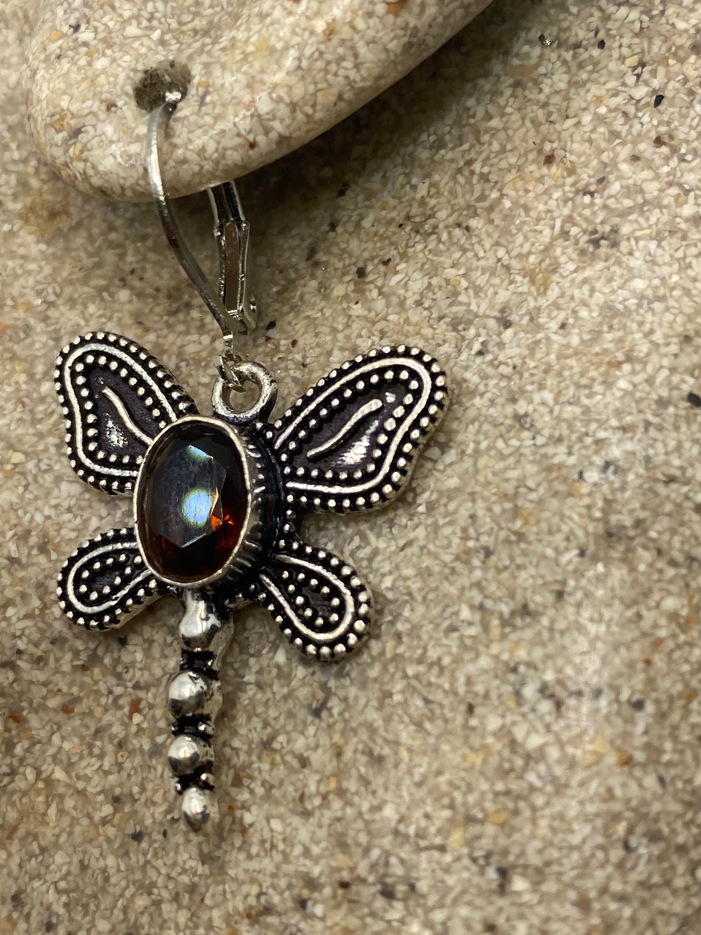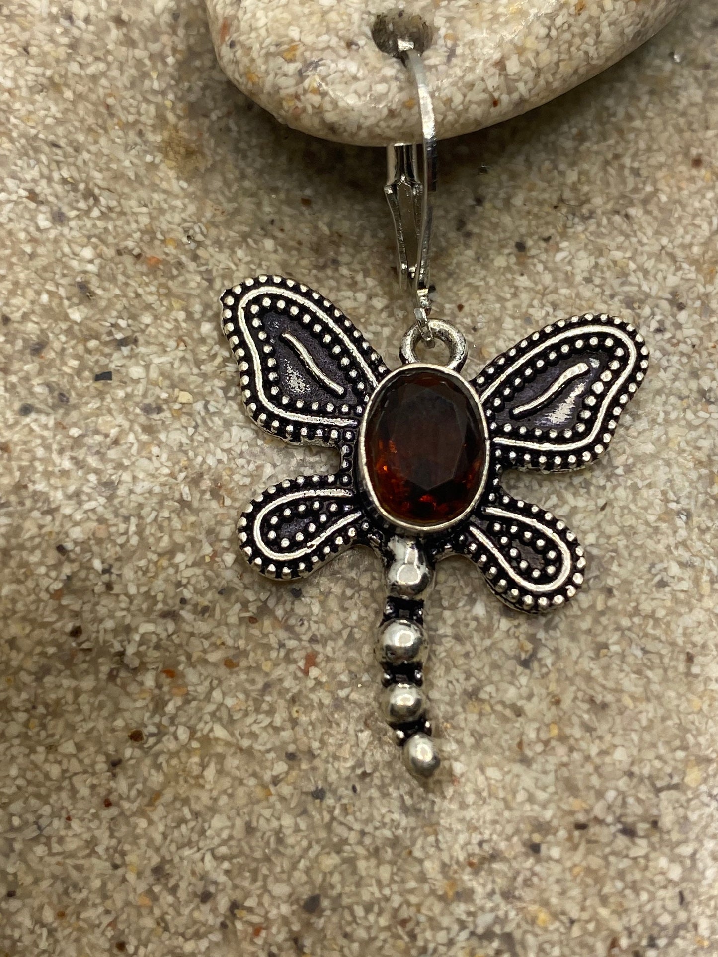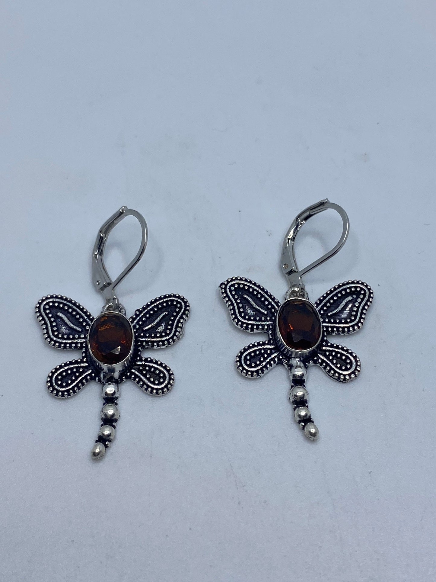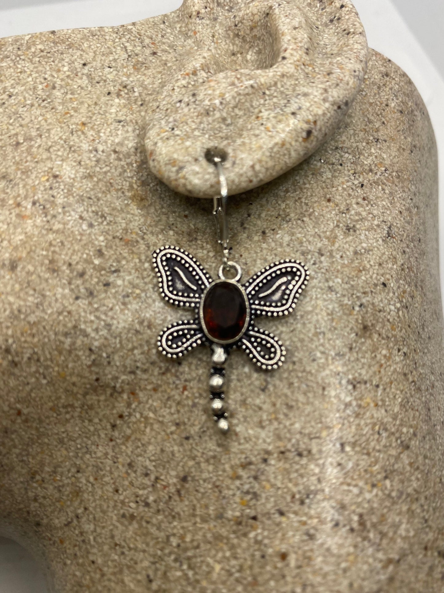 Vintage Red Garnet Earrings 925 Sterling Silver Leverback