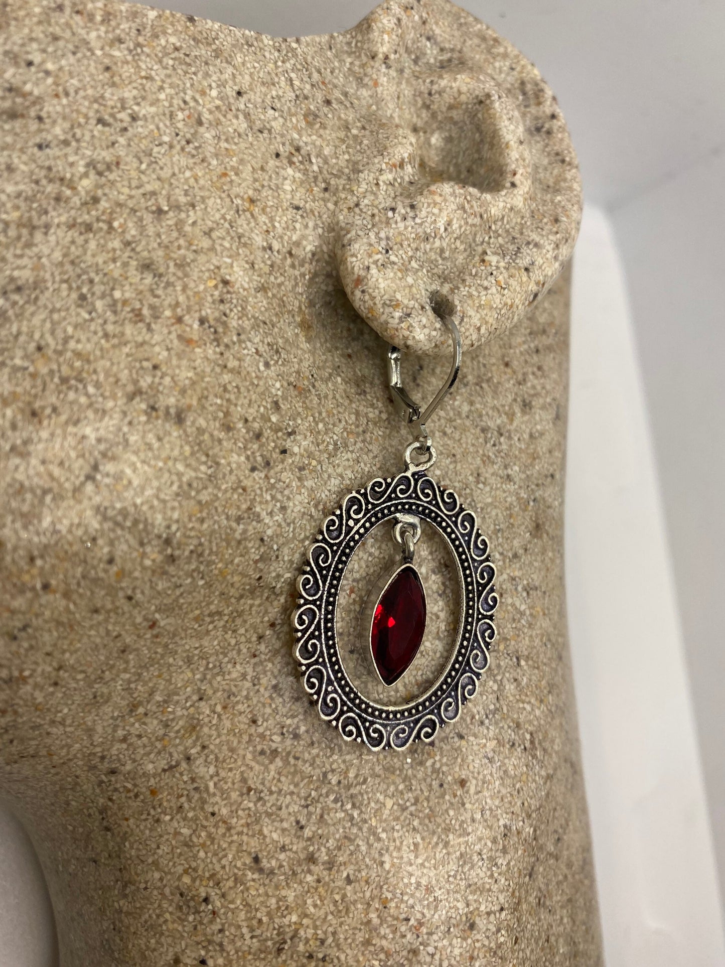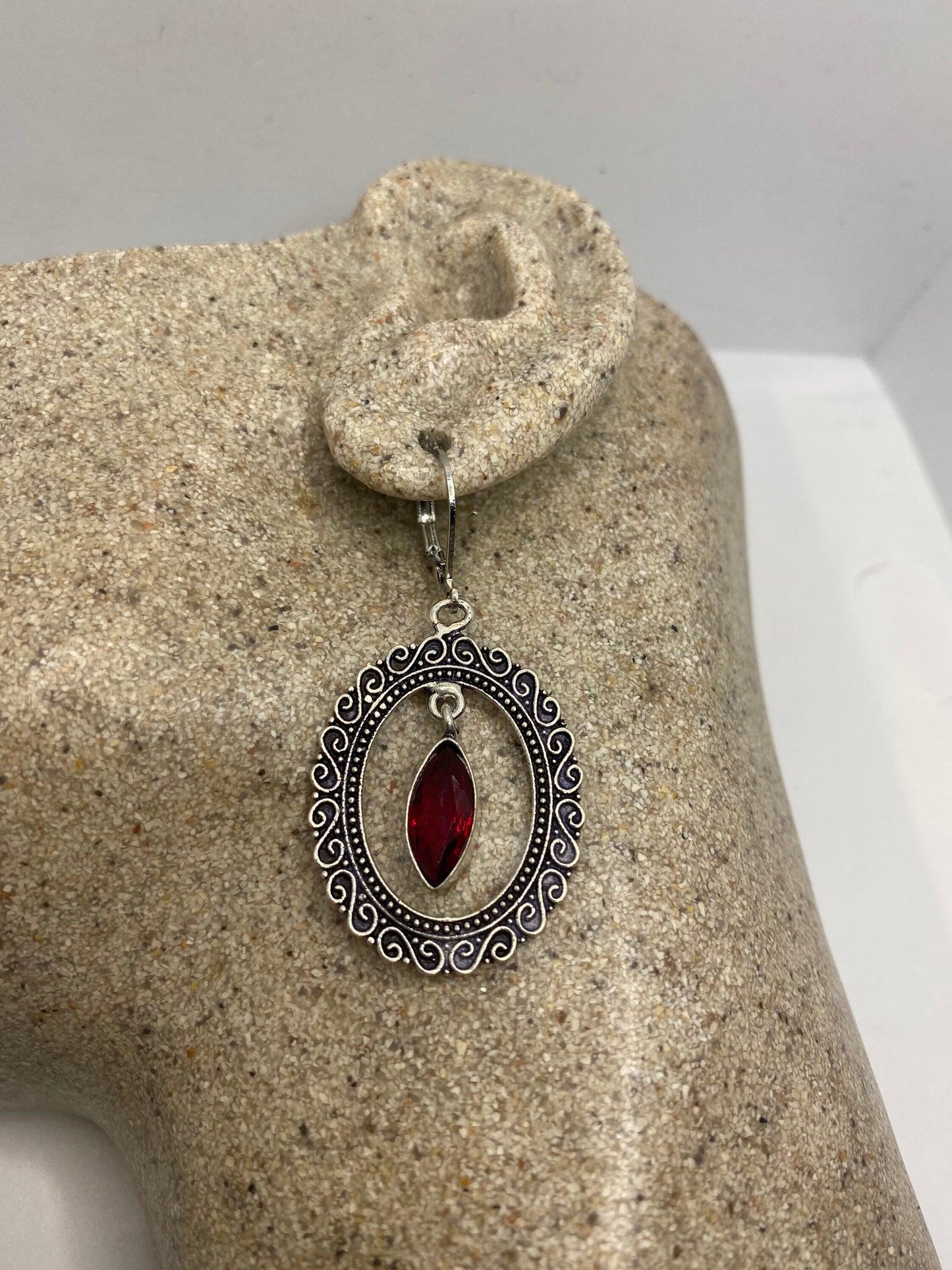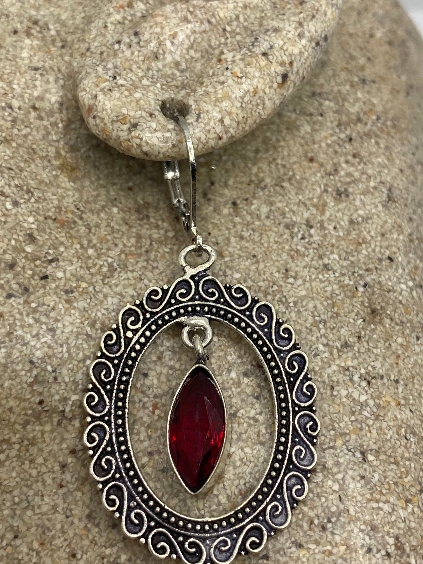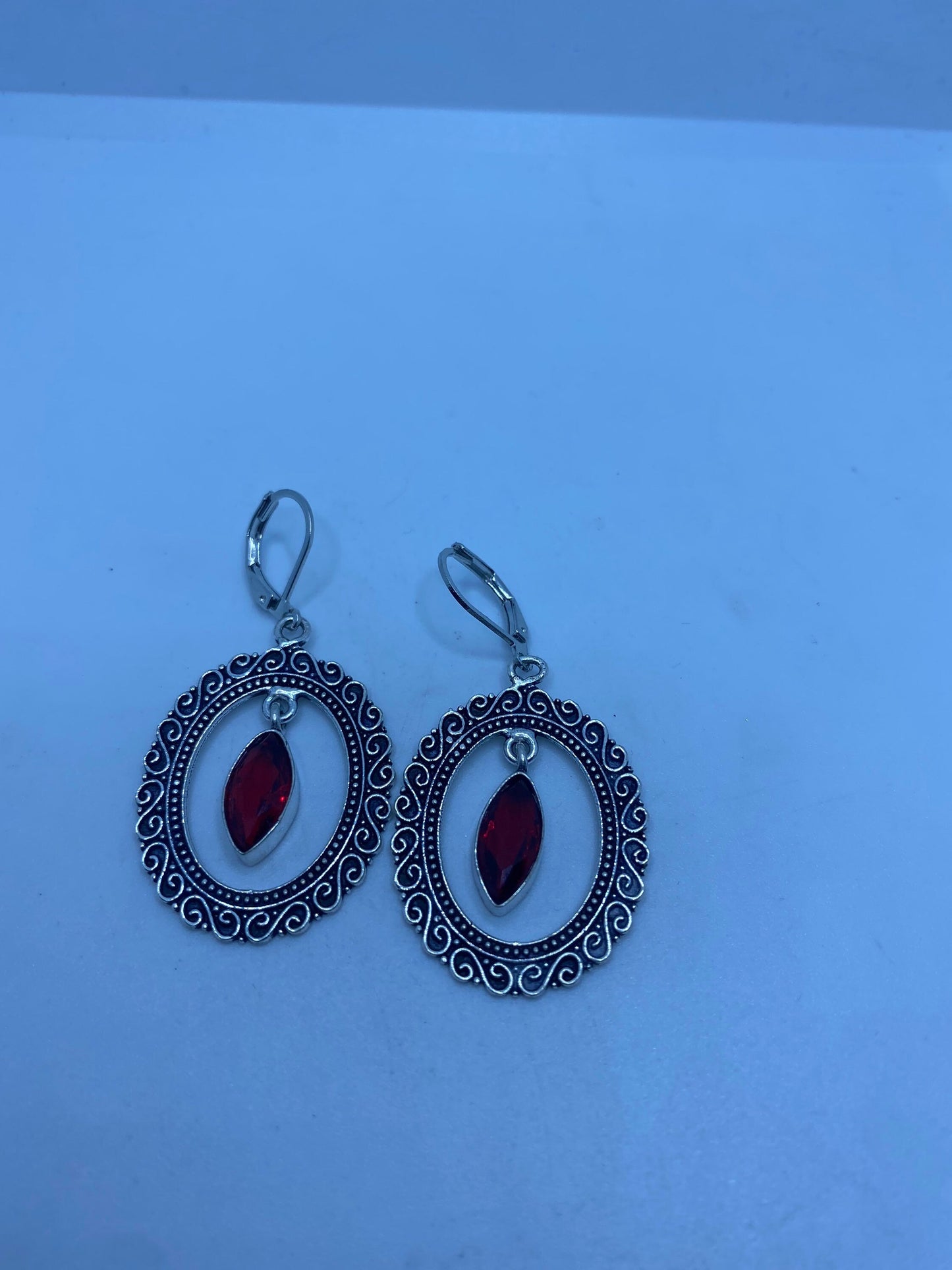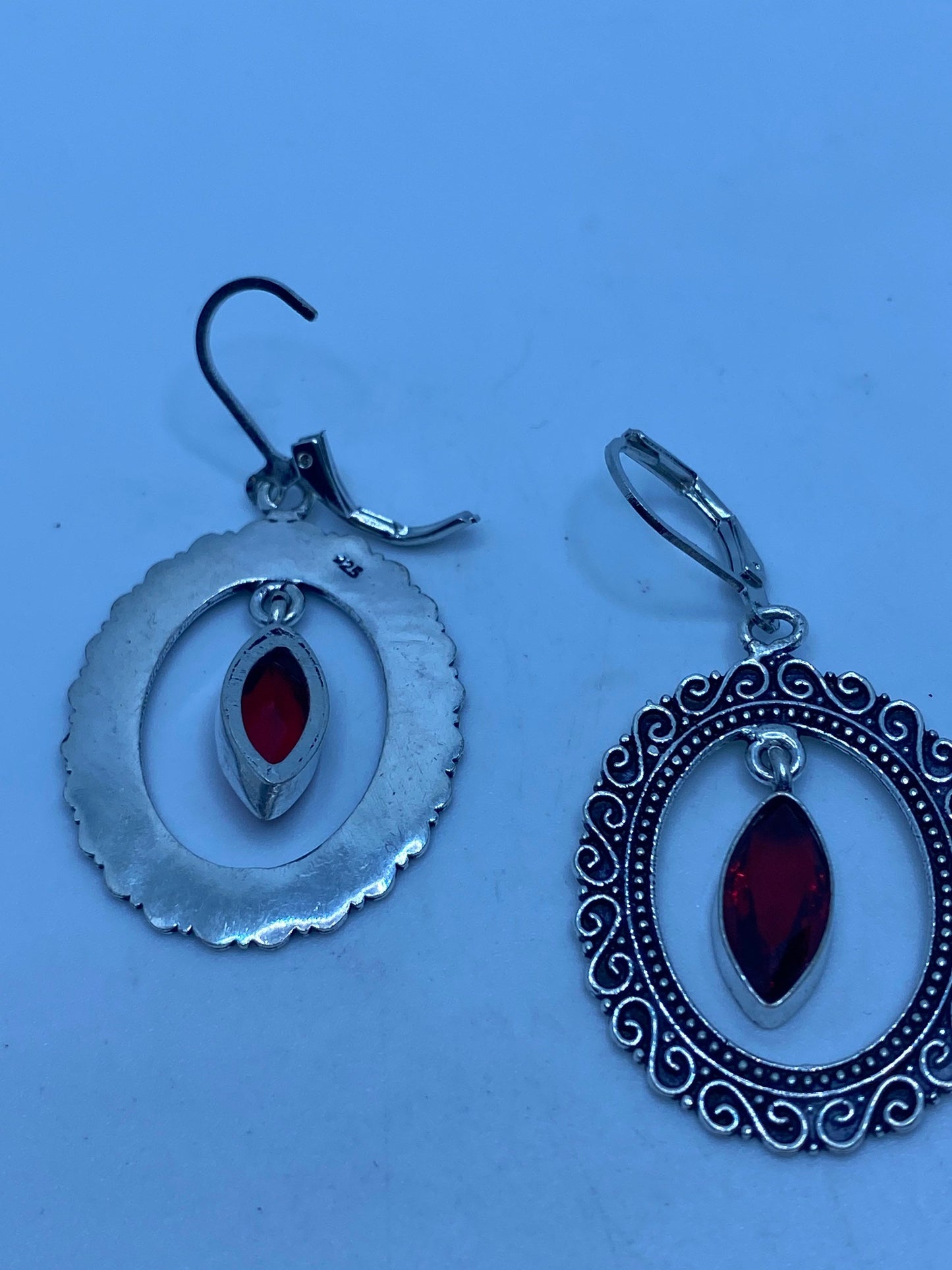 Vintage red ruby glass earrings 925 sterling silver leverback