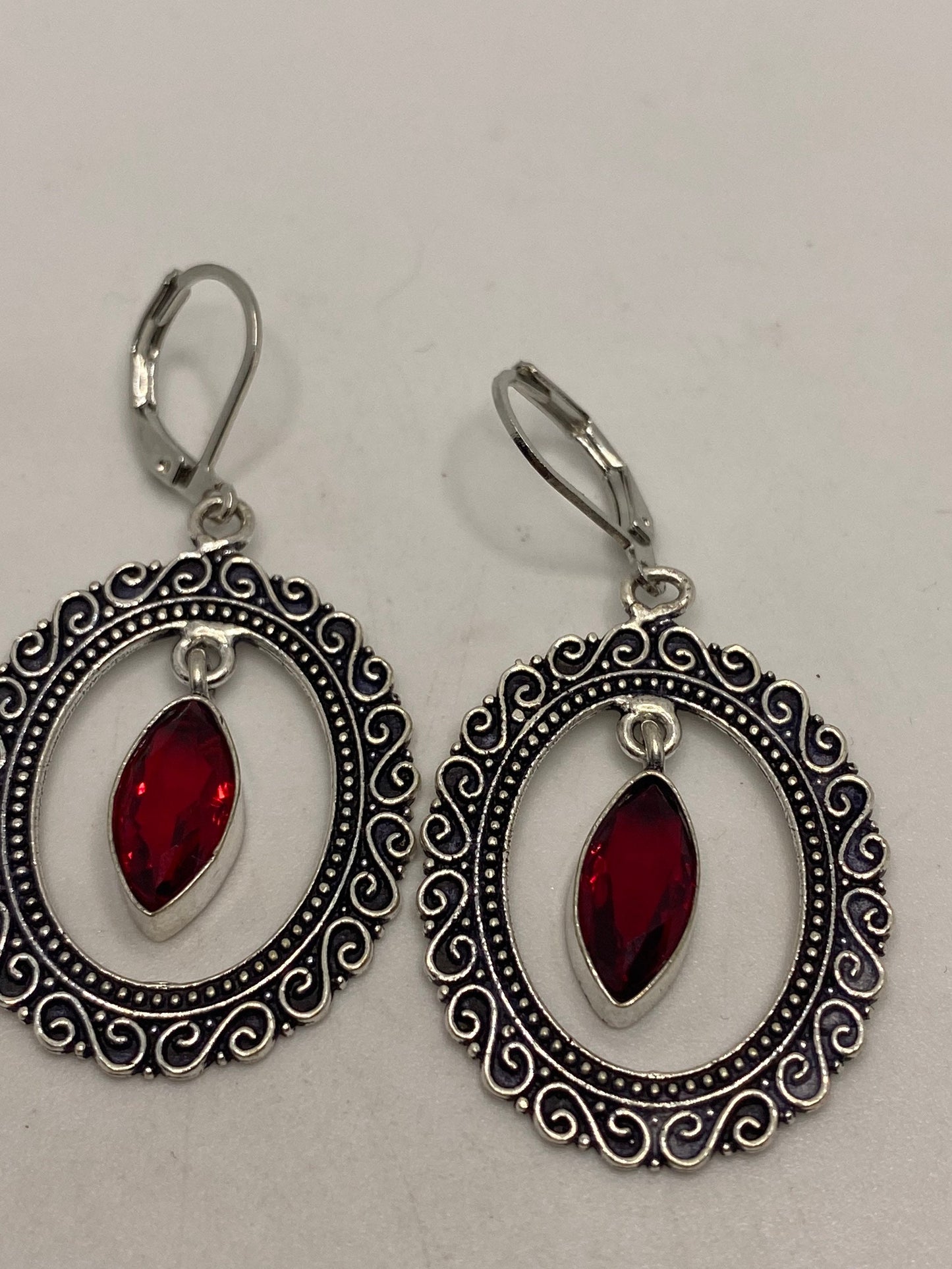 Vintage Red Ruby Glass Earrings 925 Sterling Silver Leverback