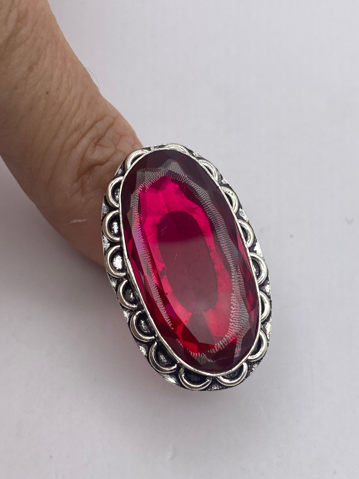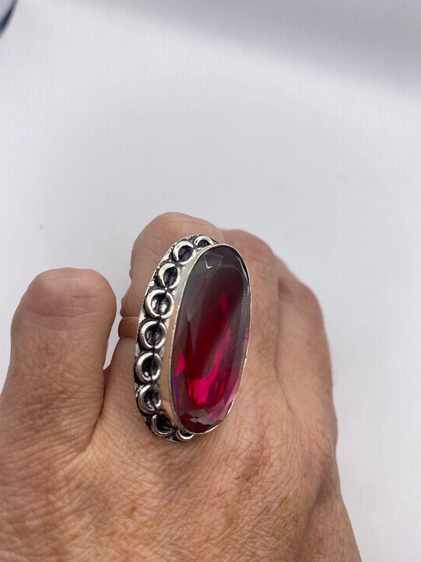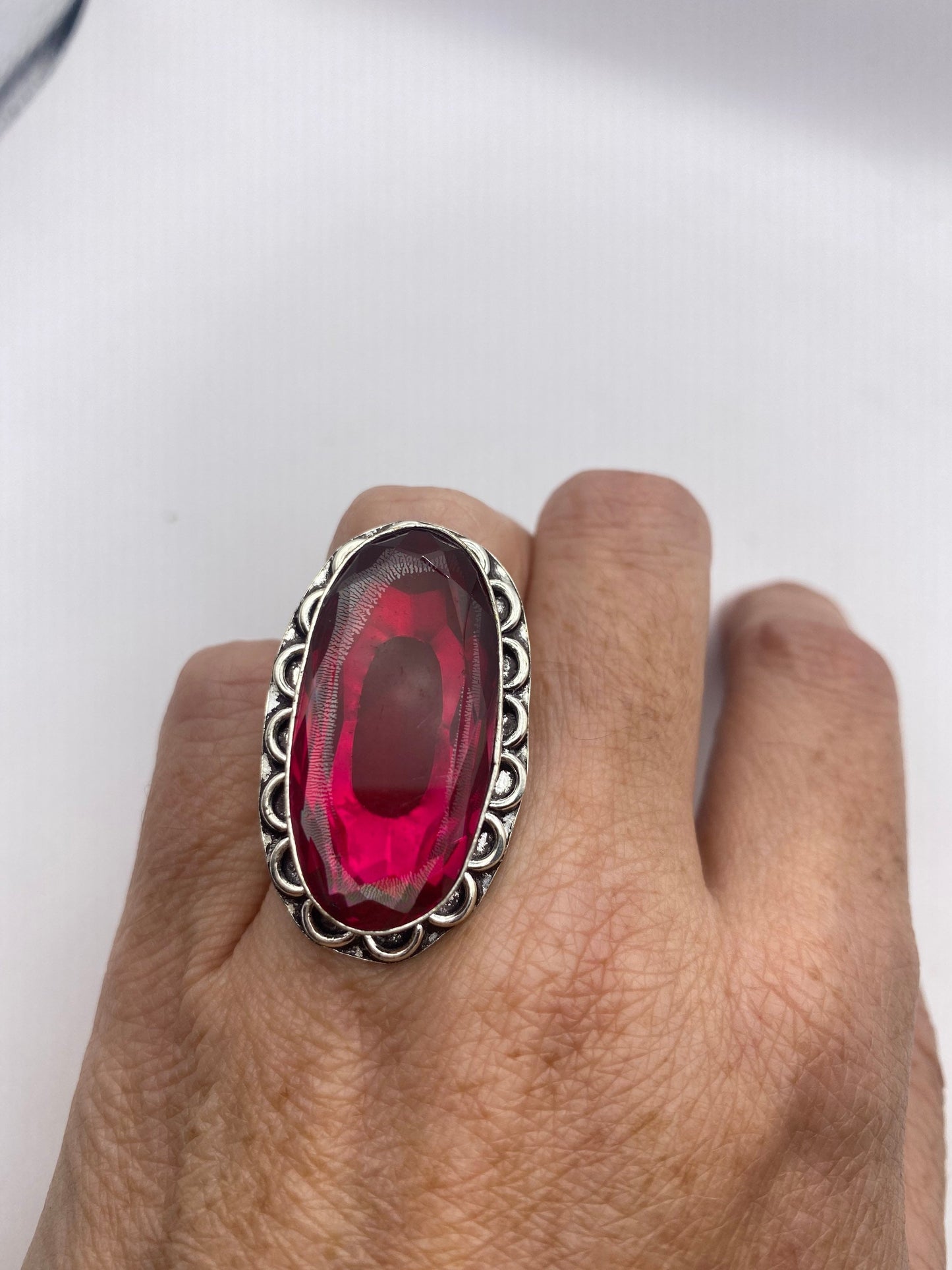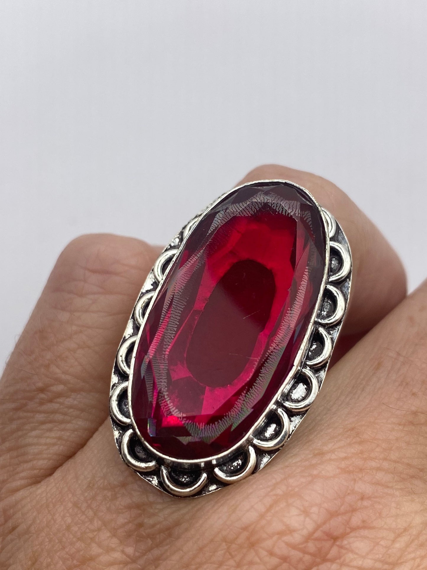 Vintage Red Ruby Glass Ring Antique Art Glass Statement Cocktail