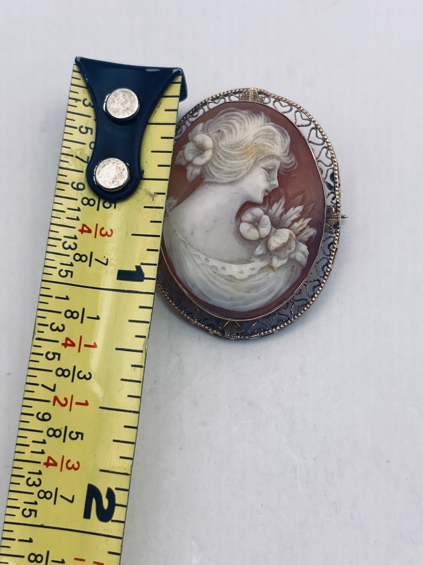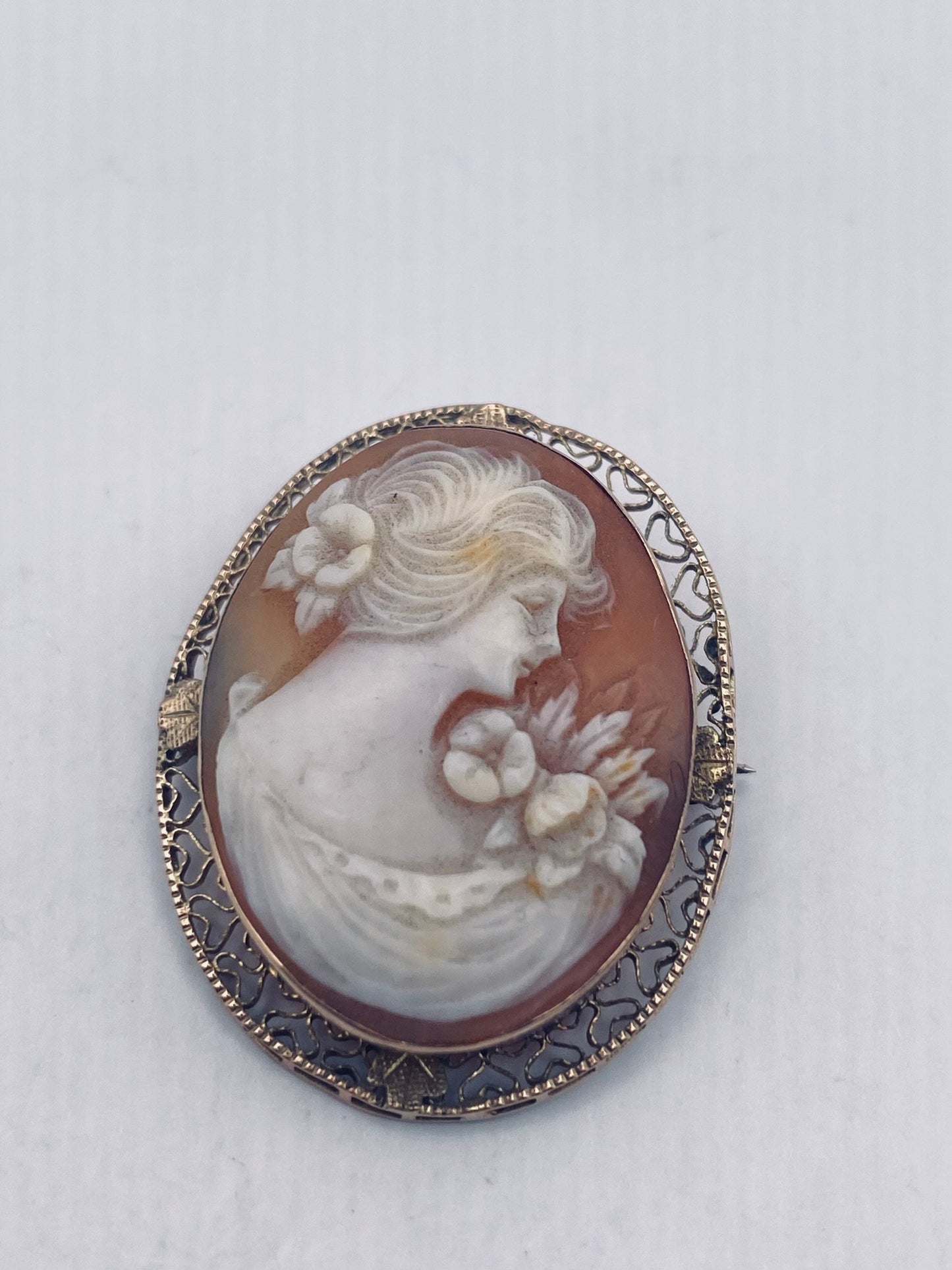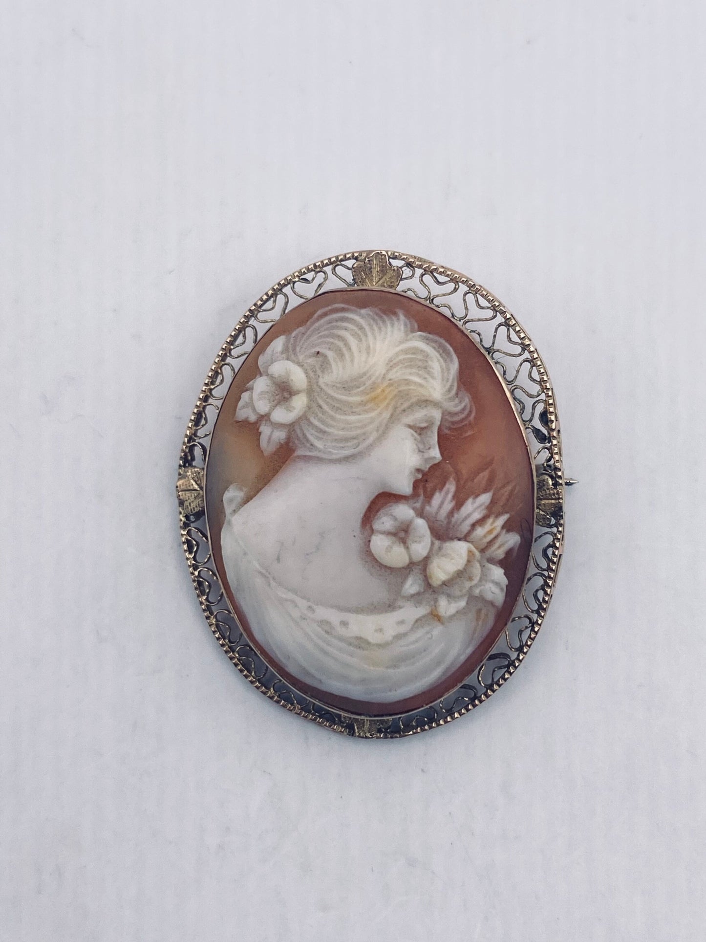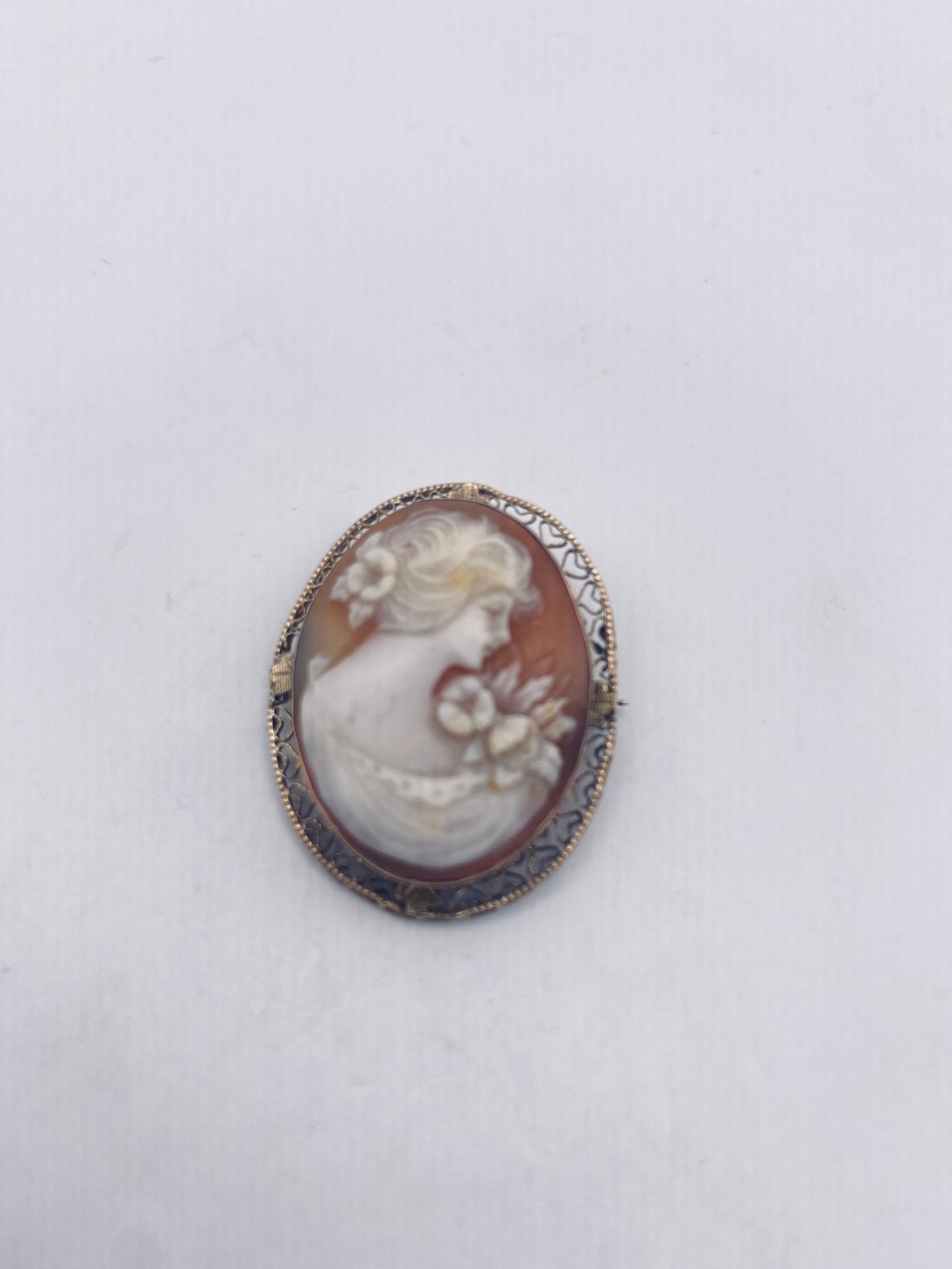 Vintage Shell Cameo Yellow 14k Gold Pin Brooch