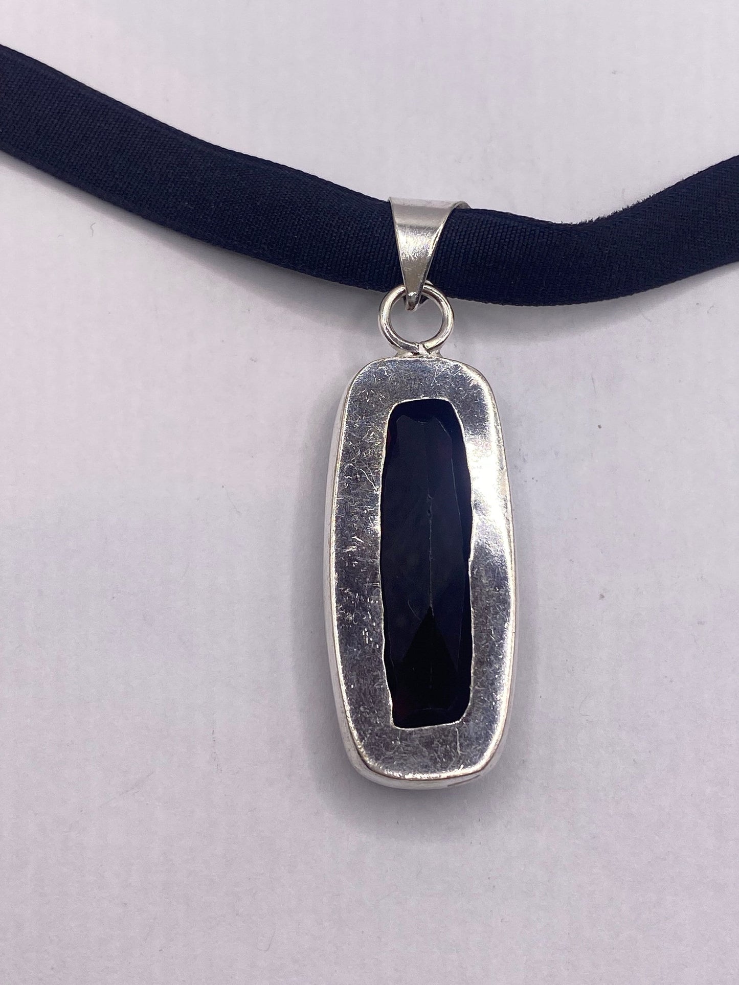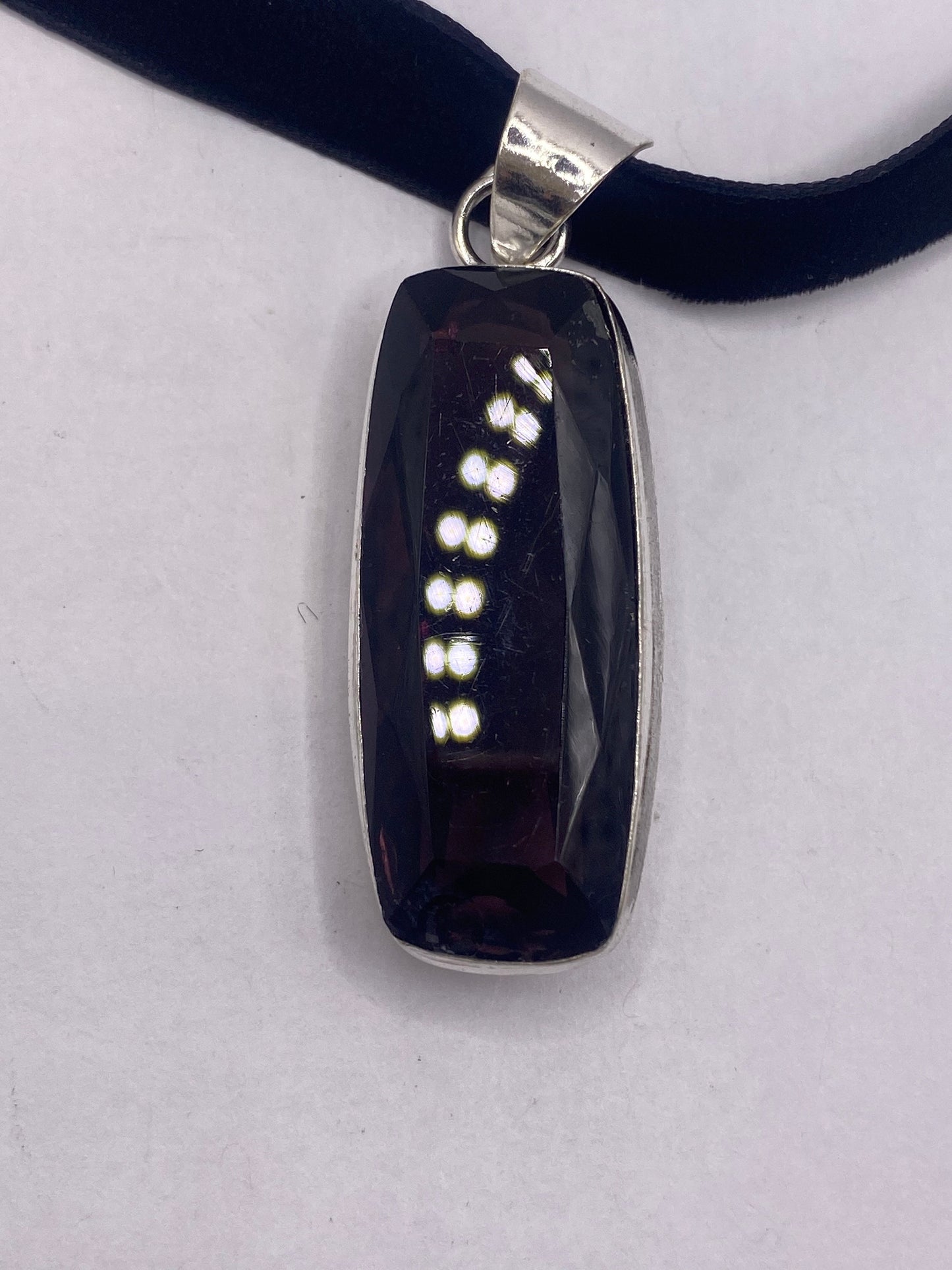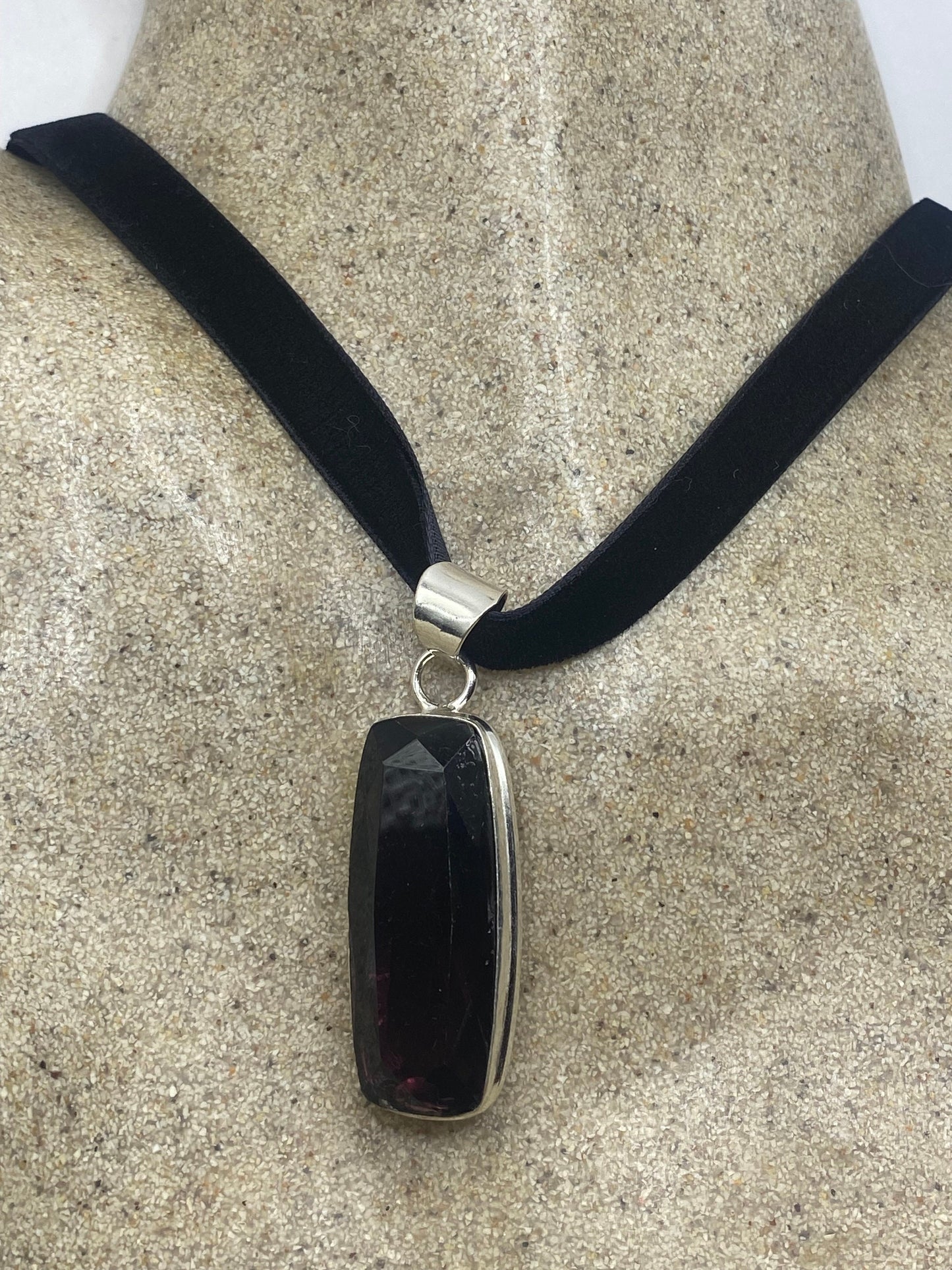 Vintage Silver Finished Genuine Facetted Antique Volcanic Glass Choker Necklace