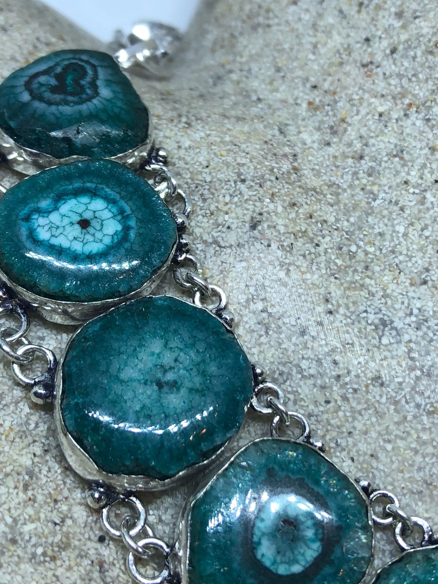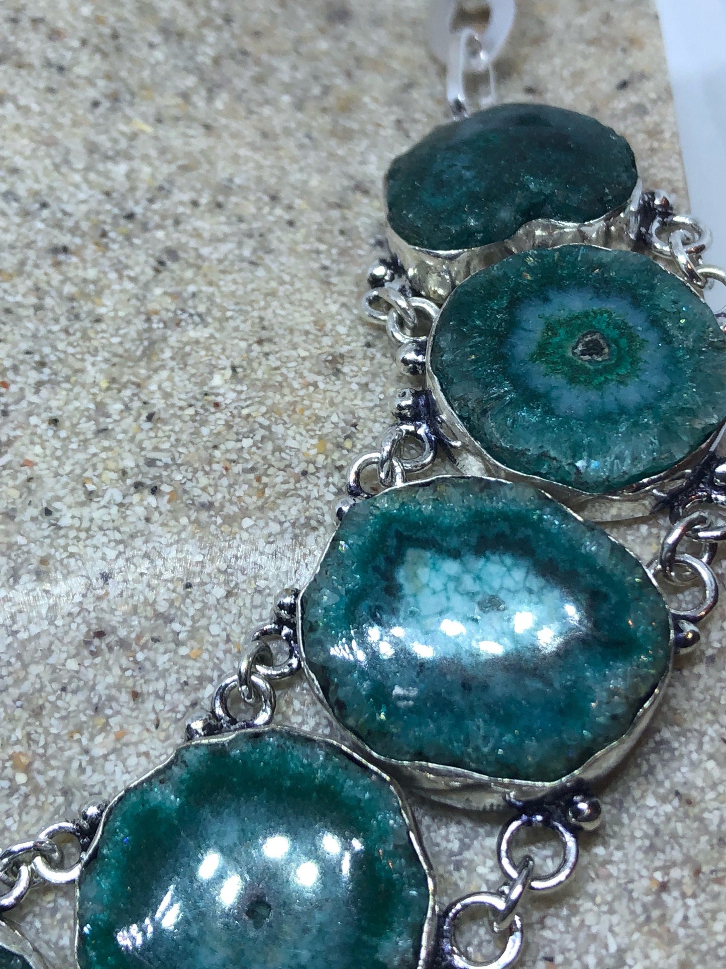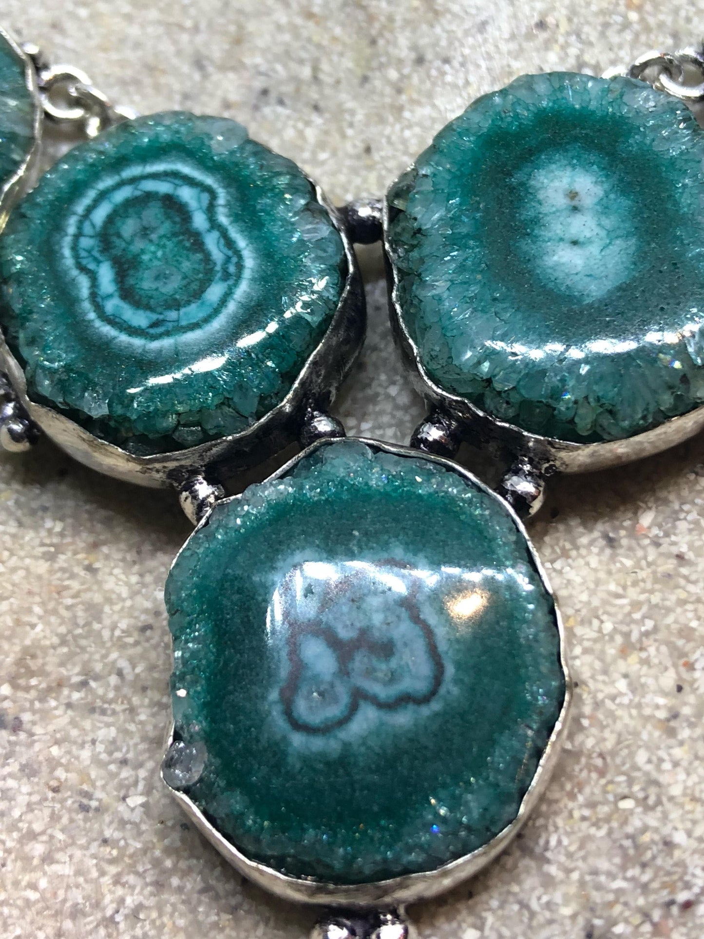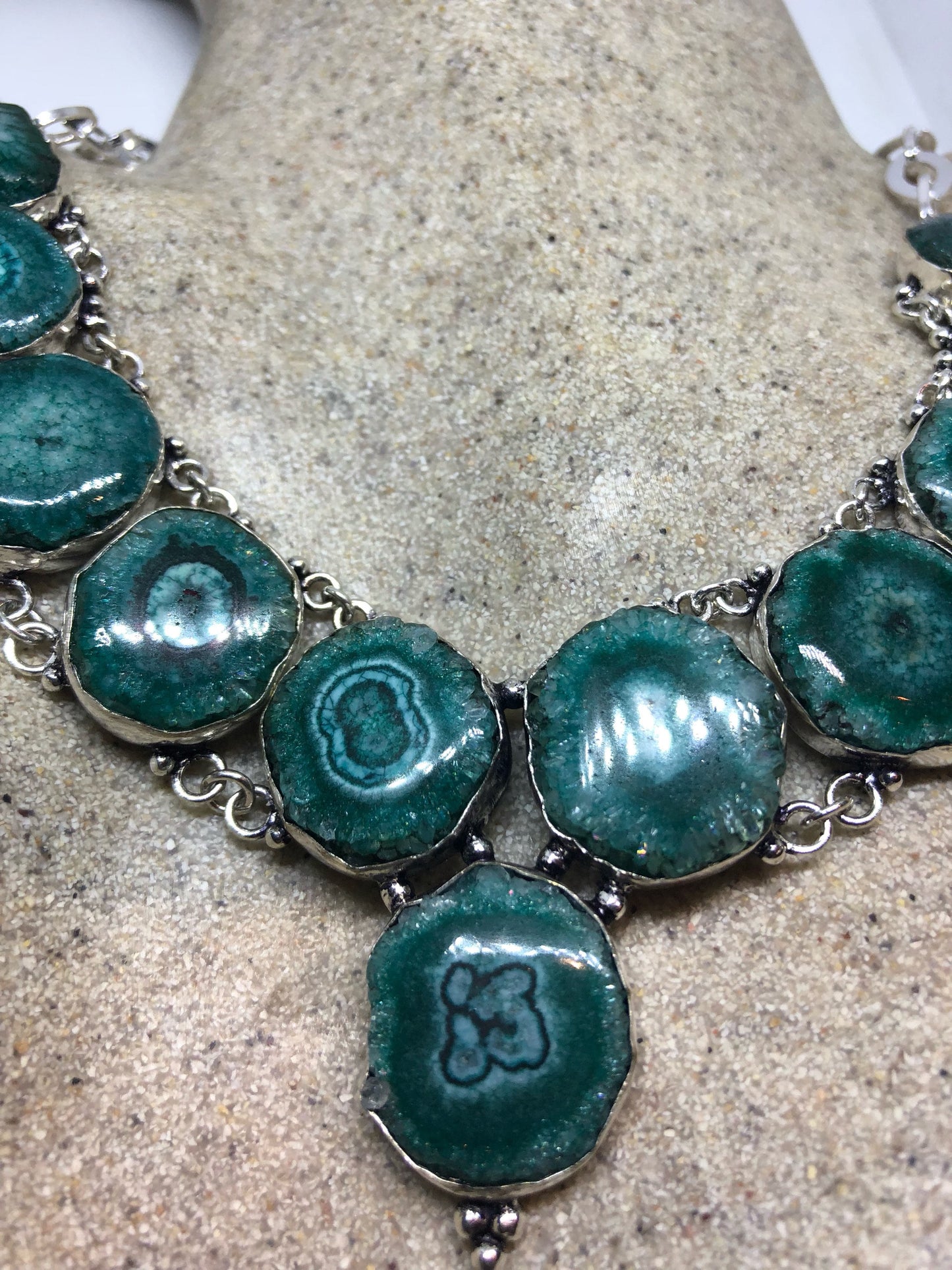 Vintage Silver Genuine Green Agate Gemstone Geode Necklace.