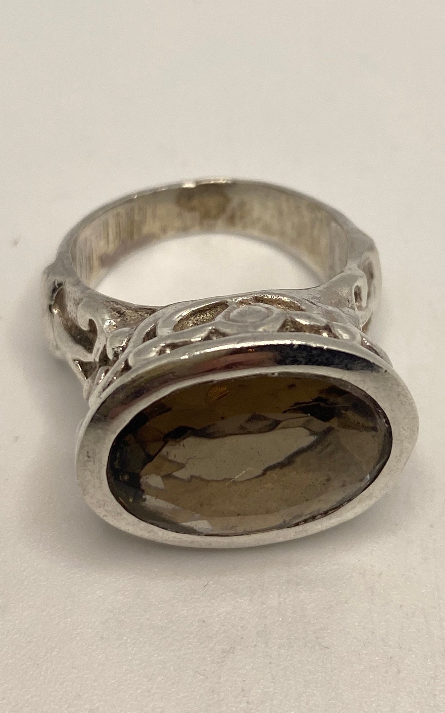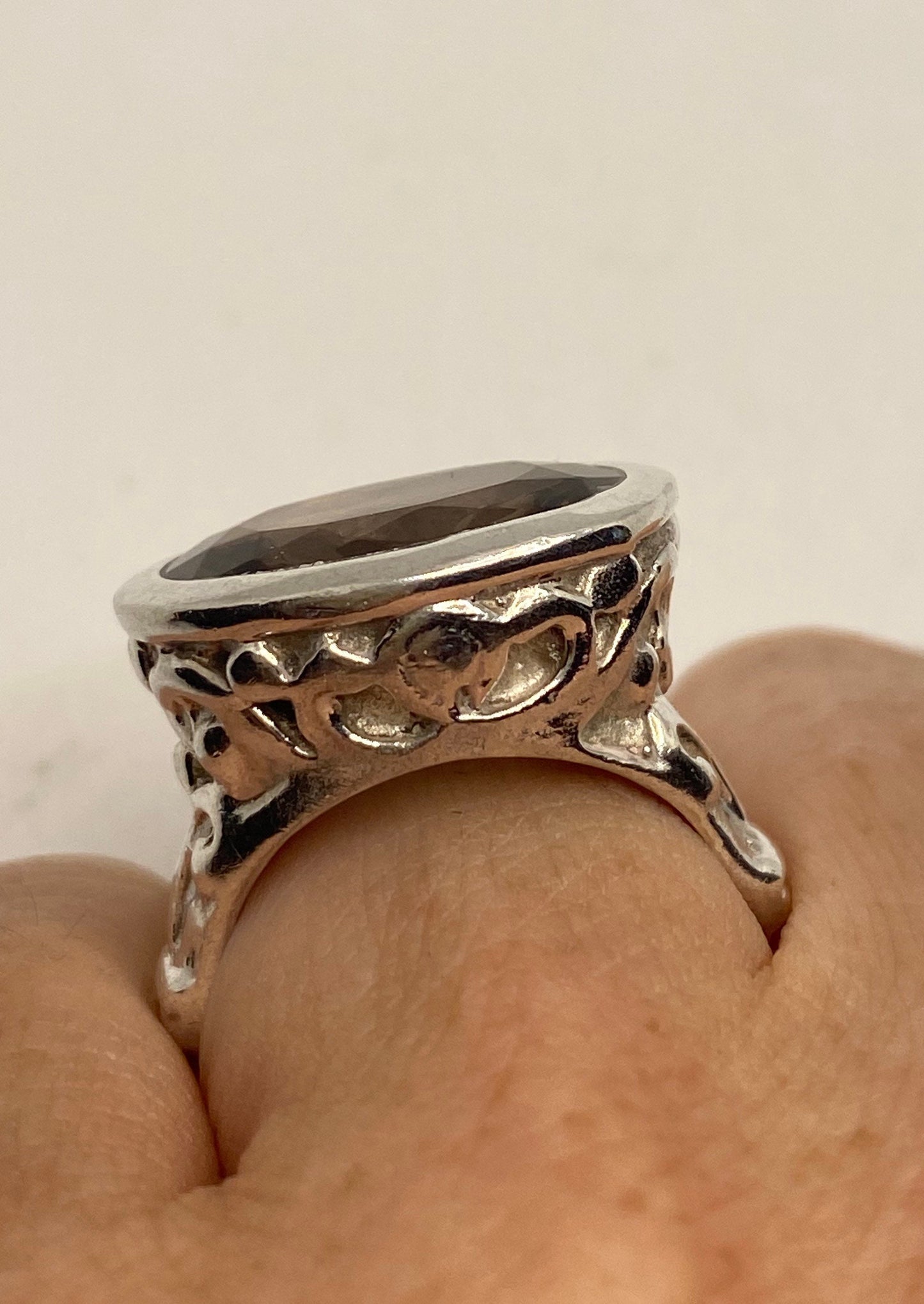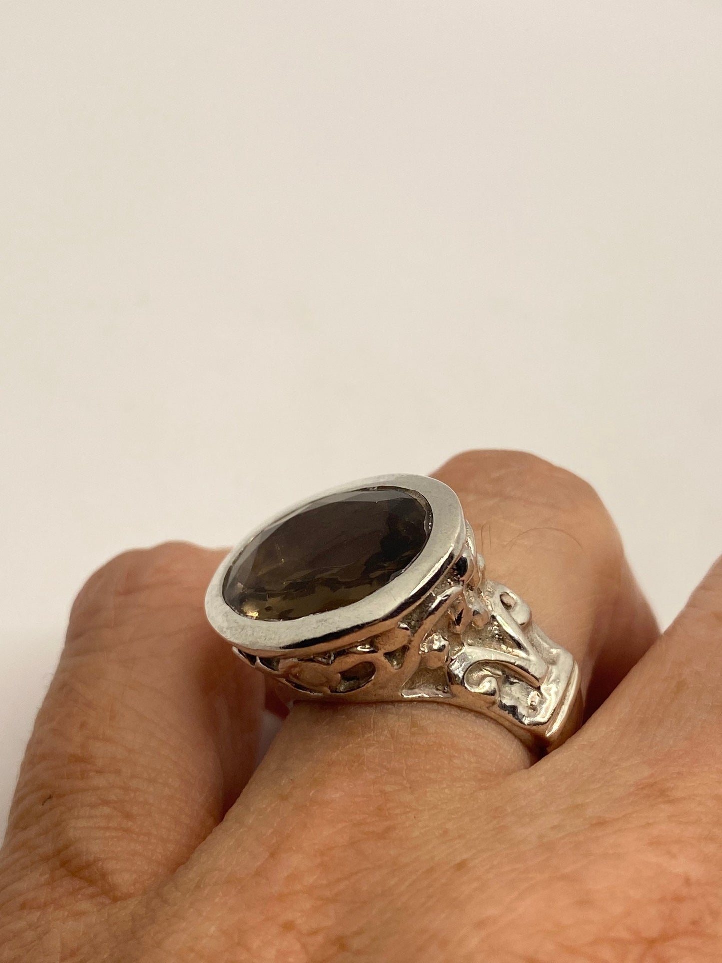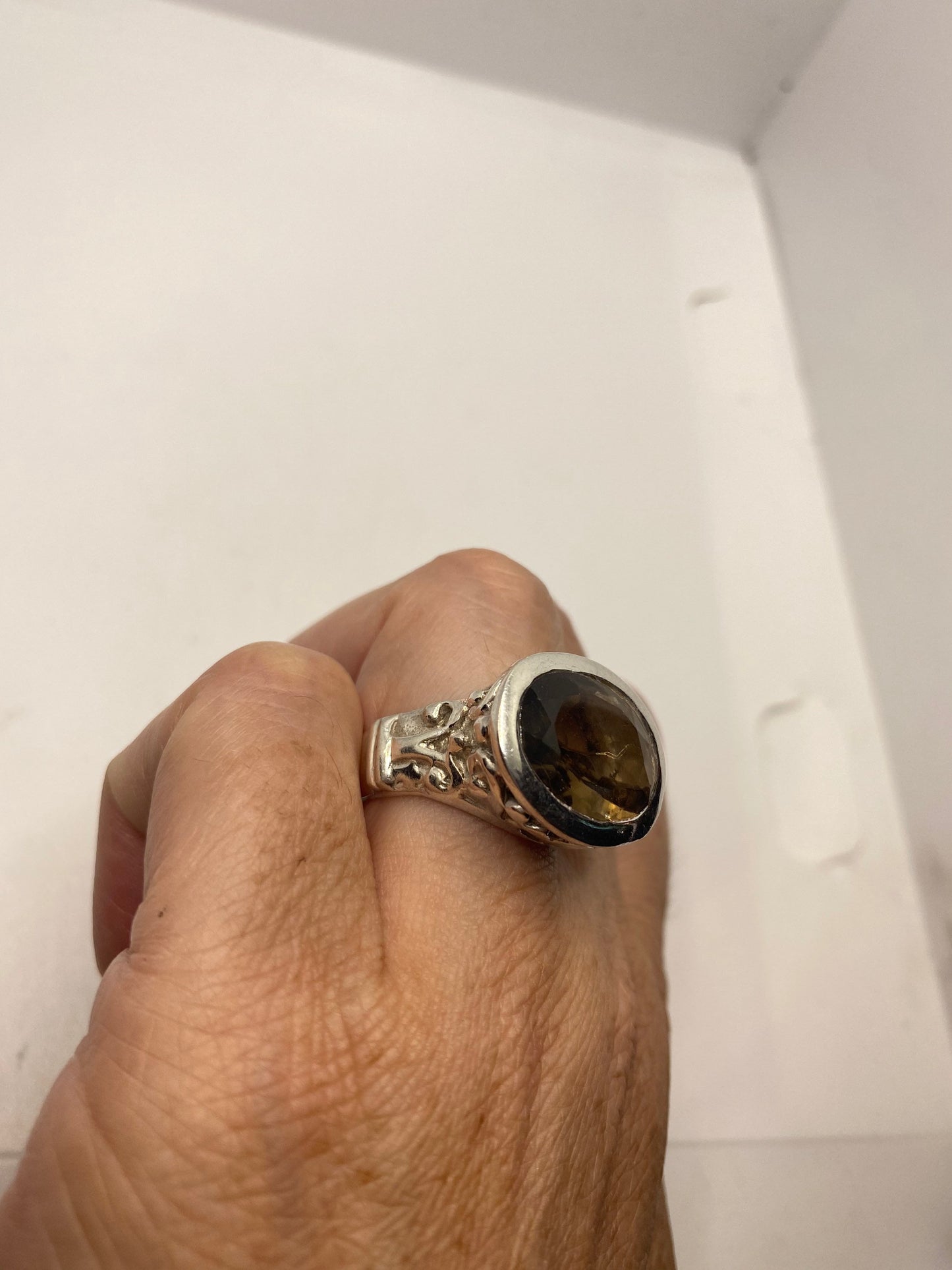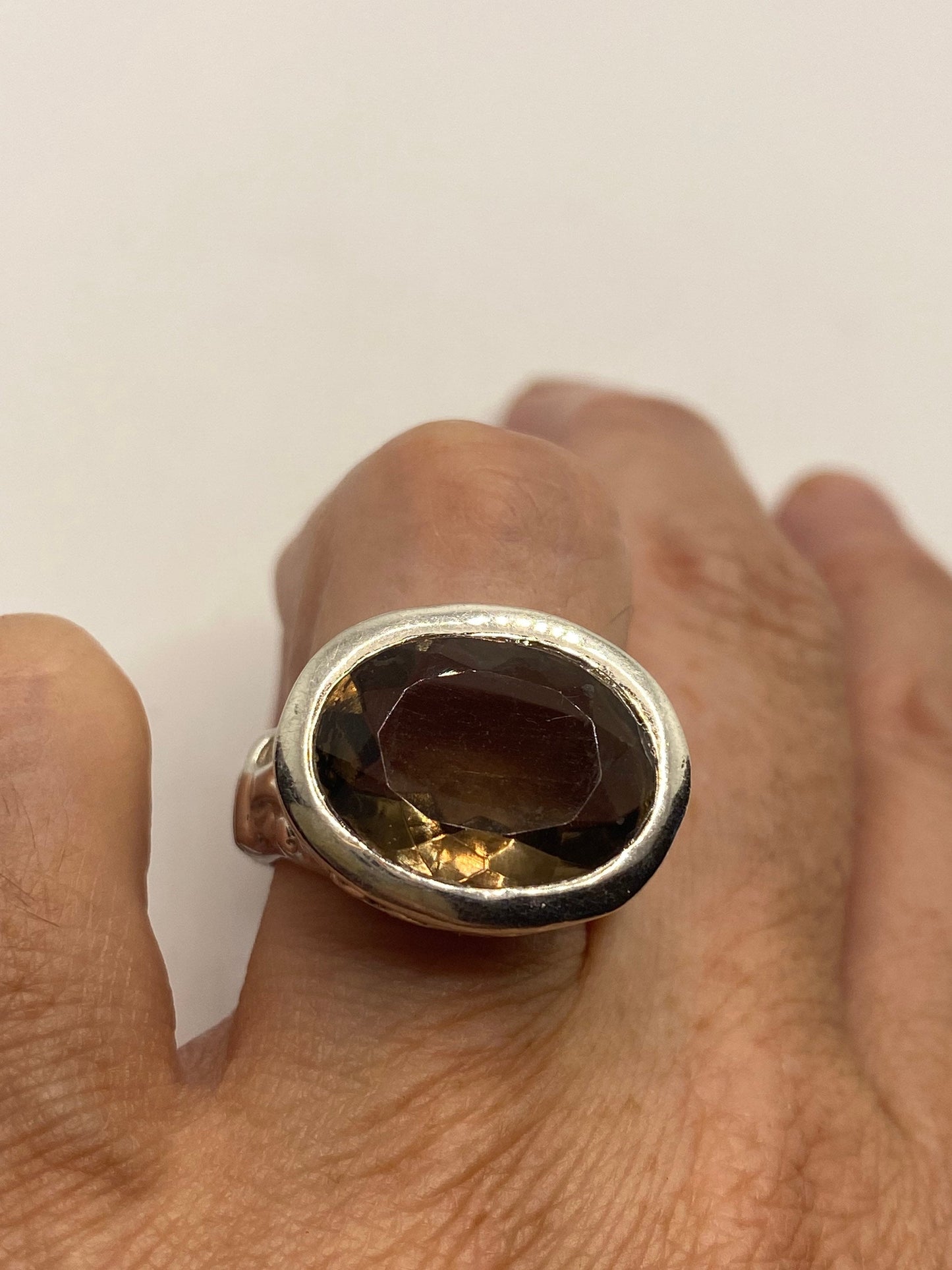 Vintage Smoky Topaz Ring 925 Sterling Silver