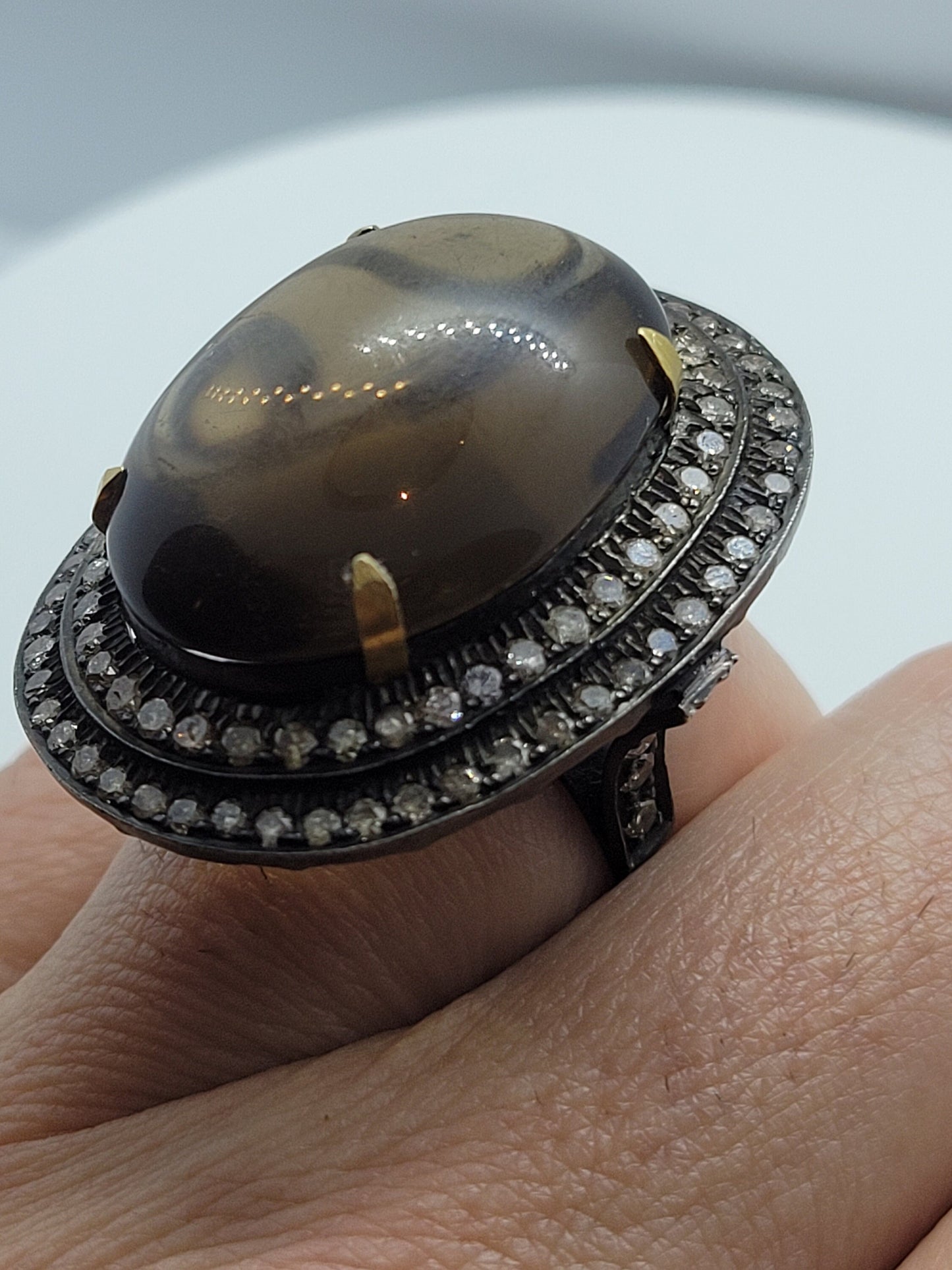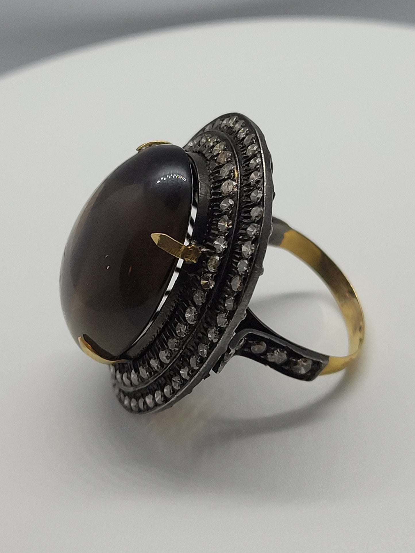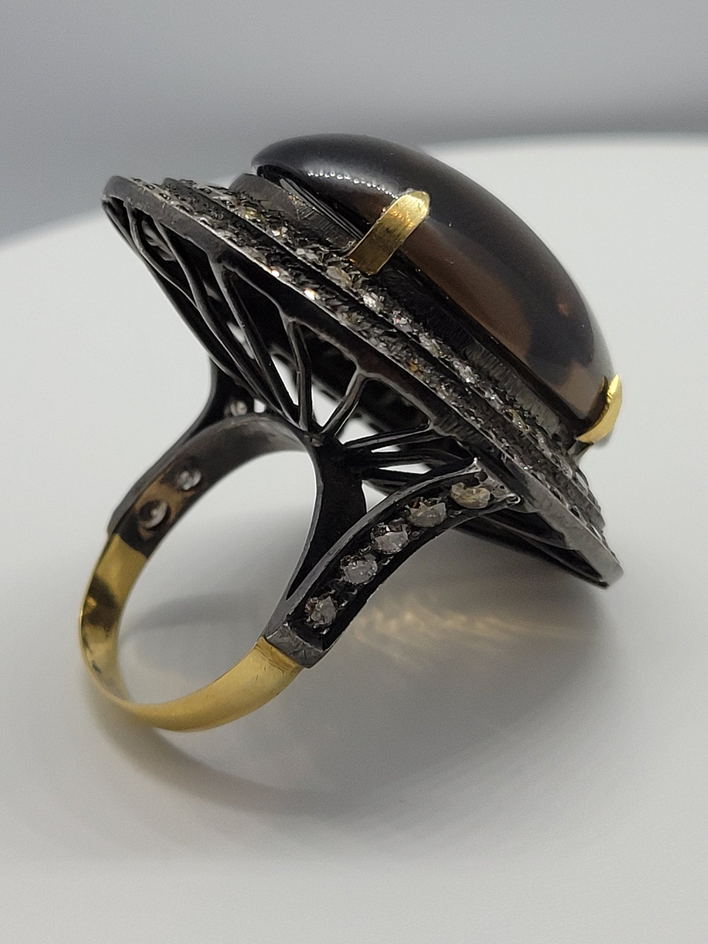 Vintage Smoky Topaz with Diamonds in 925 Sterling Silver and 18k Gold Ring Genuine Topaz Genuine Diamond Revival Collection
