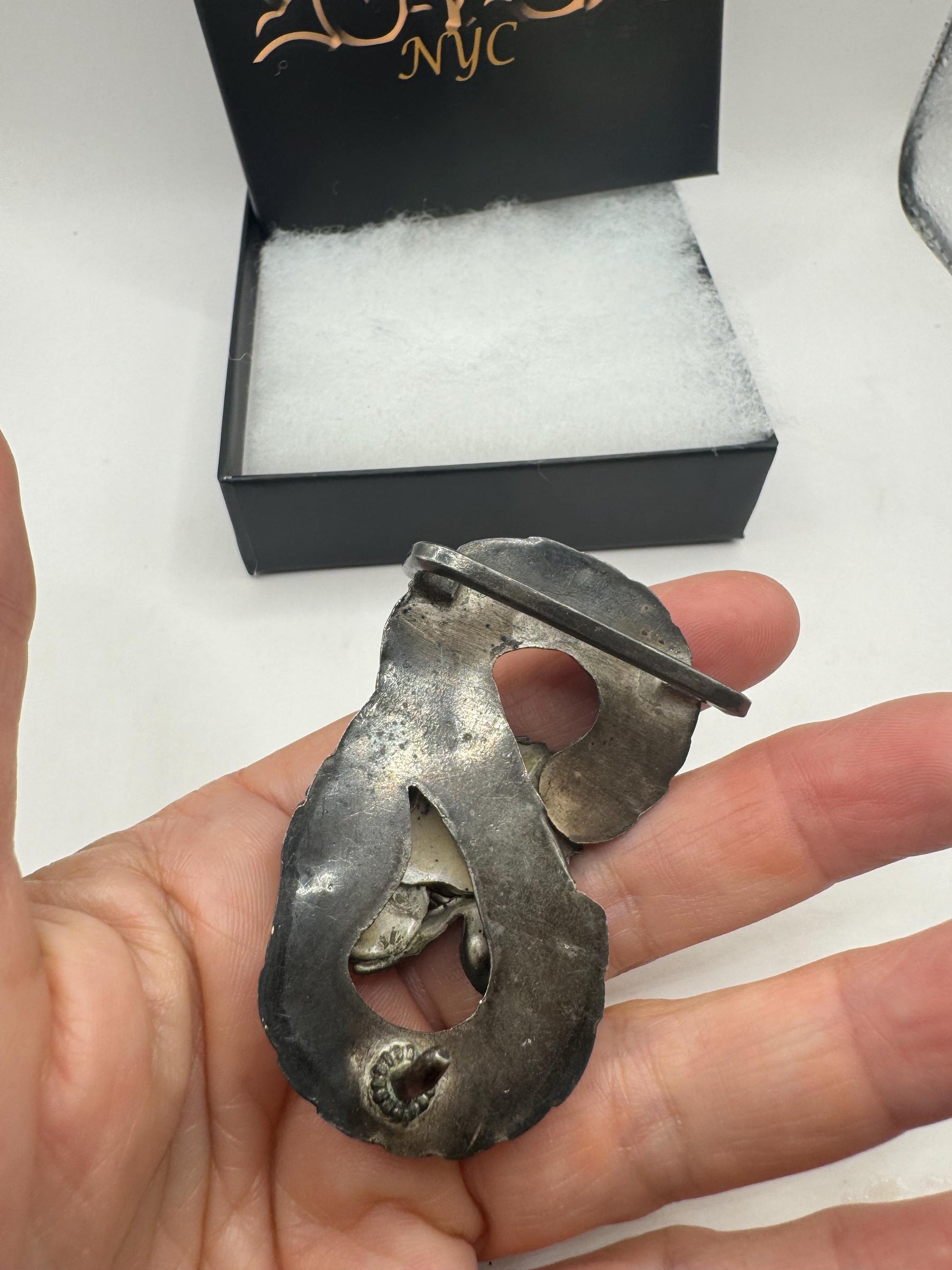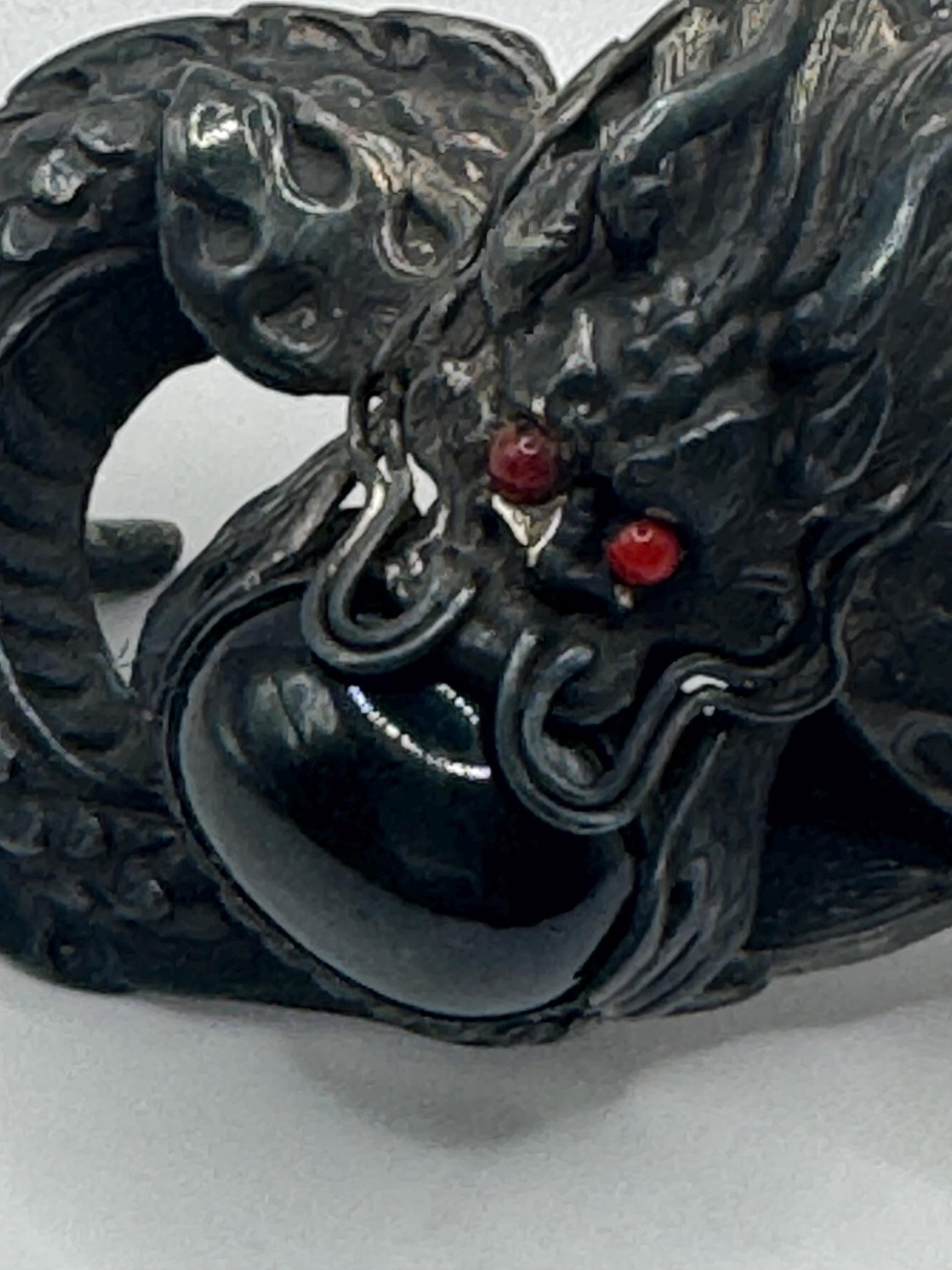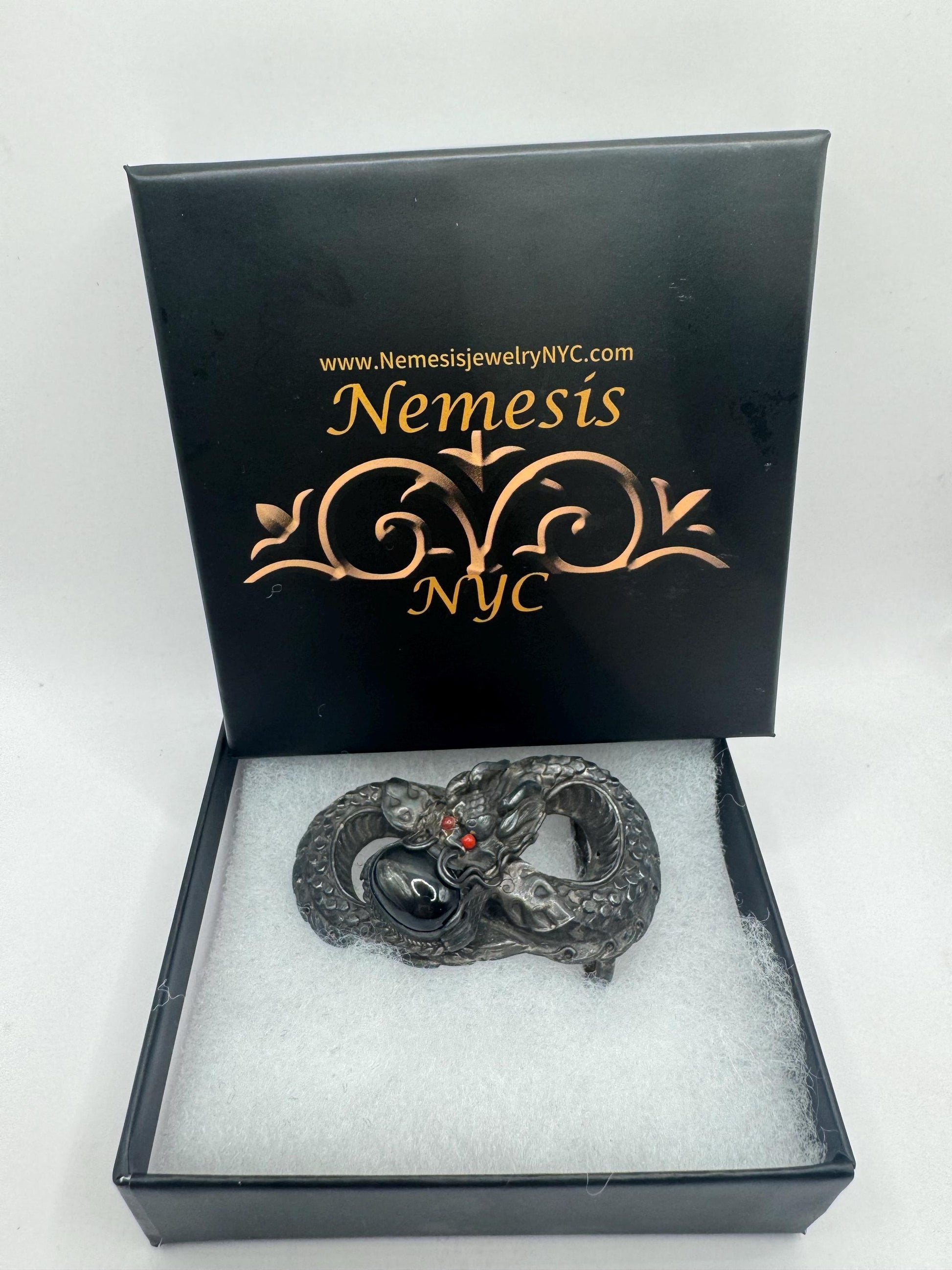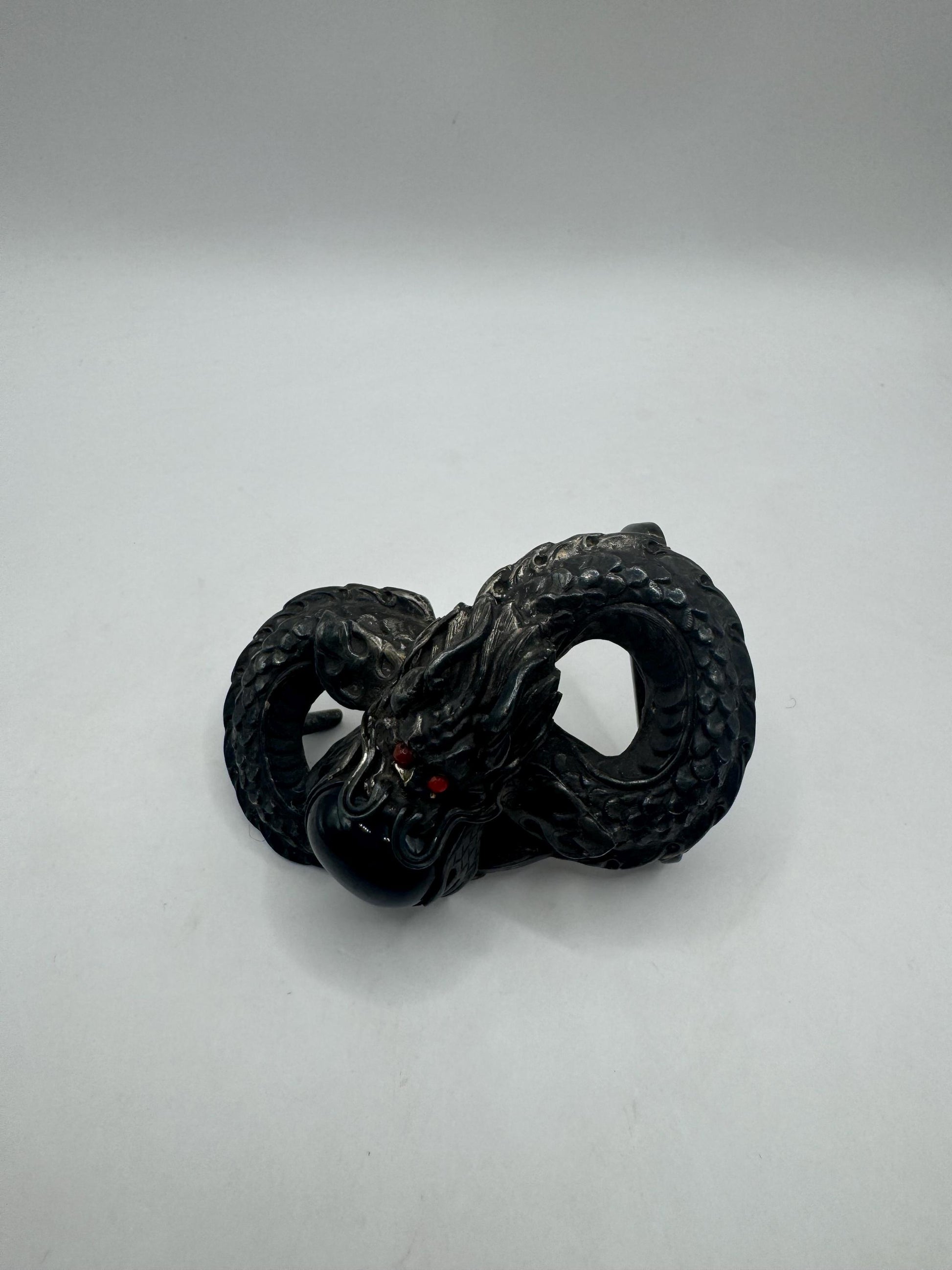Vintage 925 Sterling Silver Dragon Serpant Belt Buckle Black Star of India Dioptase