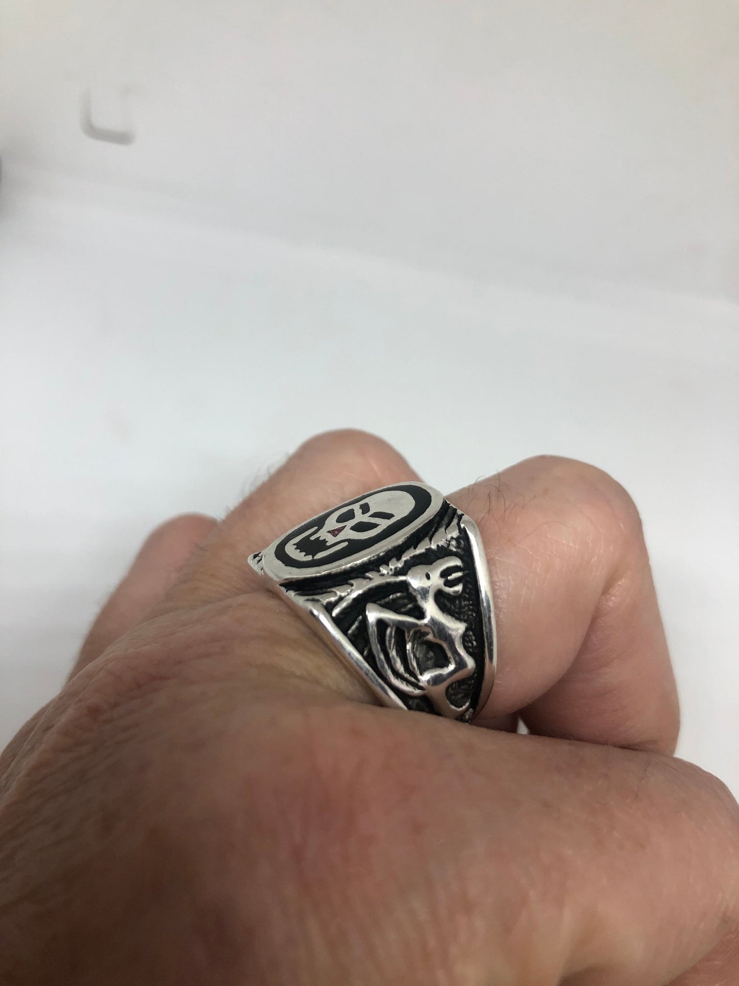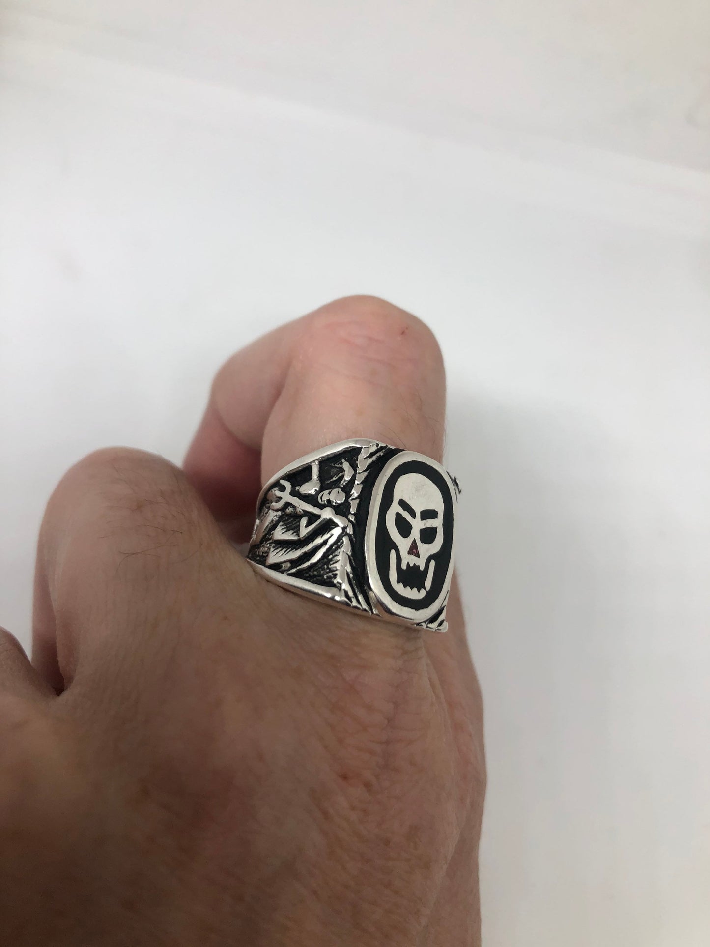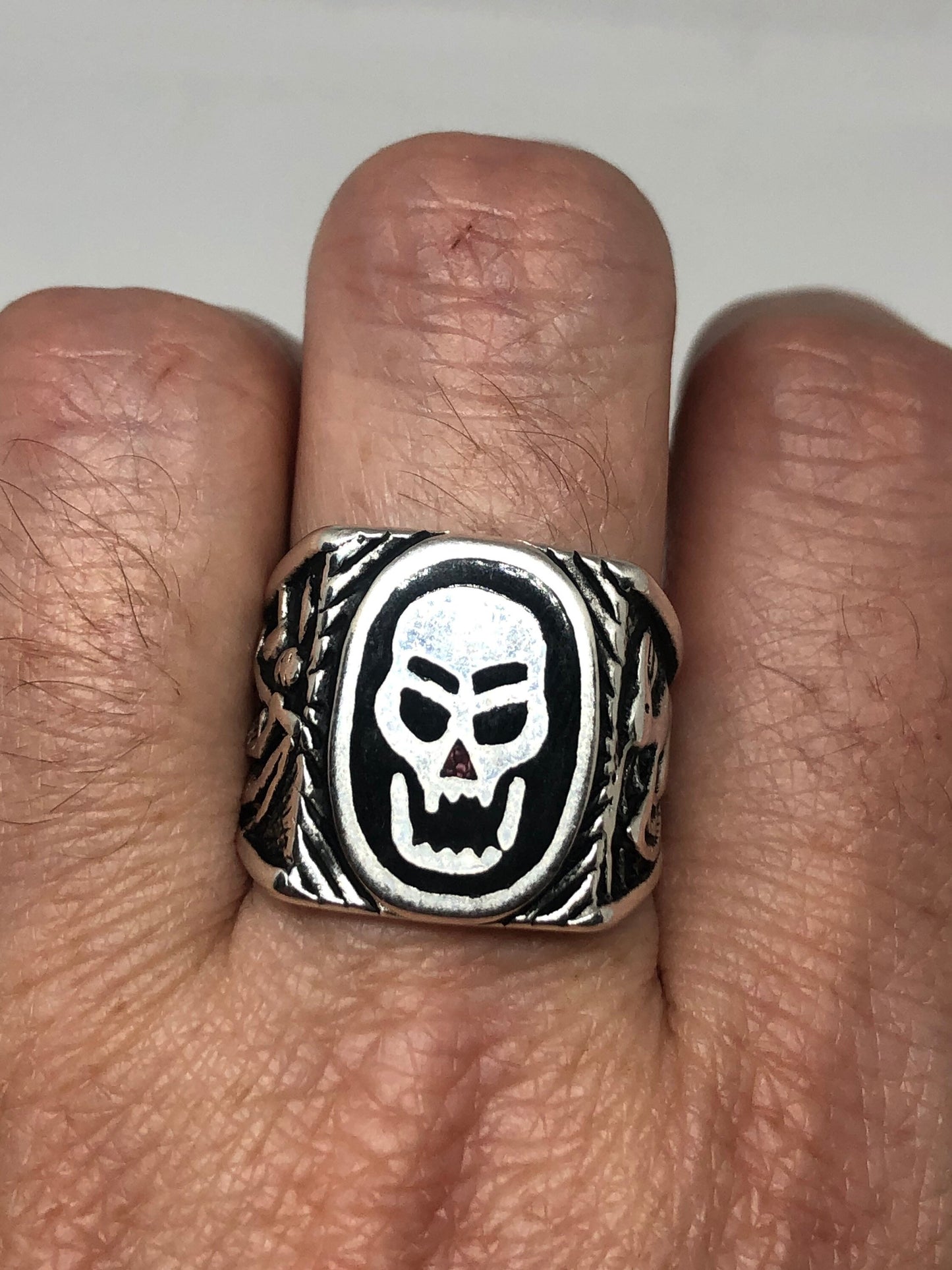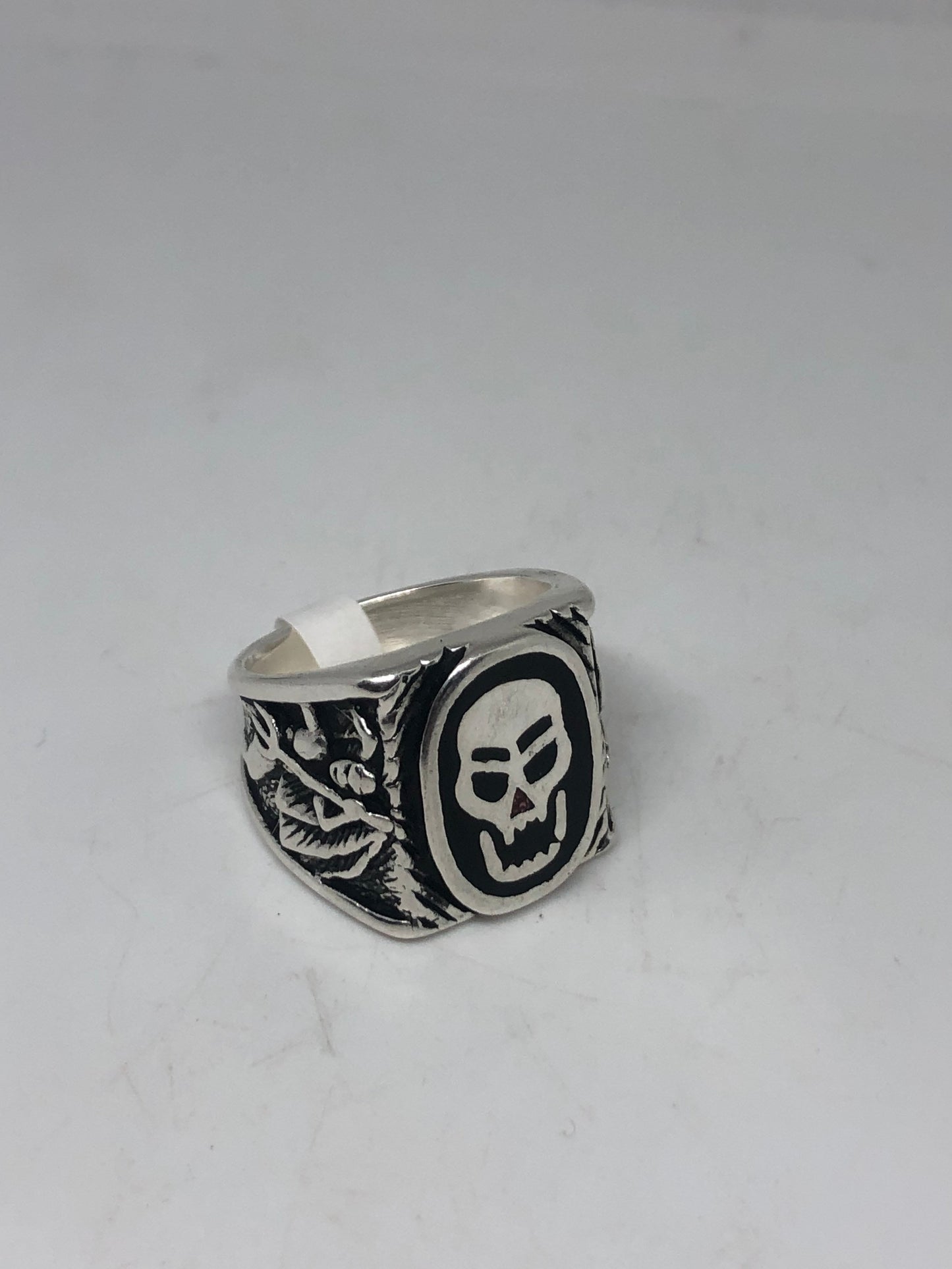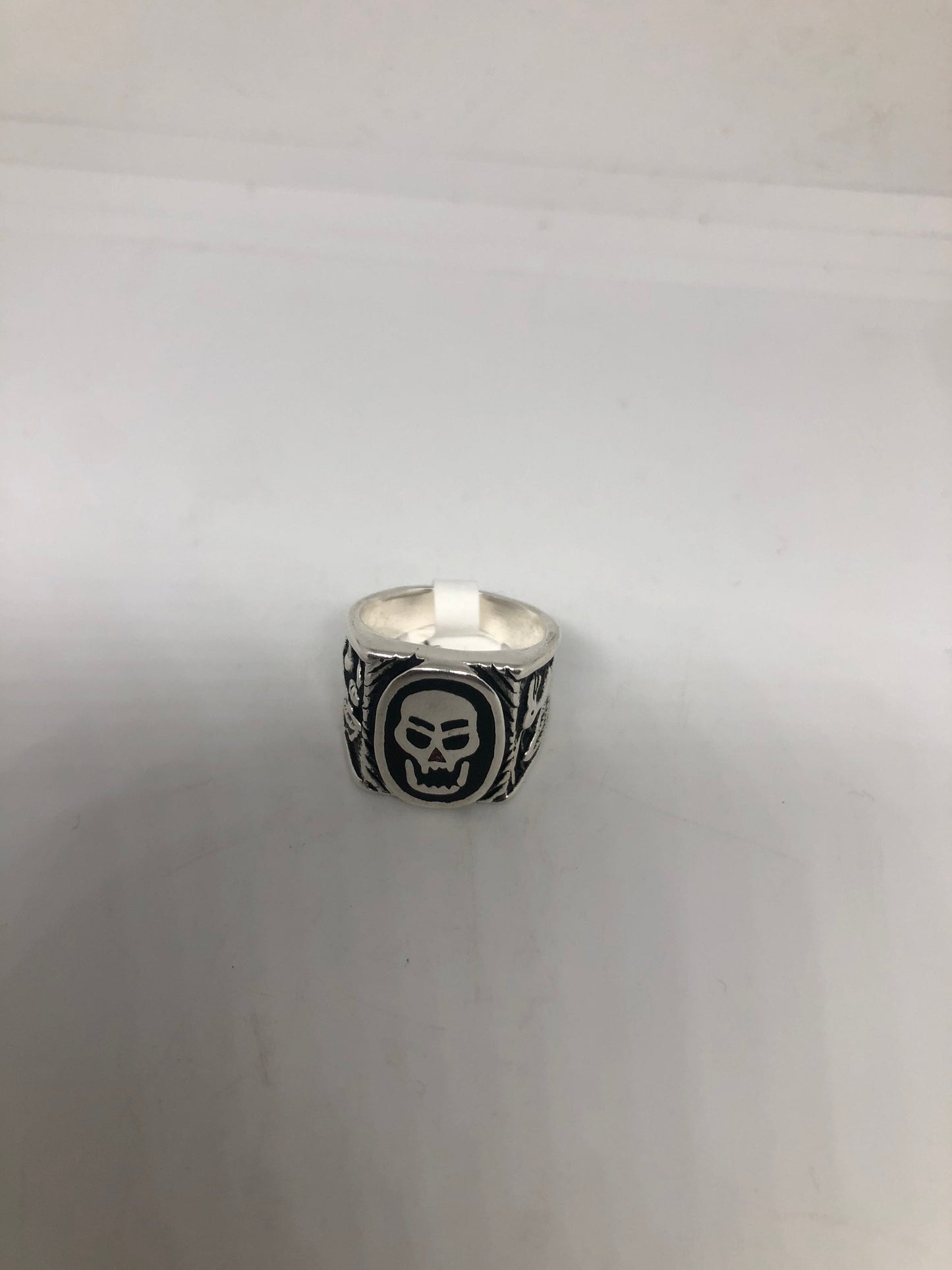 Vintage Southwestern Skull Ring in White Bronze with Black Stone Inlay
