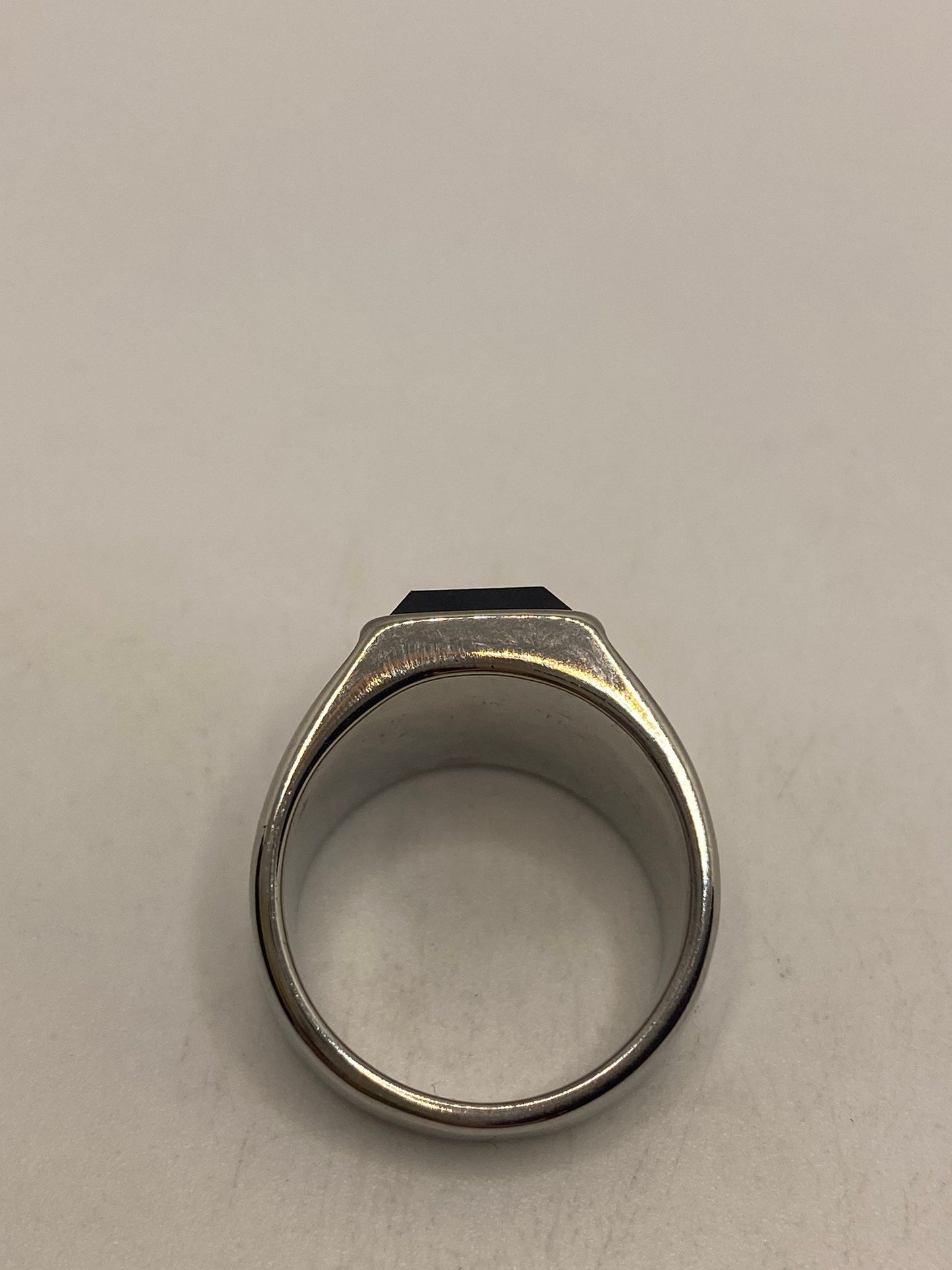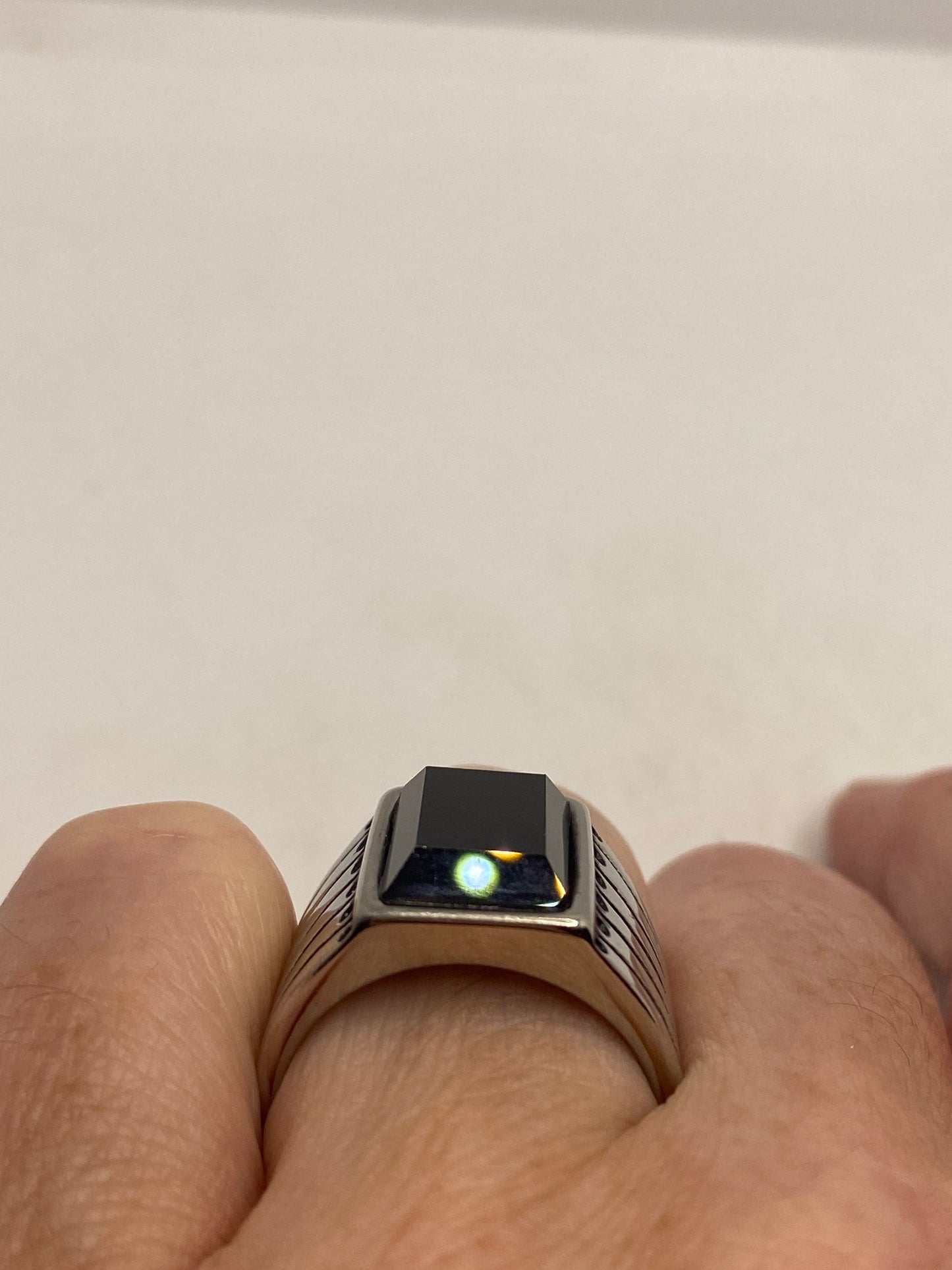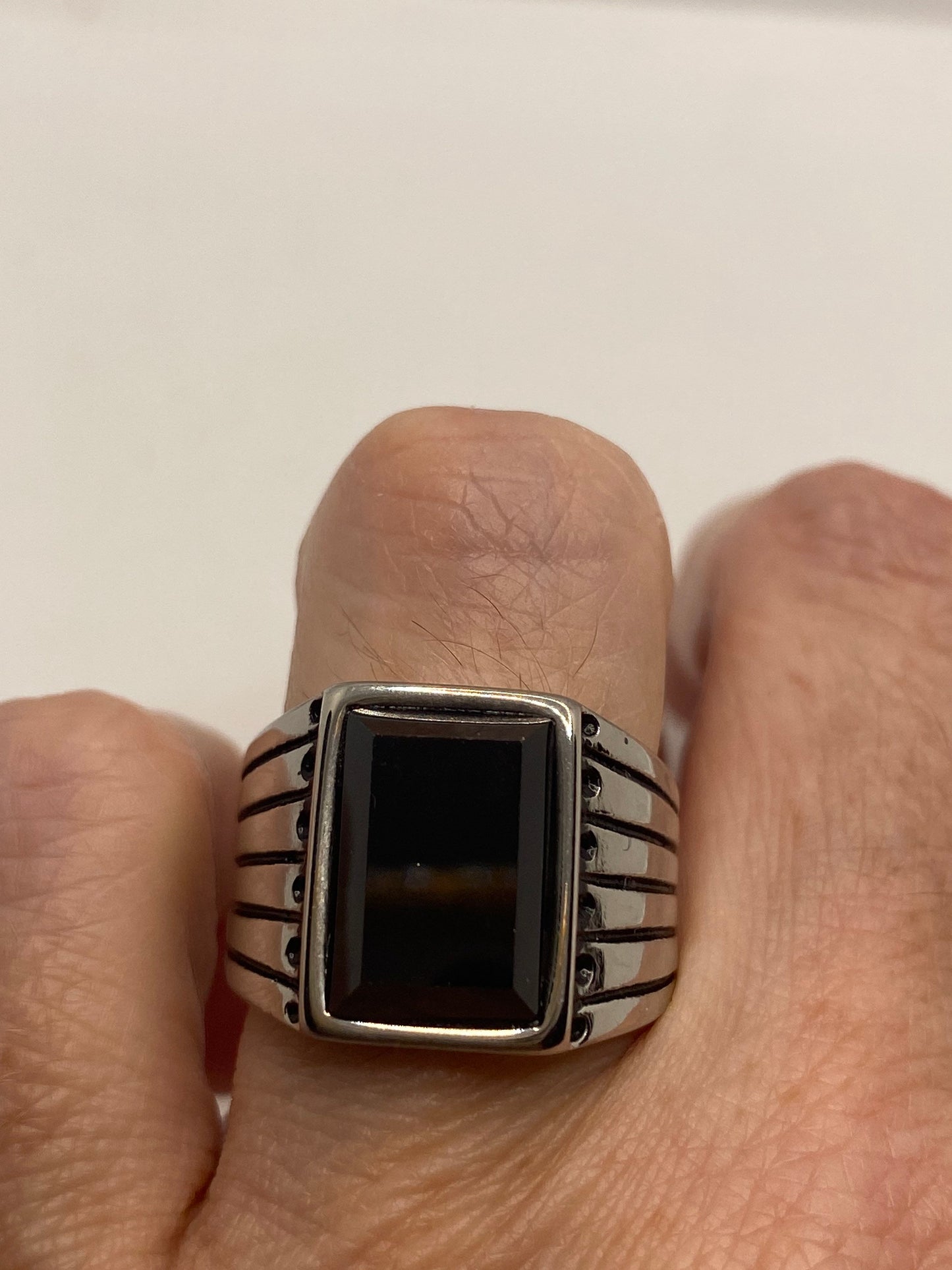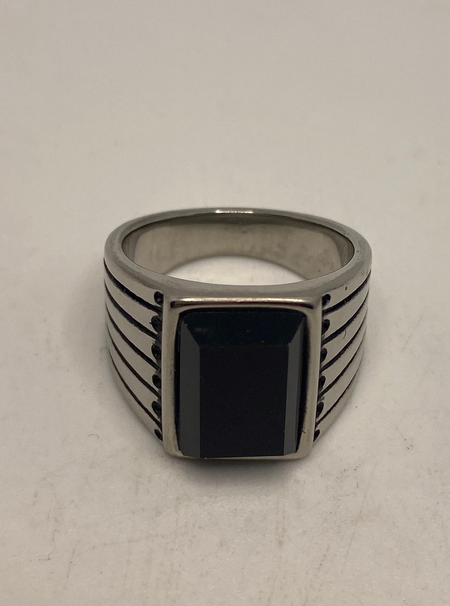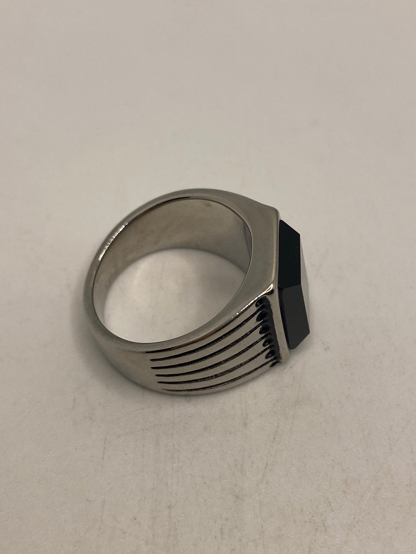 Vintage Stainless Steel Black Onyx Ring Size 7