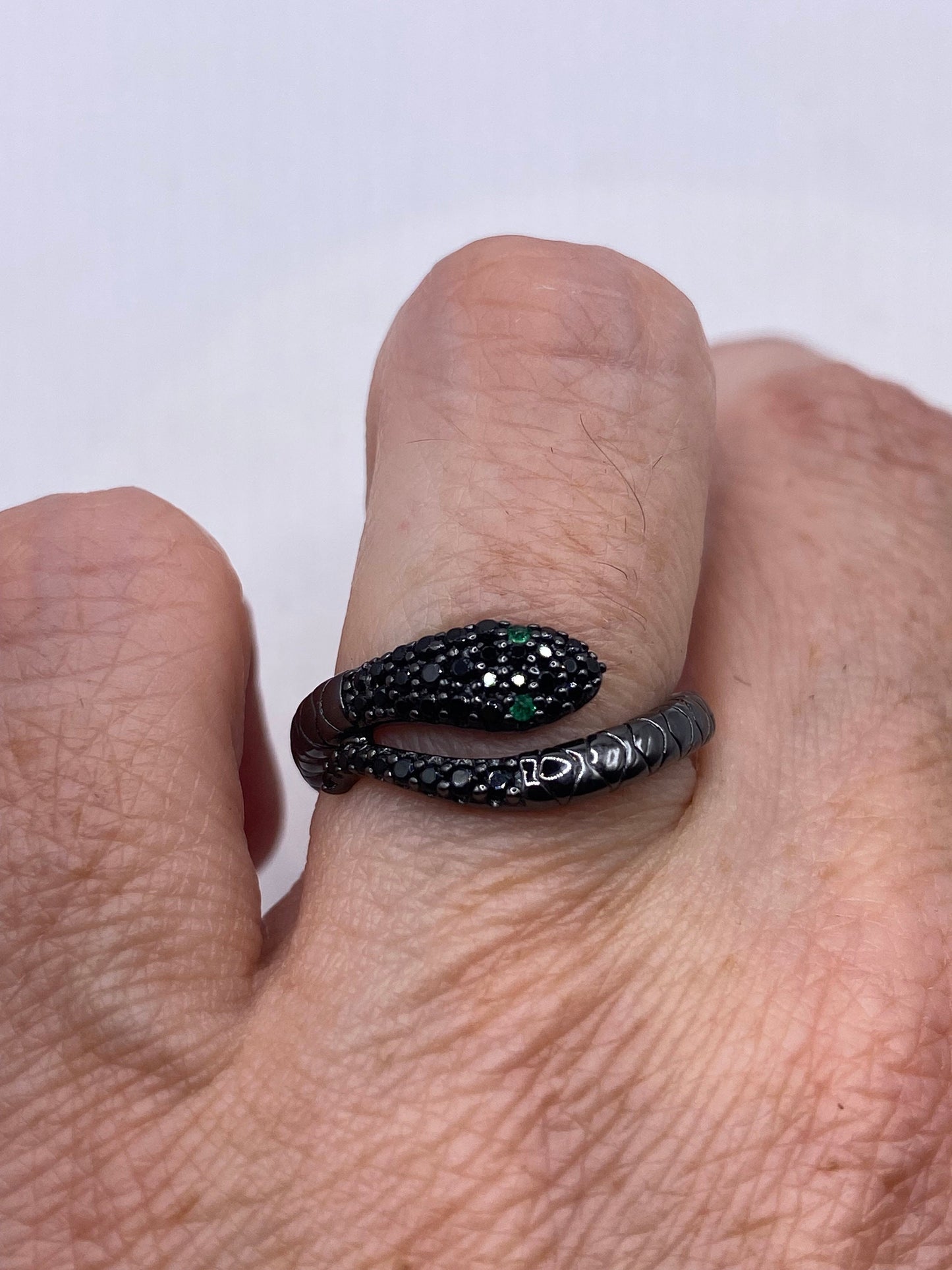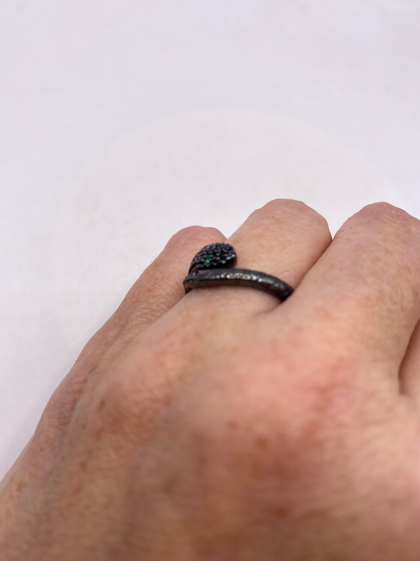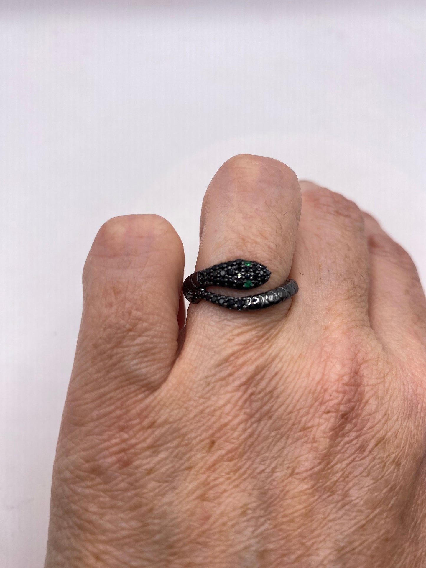 Vintage Sterling Silver Adjustable Crystal Snake Ring