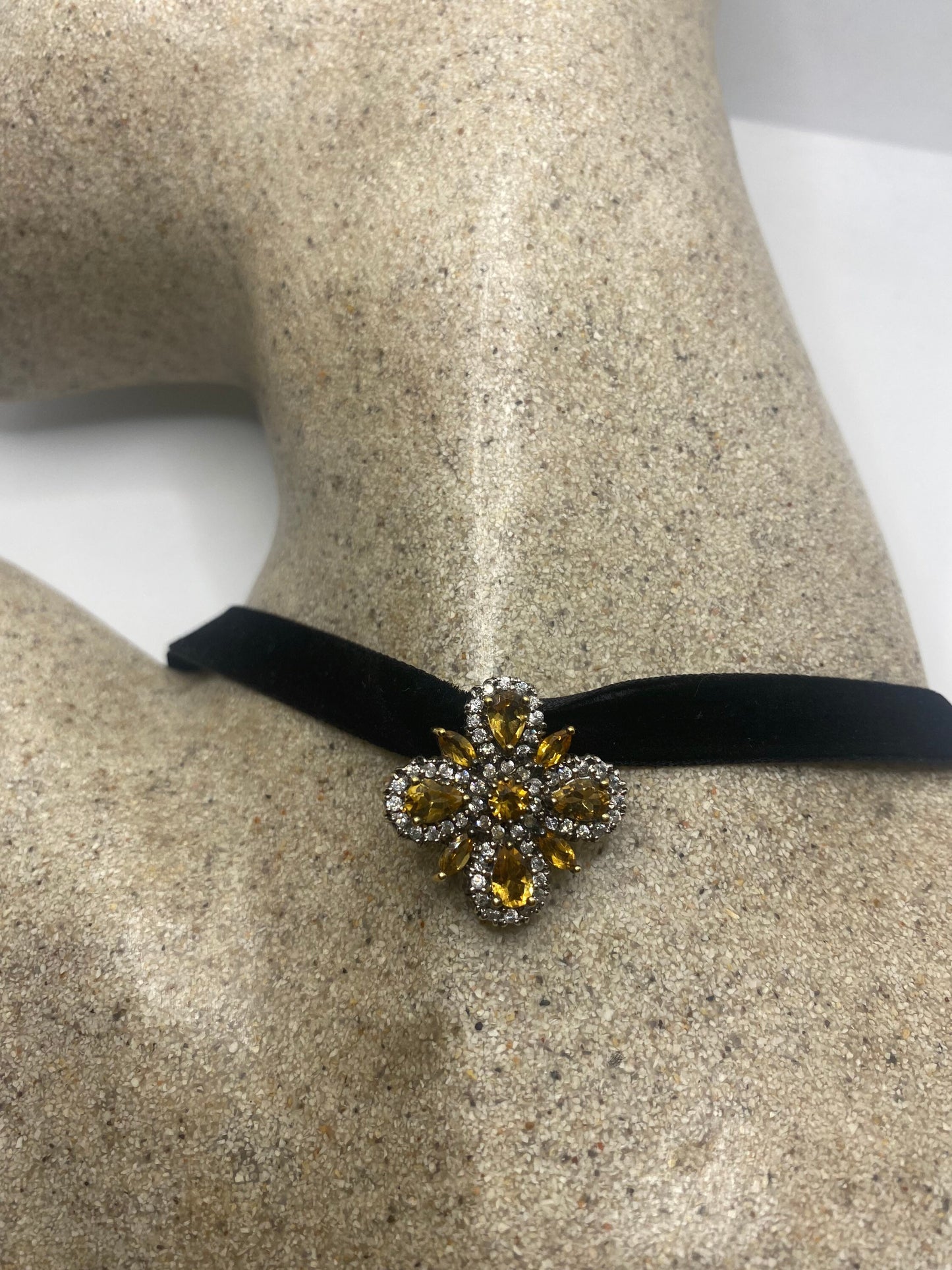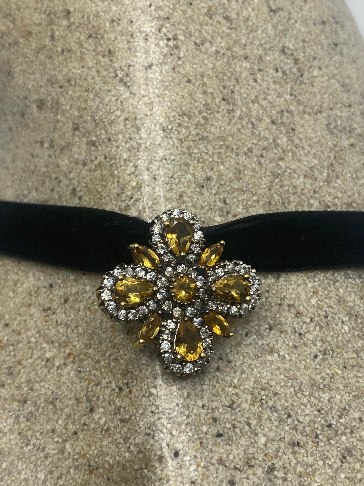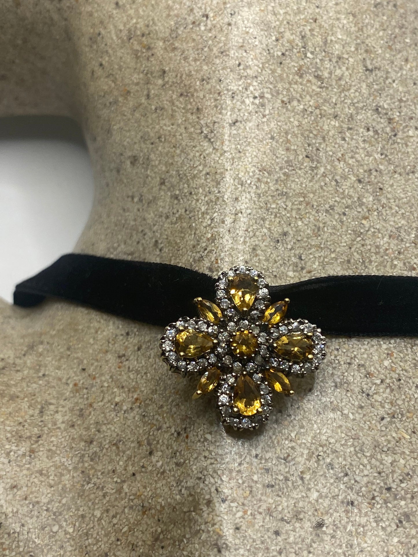 Vintage Sterling Silver Golden Lemon Citrine Cross Choker Pendant