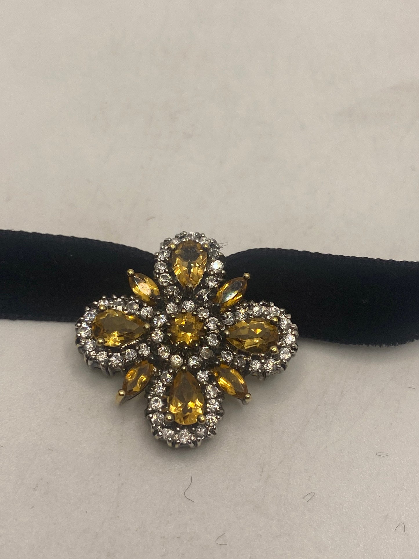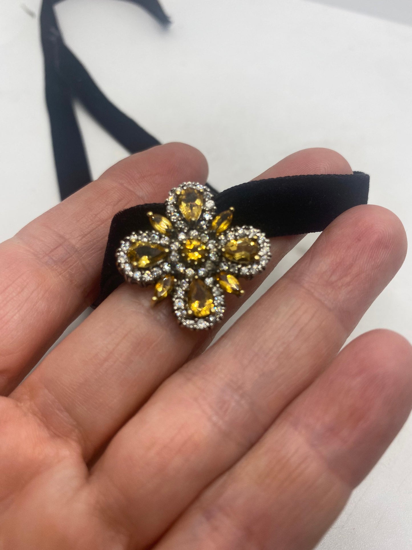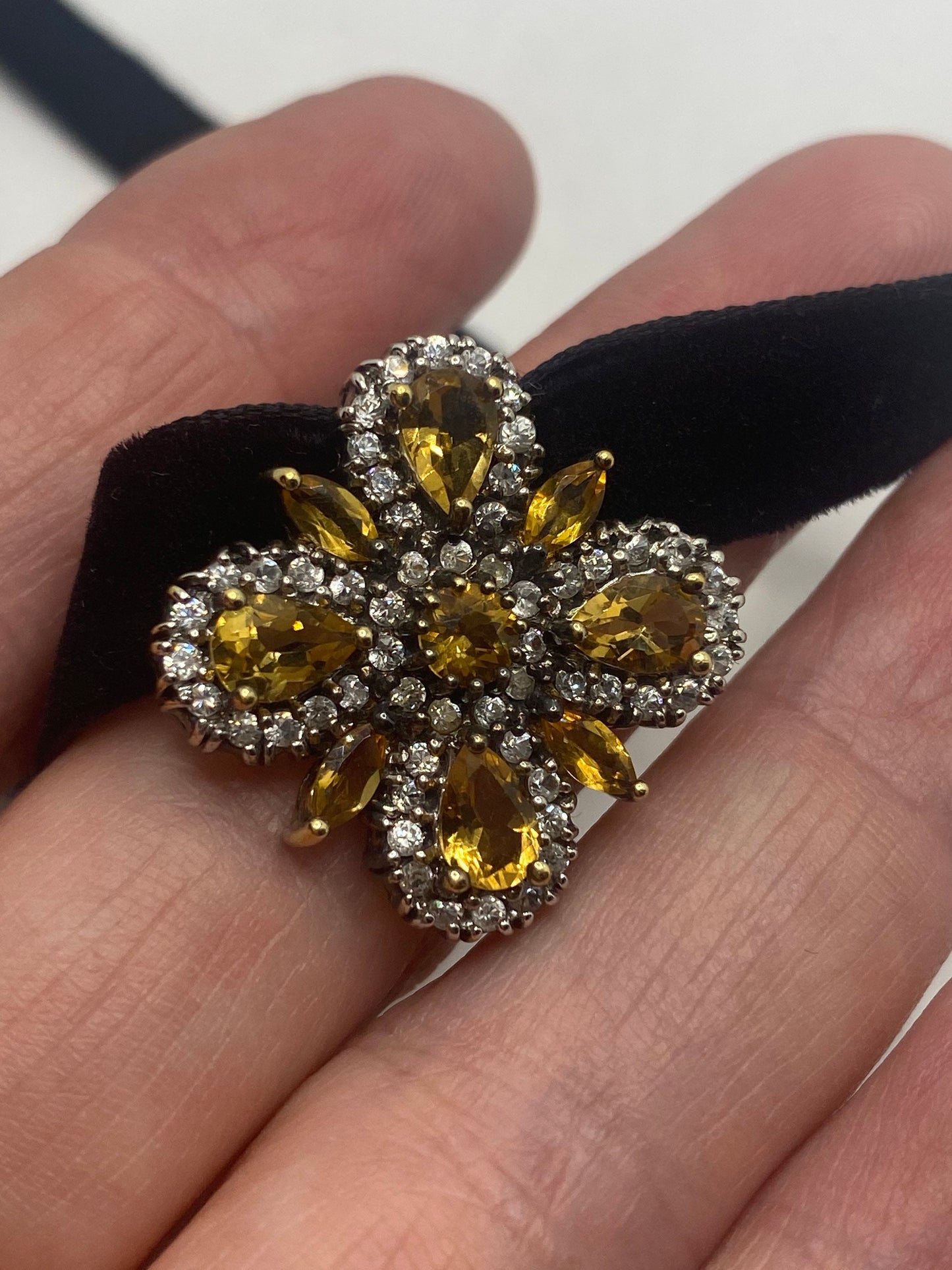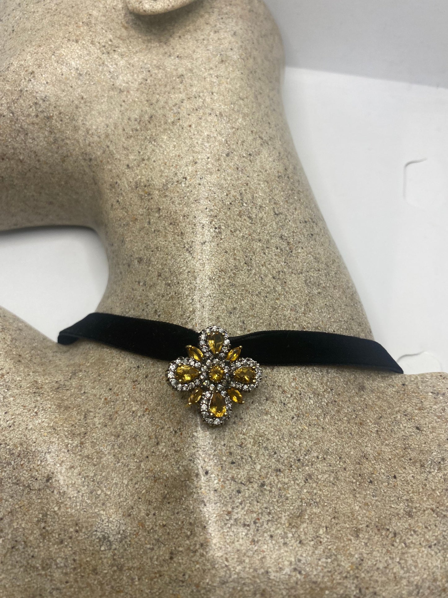Vintage Sterling Silver Golden Lemon Citrine Cross Choker Pendant