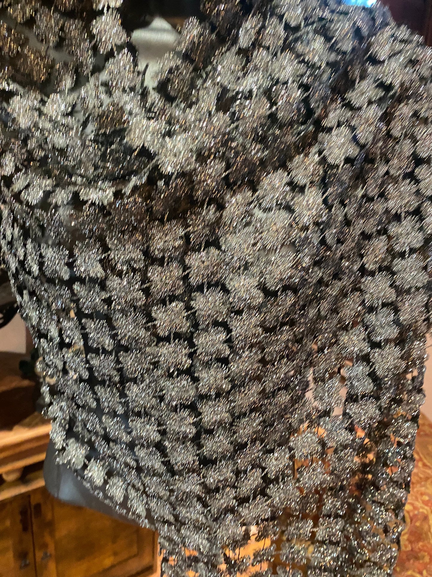 Vintage Styled Sheer Black Metallic Wrap Shawl