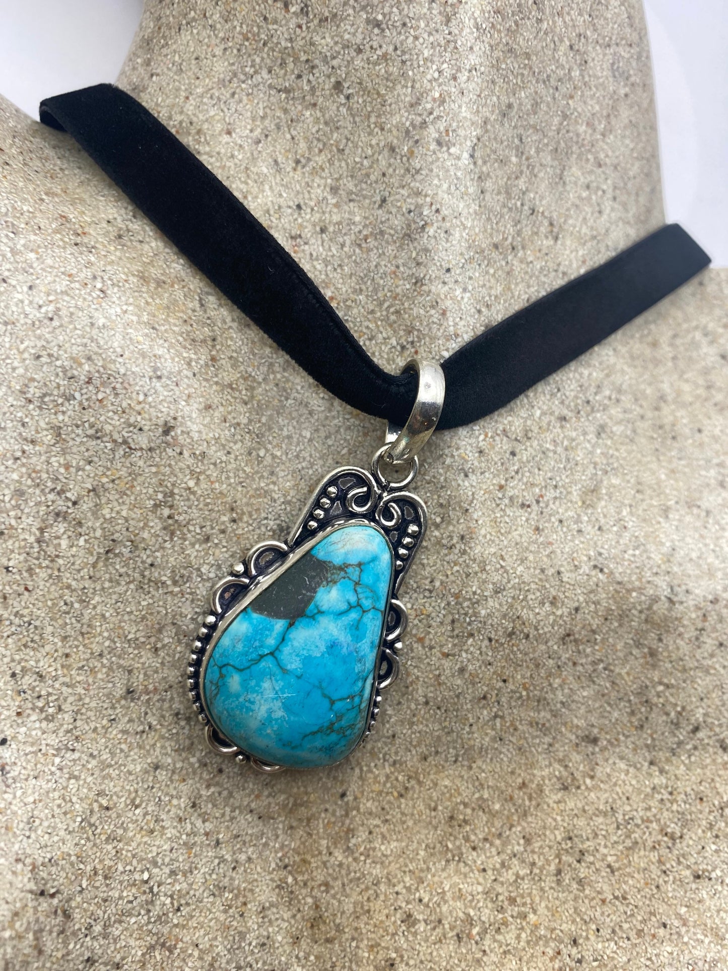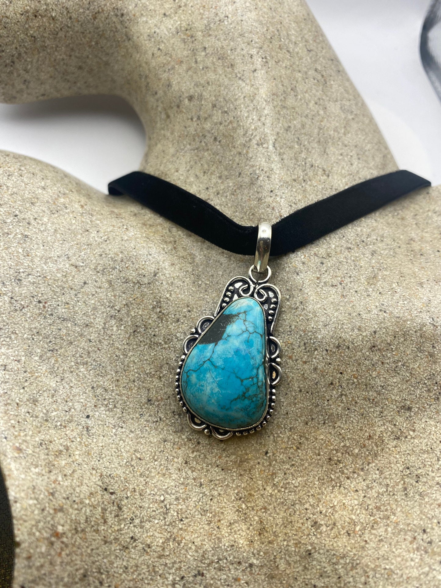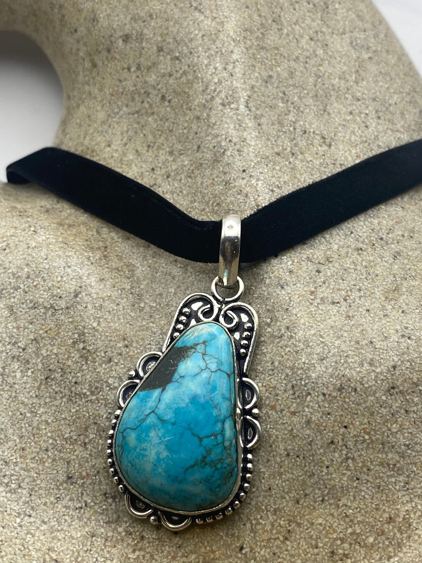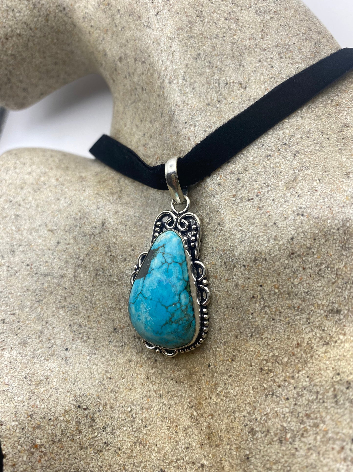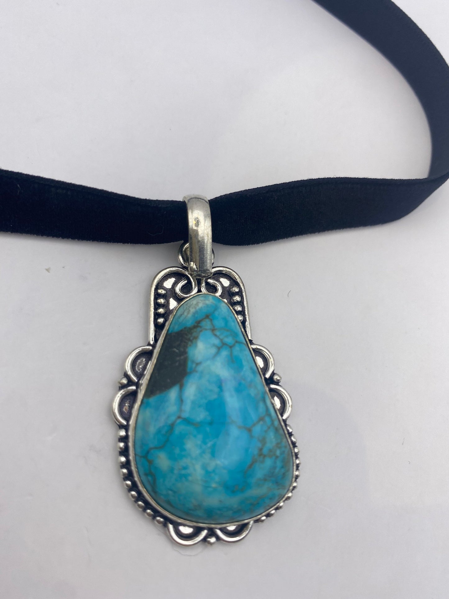 Vintage Tibetan Blue Turquoise Pendant Necklace