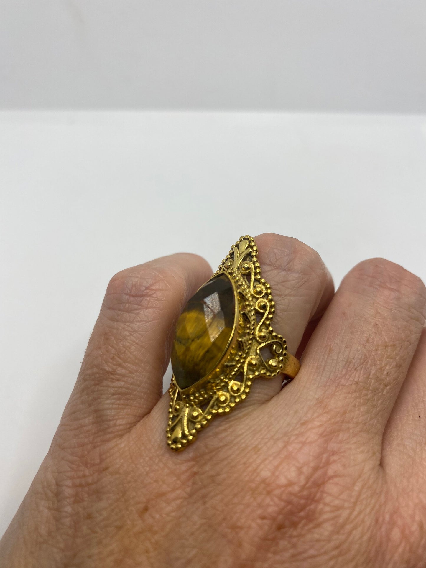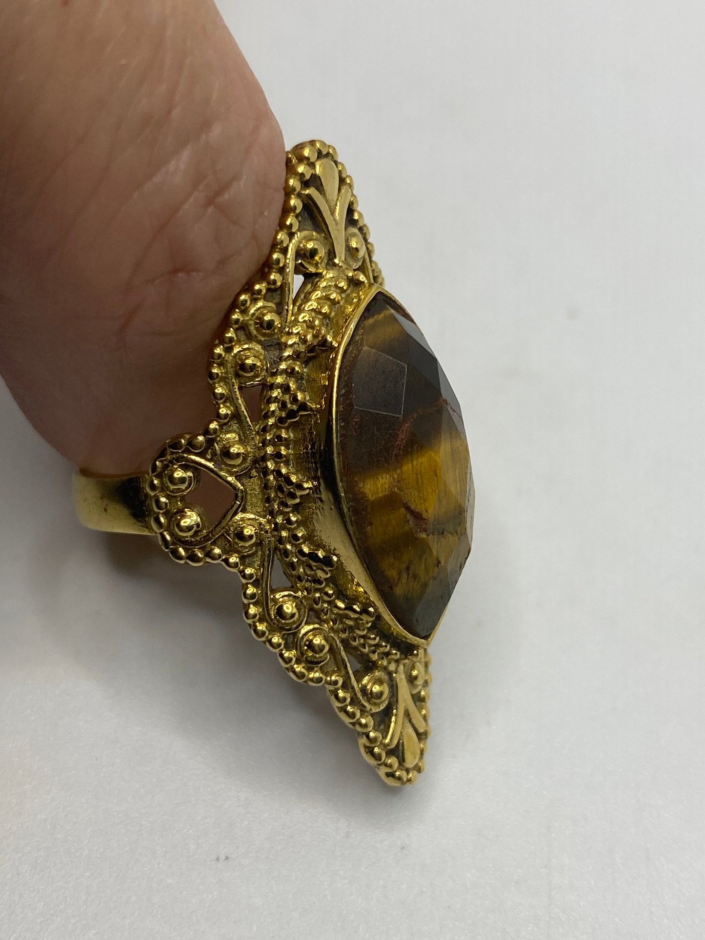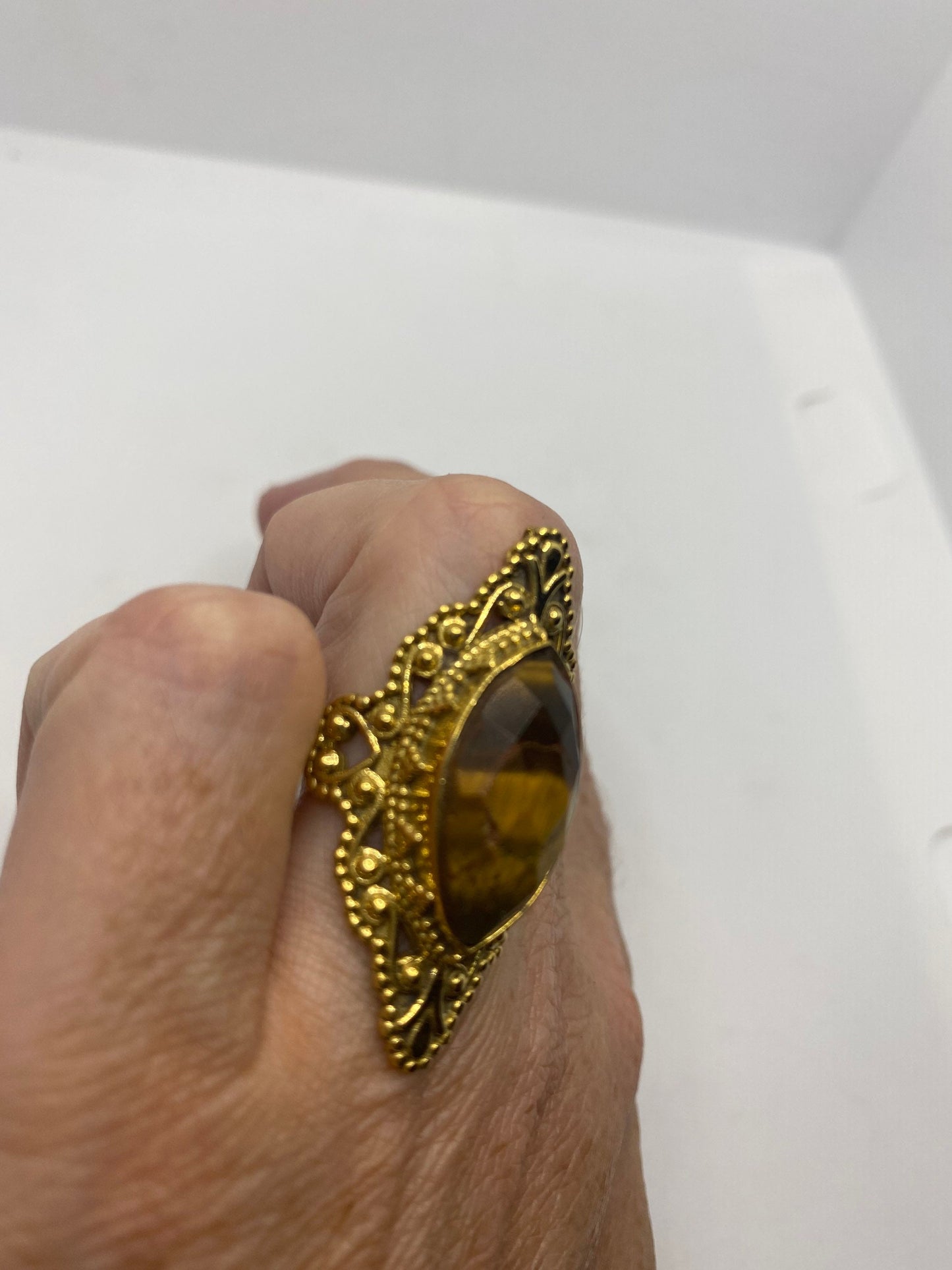 Vintage Tigers Eye Golden Brass Knuckle Ring
