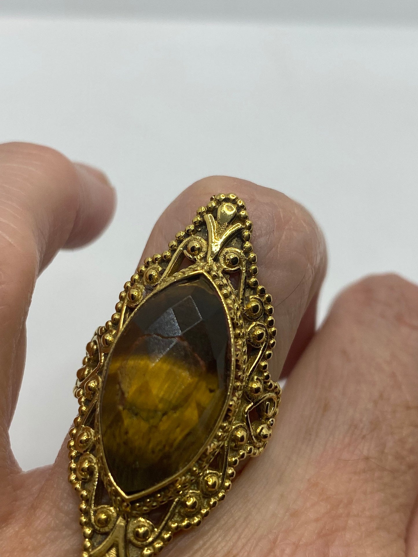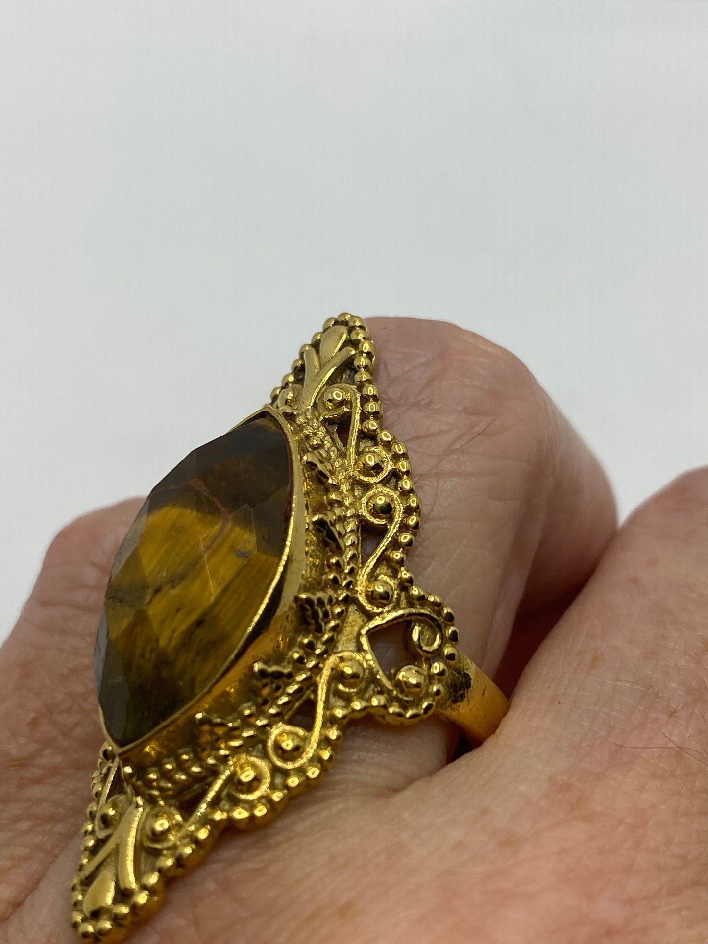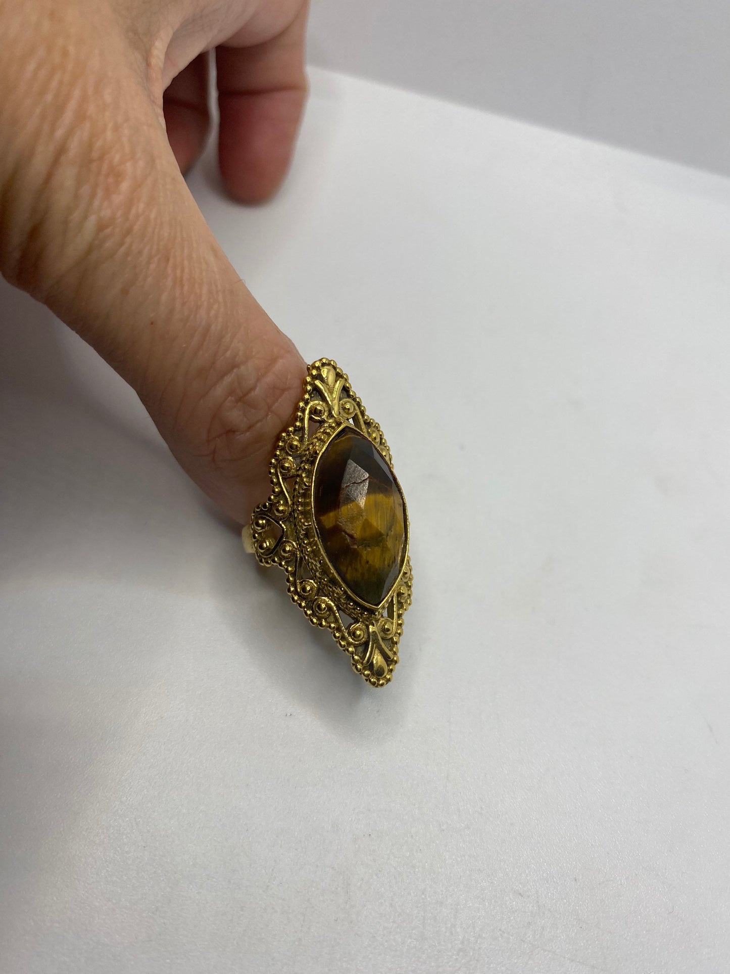 Vintage Tigers Eye Golden Brass Knuckle Ring