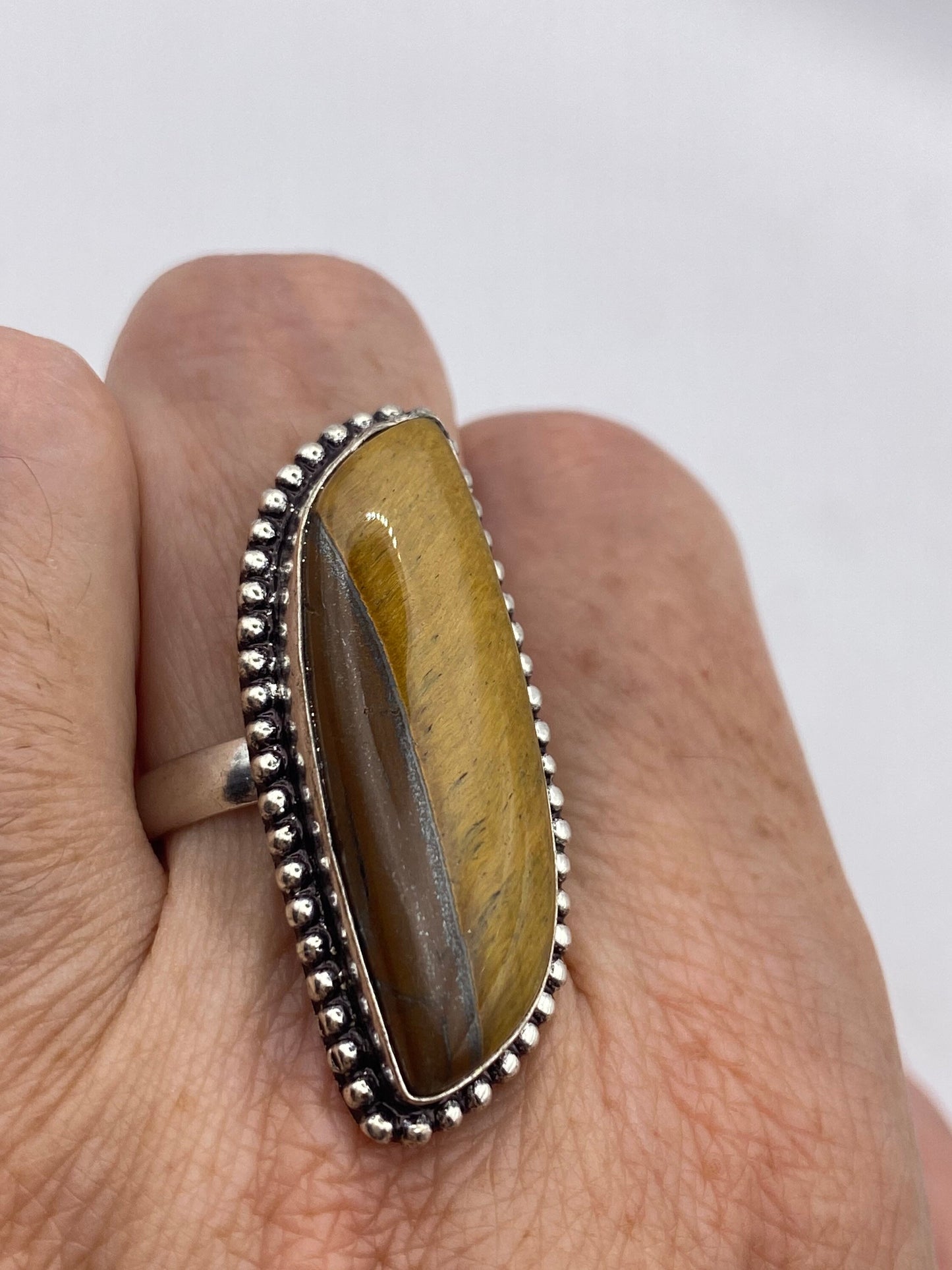 Vintage Tigers Eye Stone Silver Ring