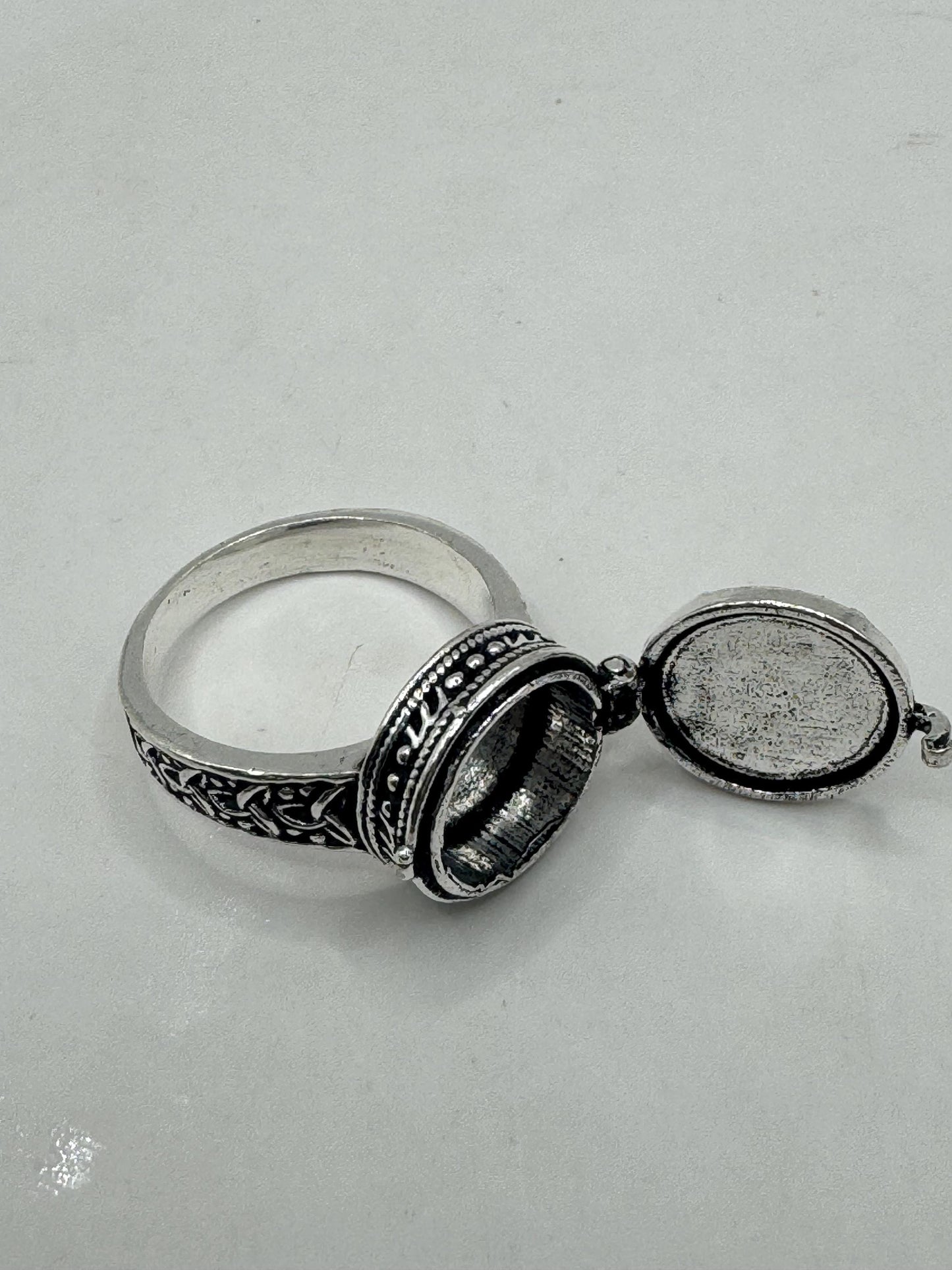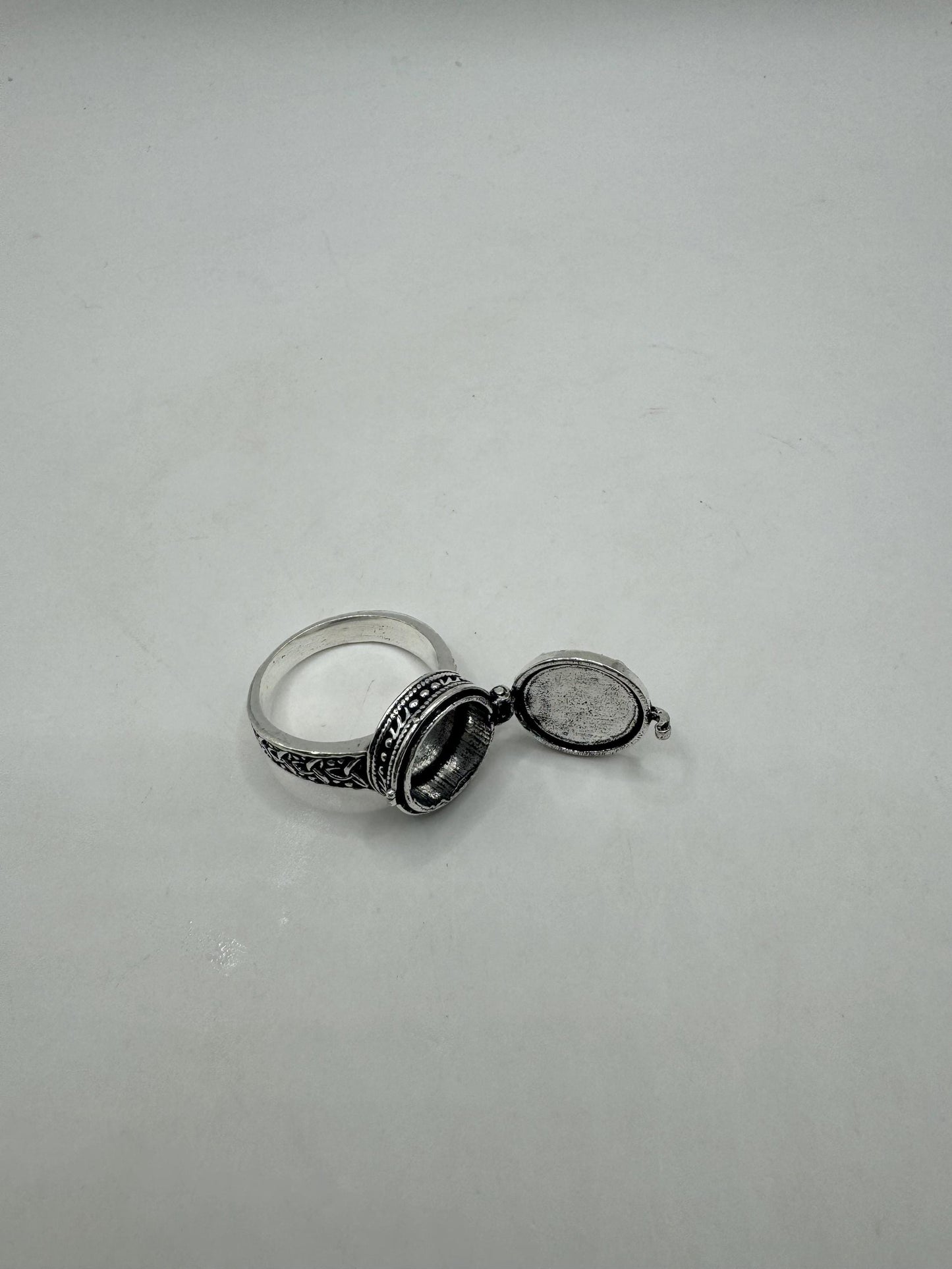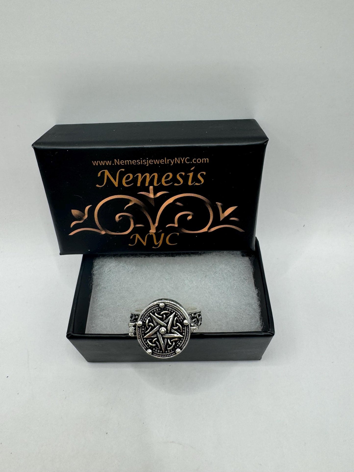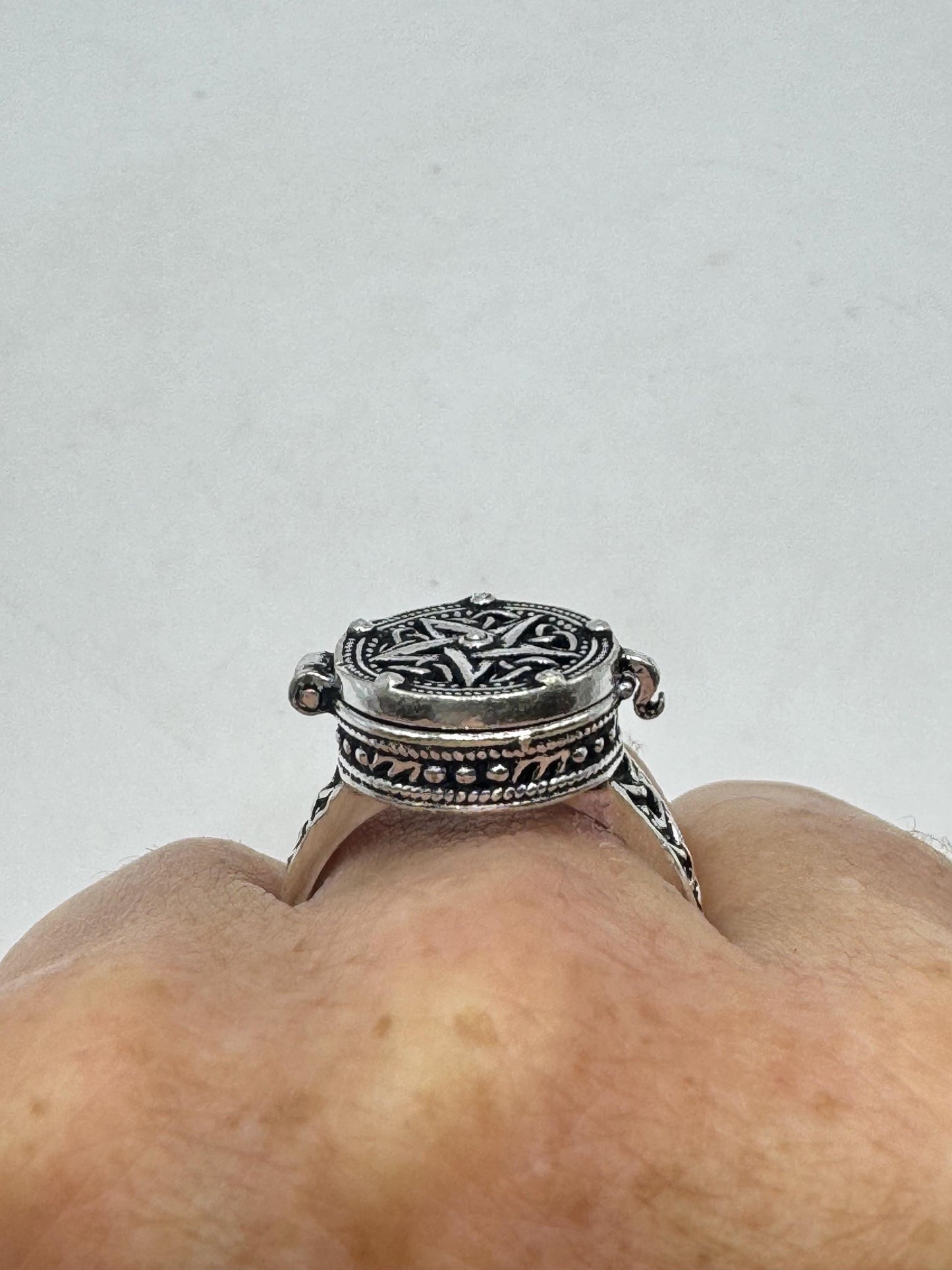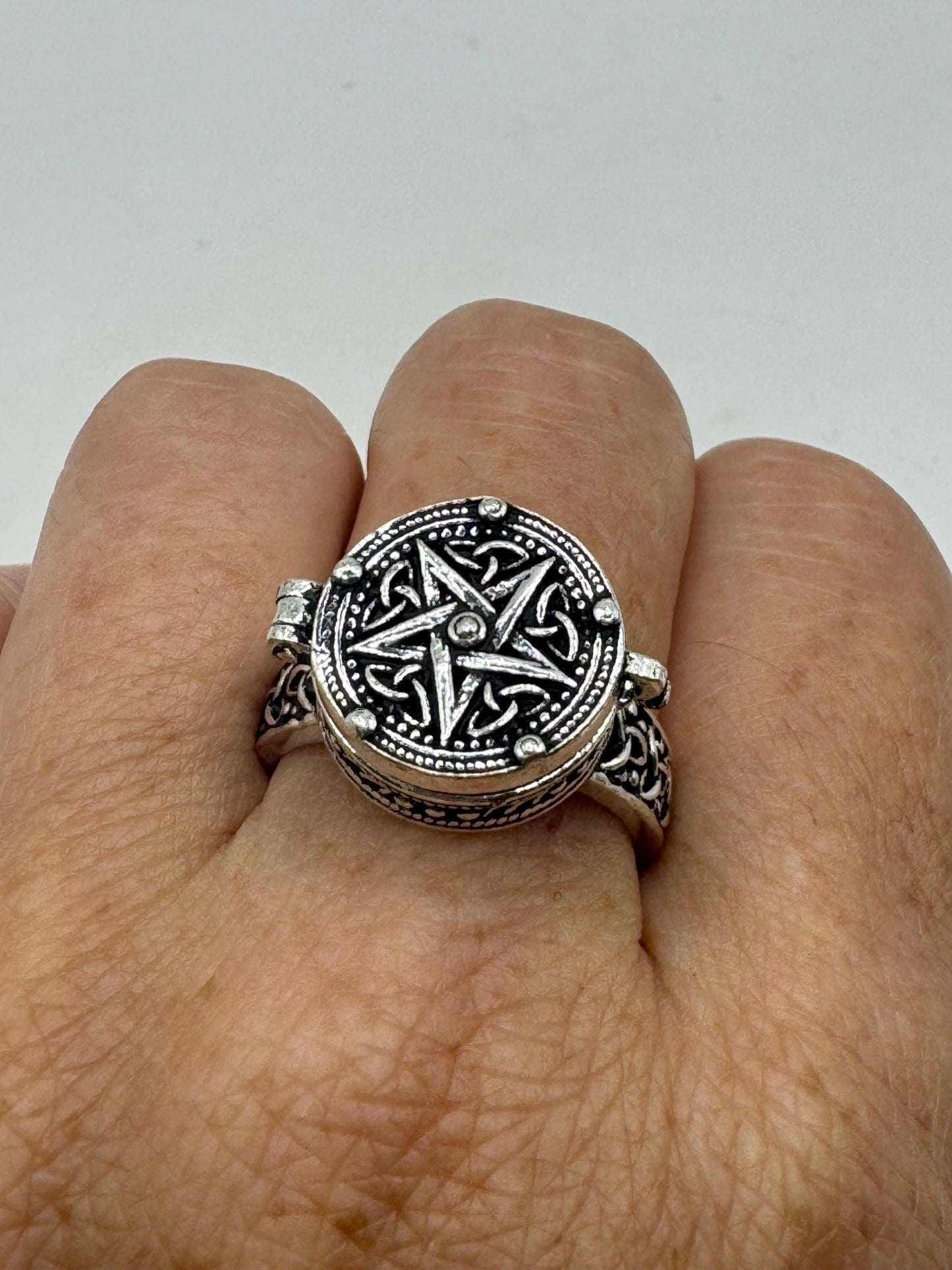 Vintage Wiccan Pentagram Star White Bronze Poison Pillbox Ring