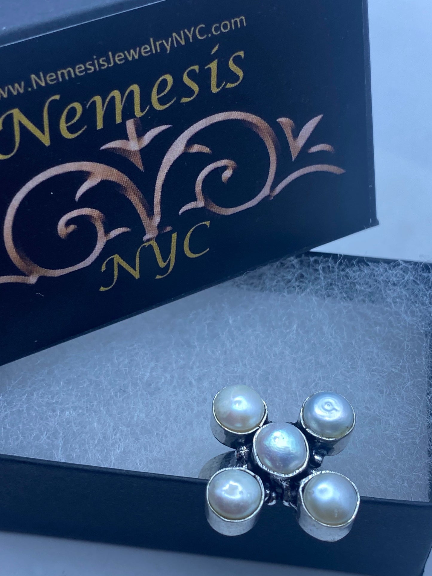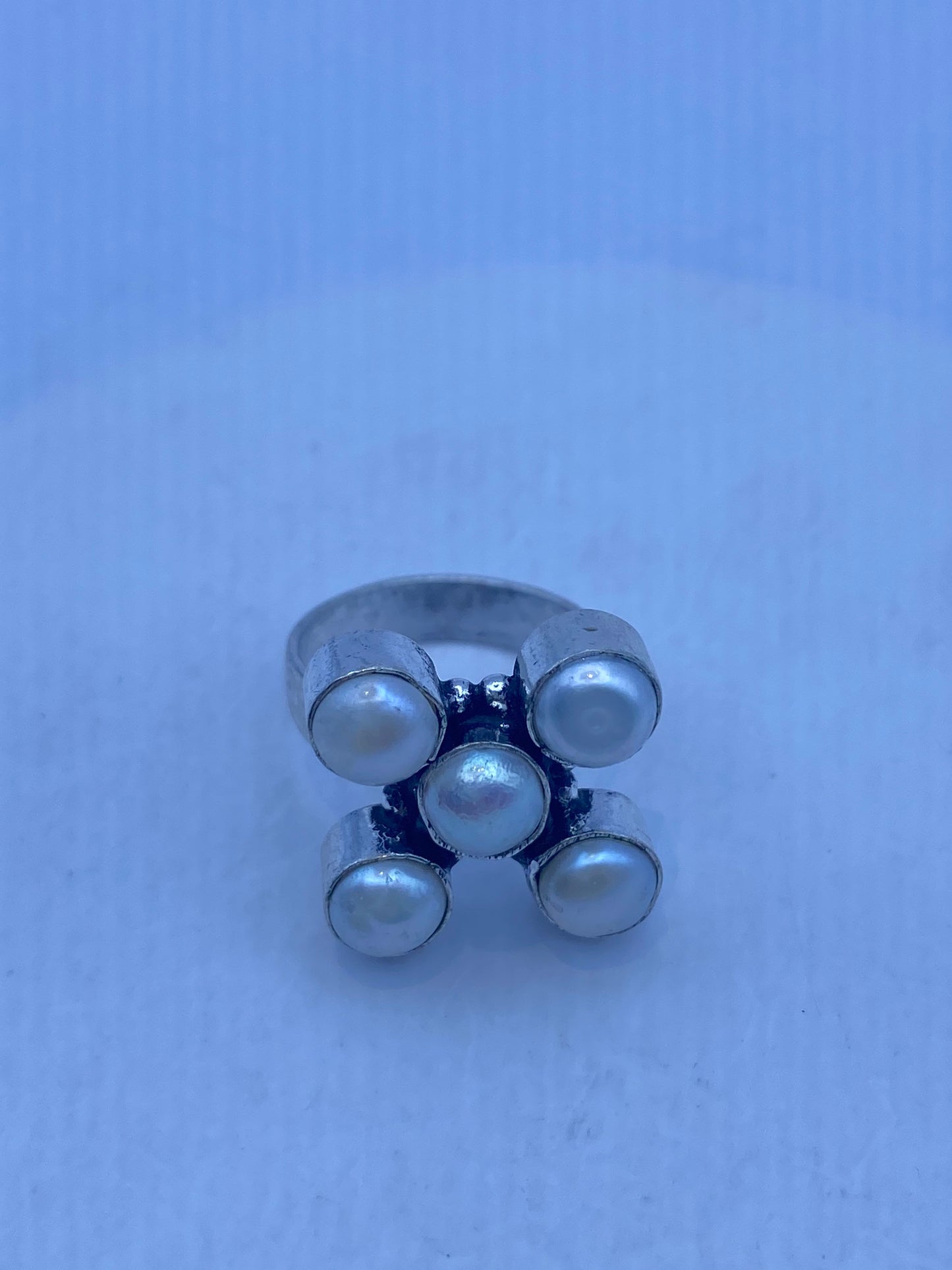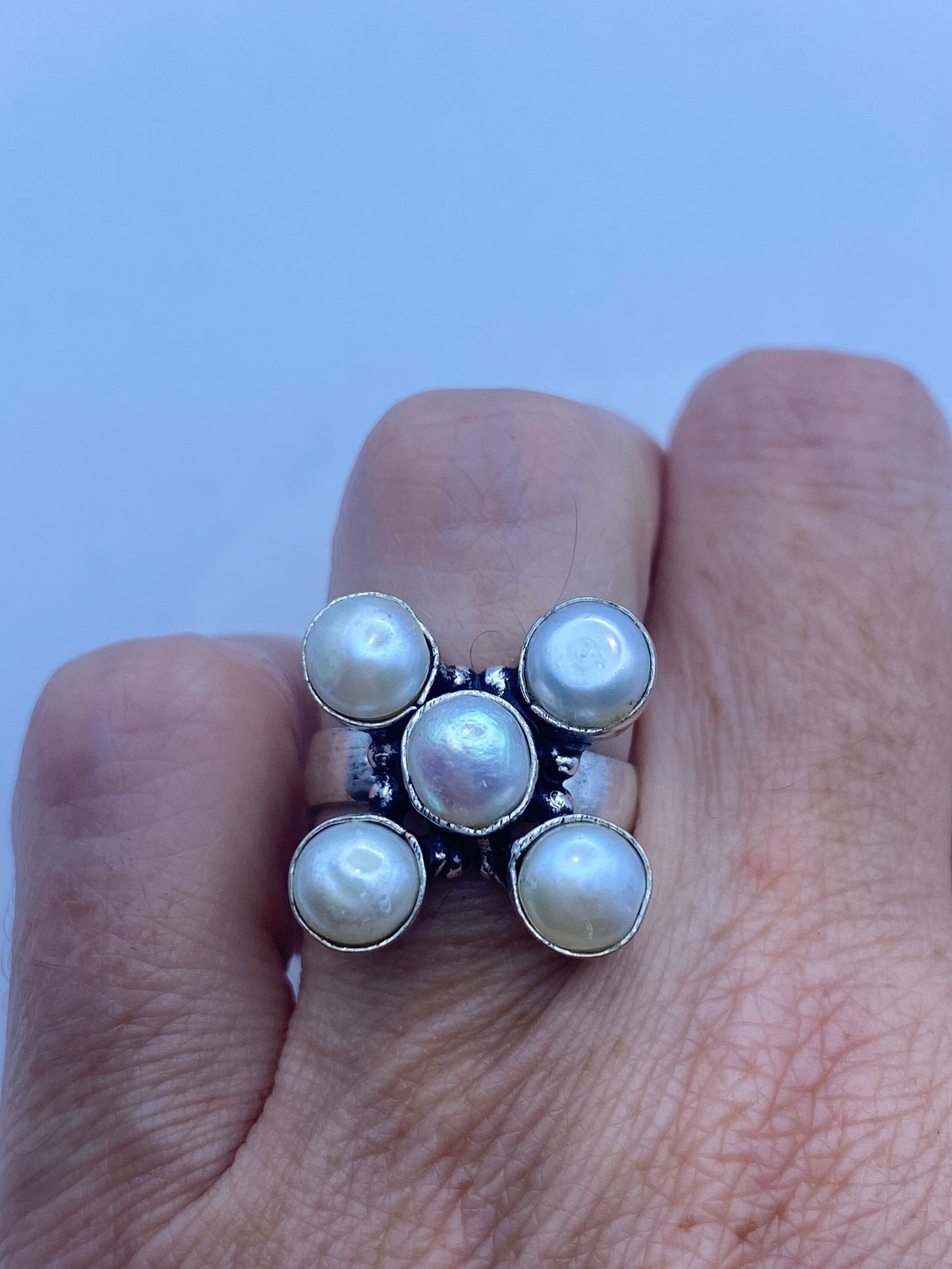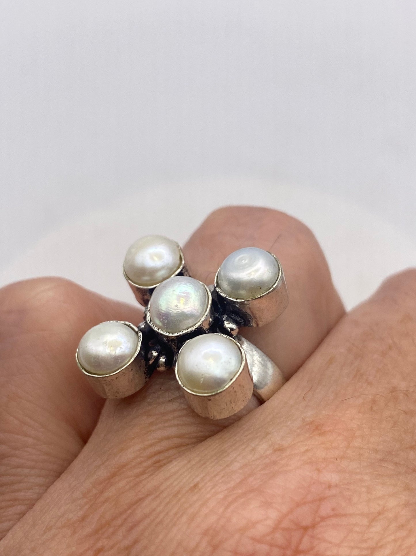 Vintage White Genuine Pearl Silver Cocktail Ring