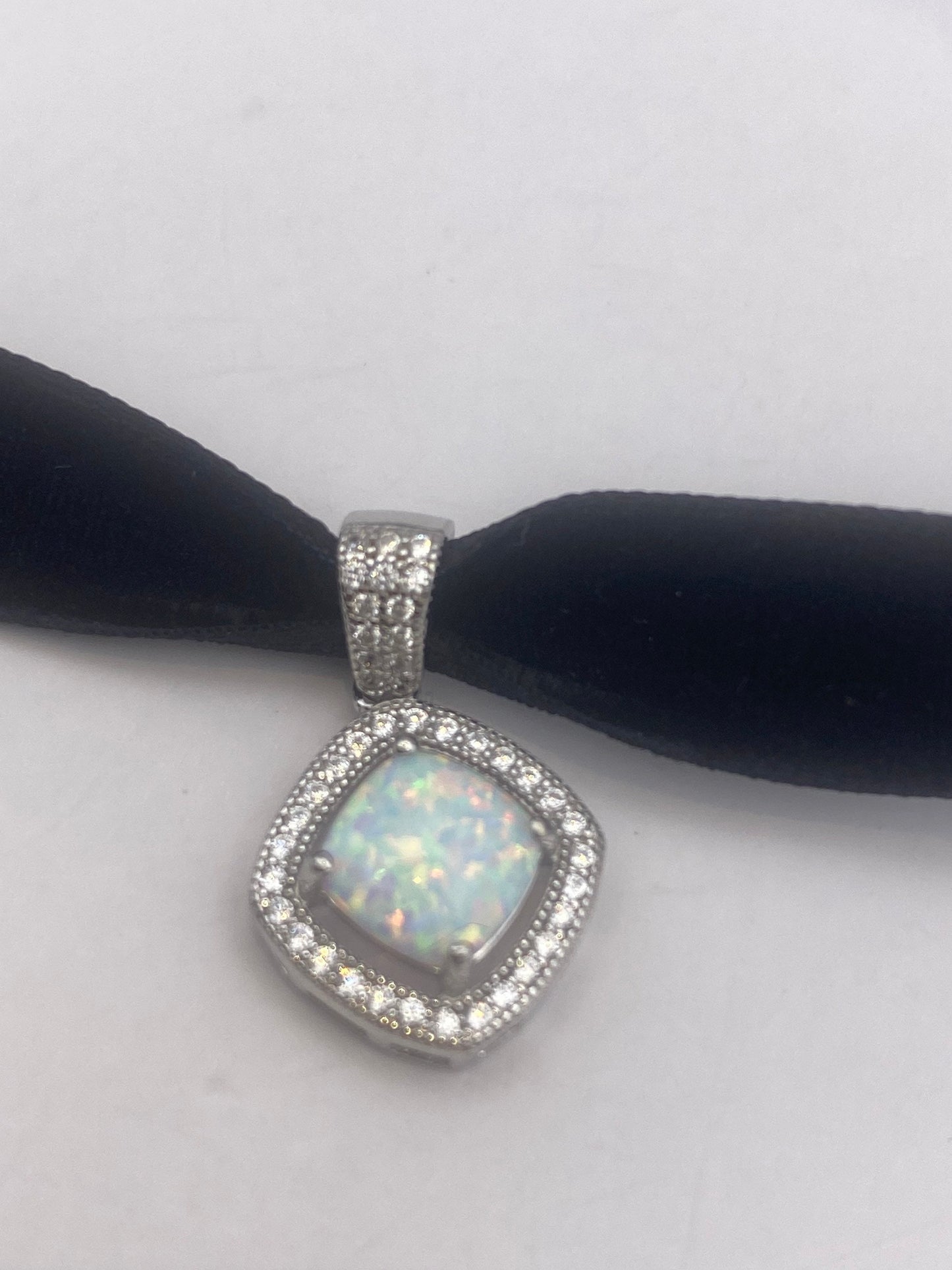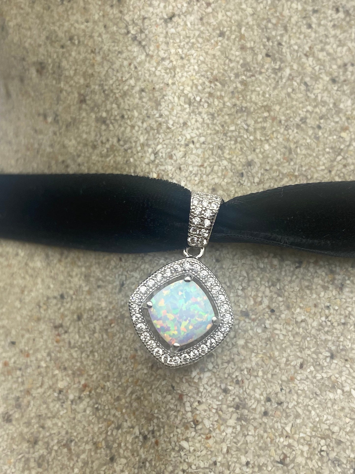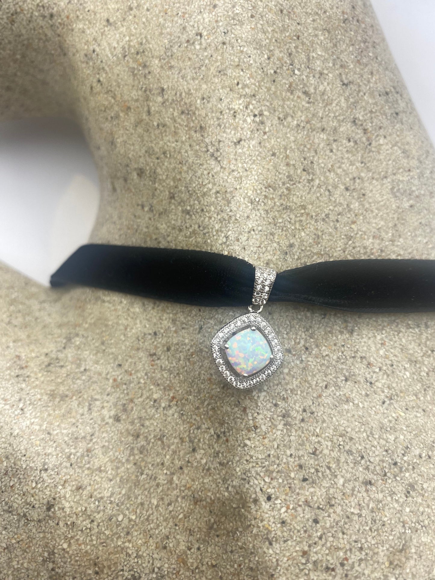 Vintage White Opal Choker 925 Sterling Silver Pendant Necklace