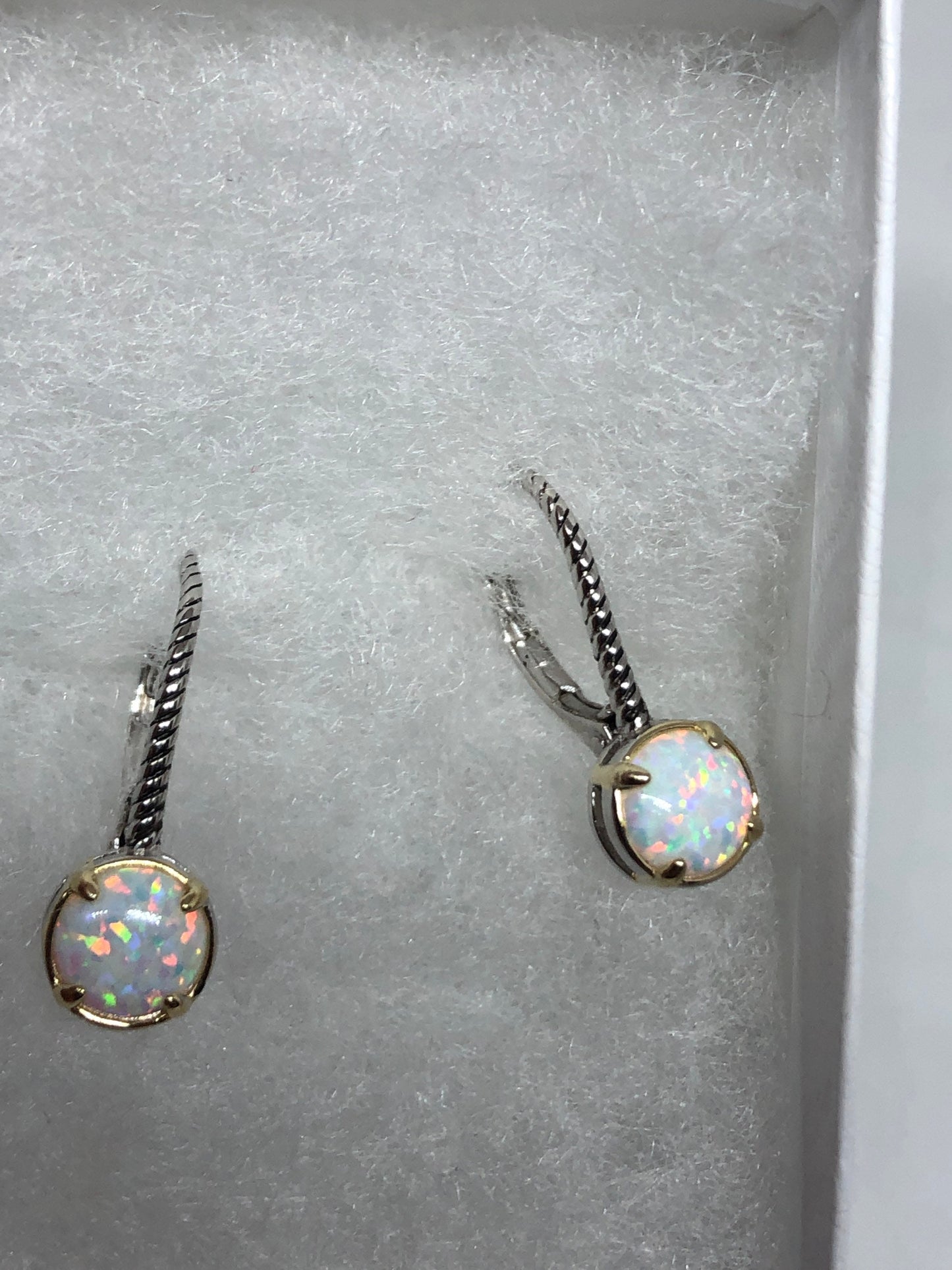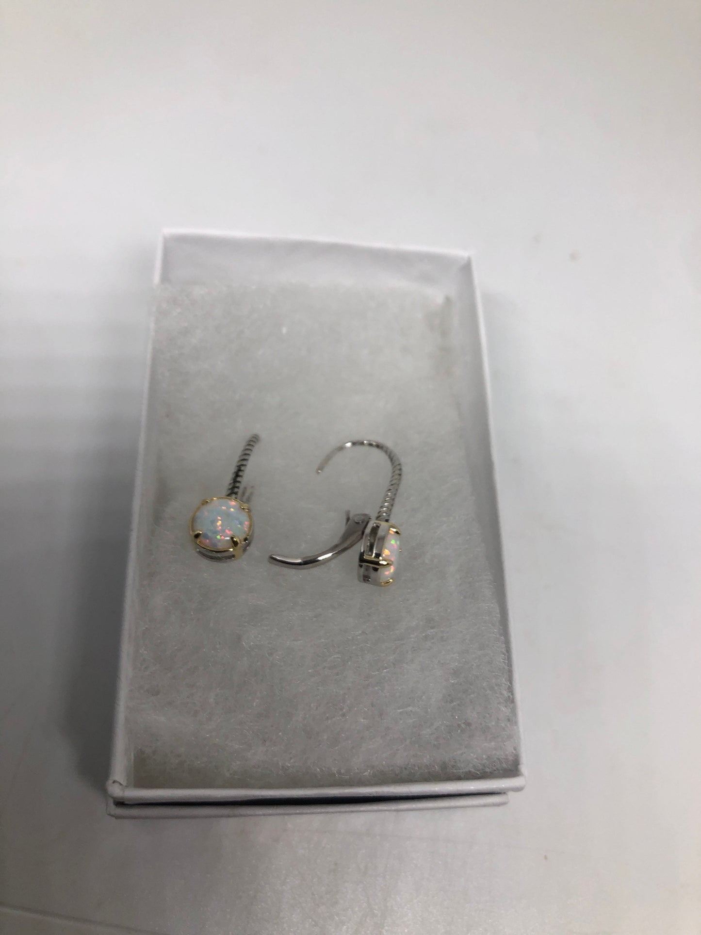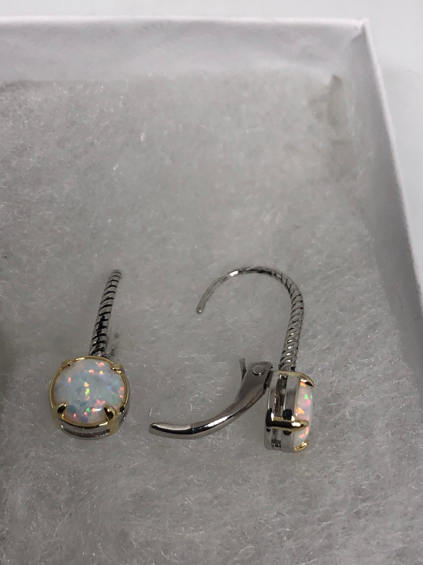 Vintage White Opal Earrings white sapphire 925 Sterling Silver lever back dangle