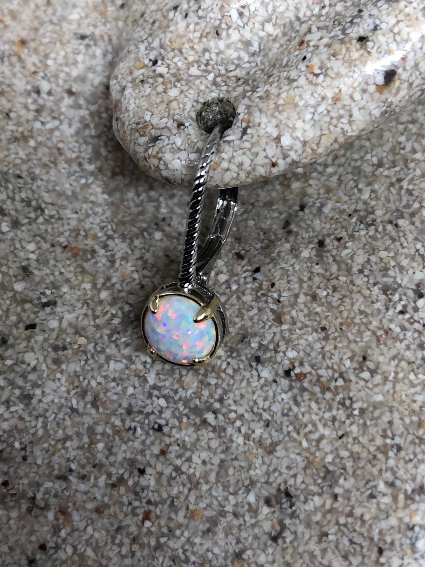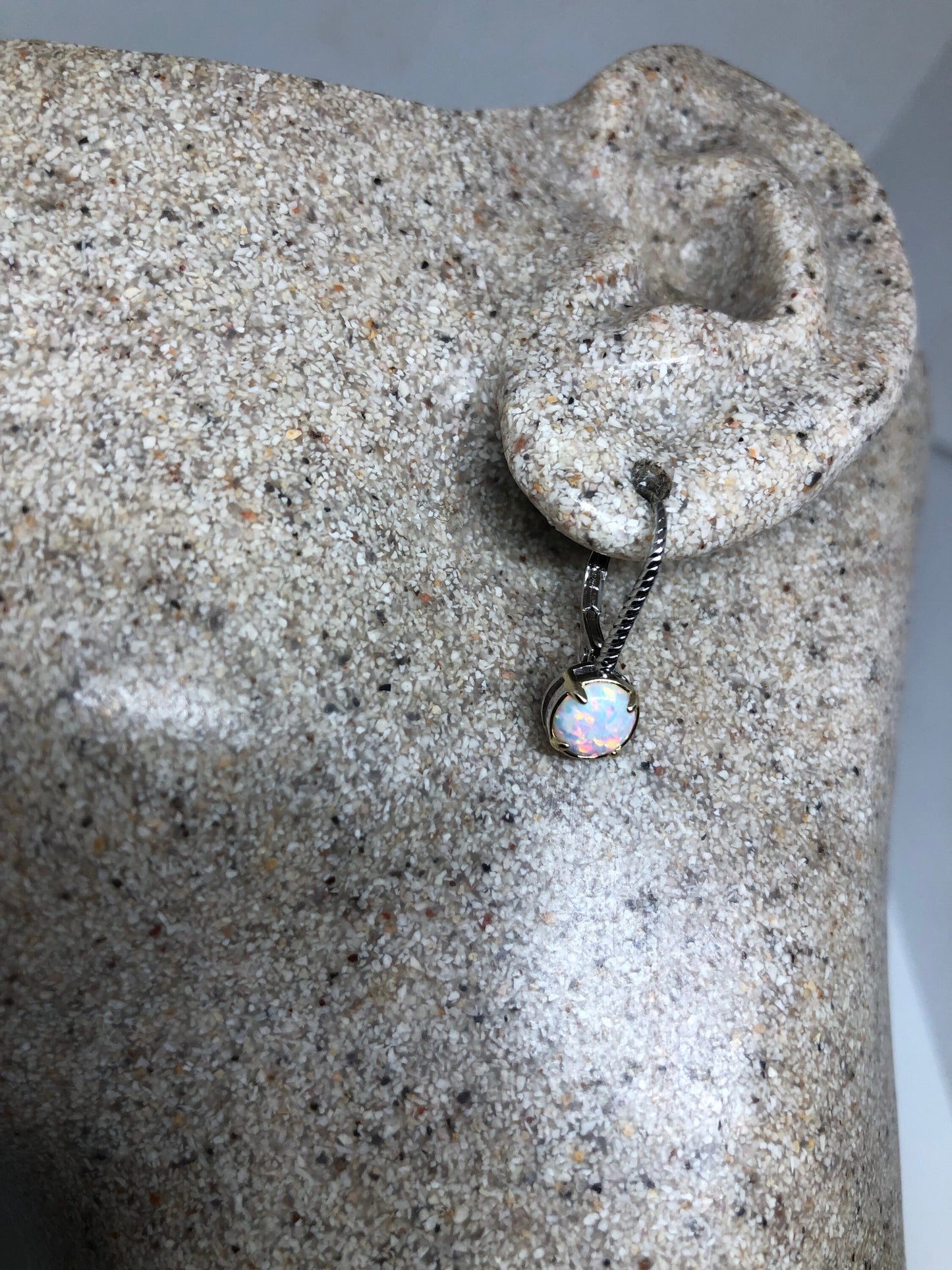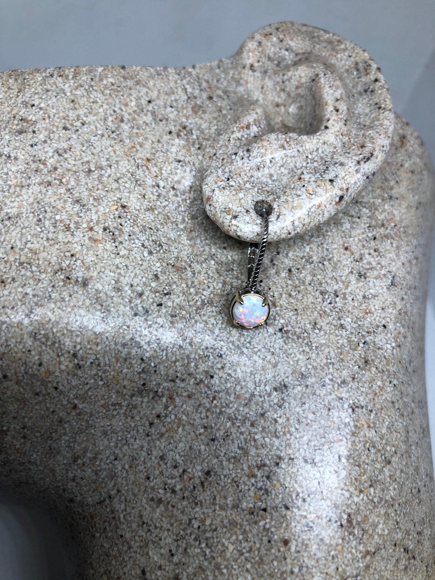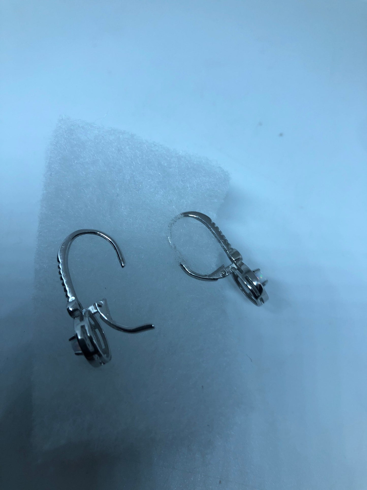 Vintage White Opal Earrings white sapphire 925 Sterling Silver lever back dangle